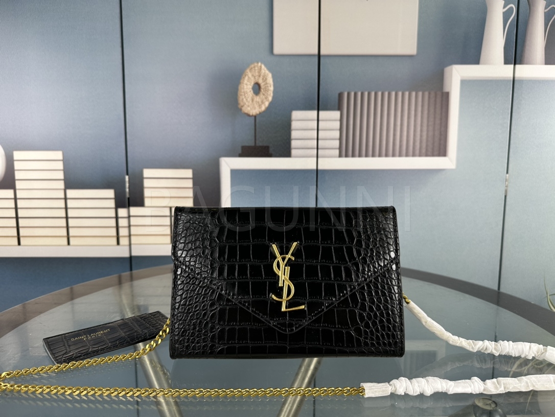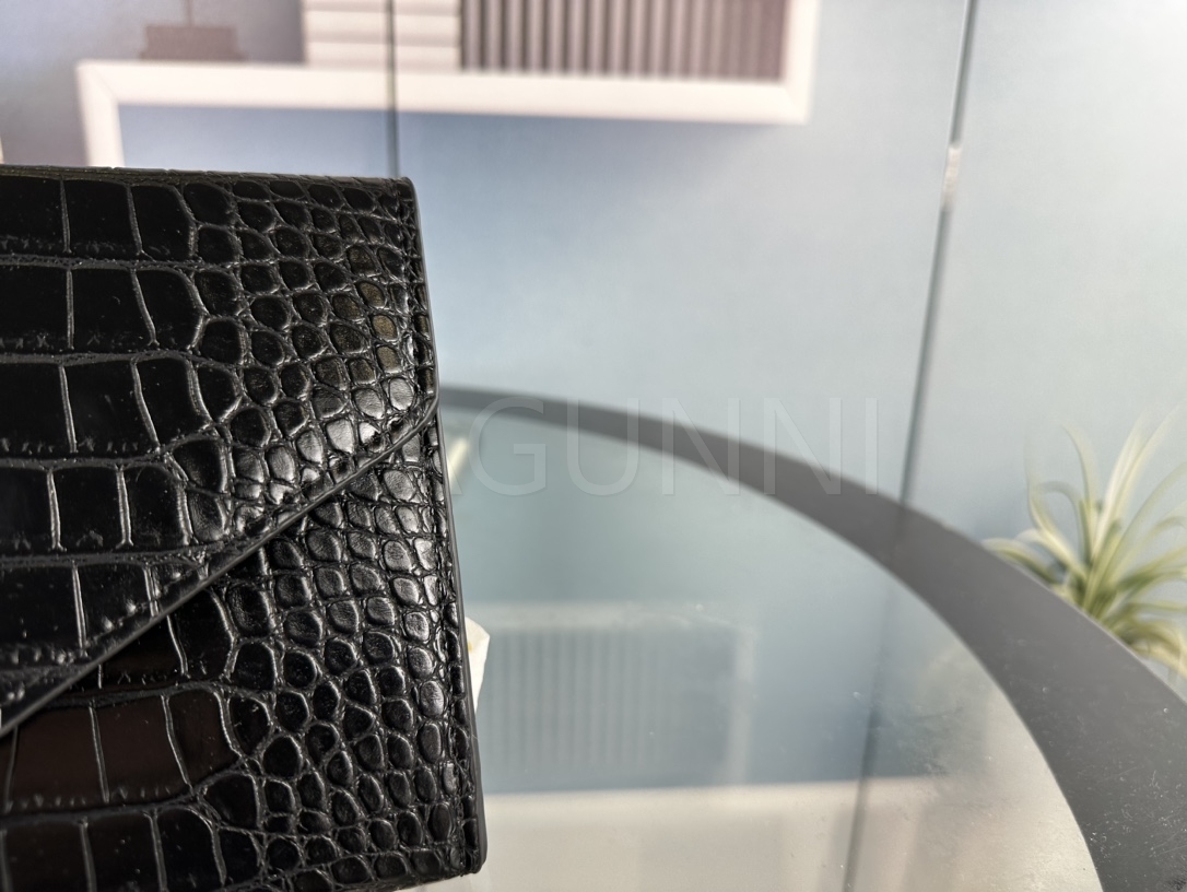 카프스킨의 질감이 돋보이는 YSL 엔벨로프 카드지갑입니다.