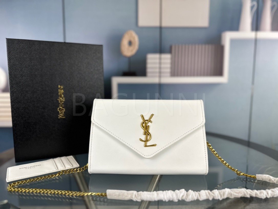 카프스킨의 질감이 돋보이는 YSL 엔벨로프 카드지갑입니다.