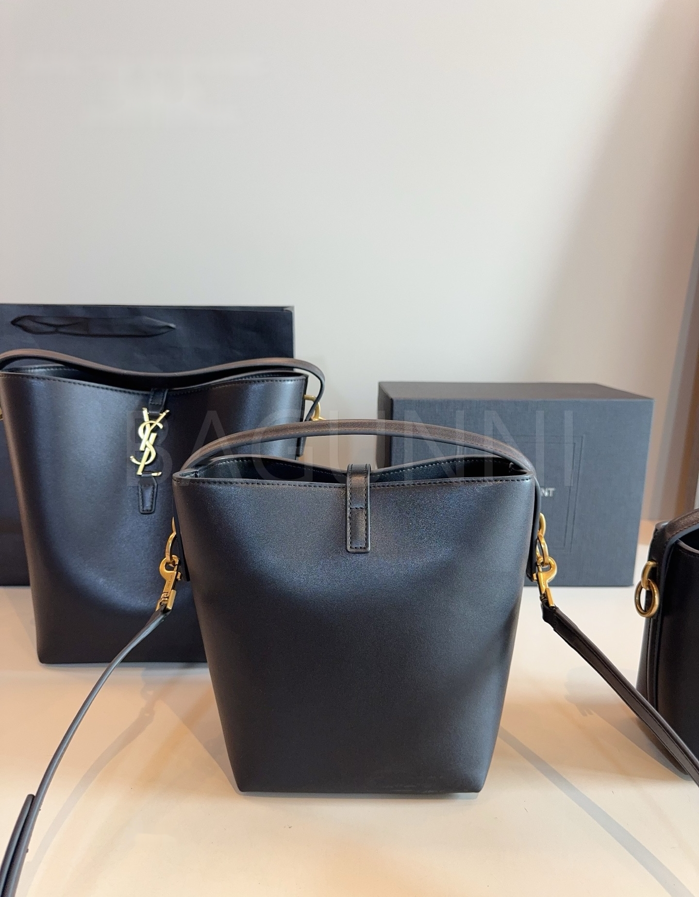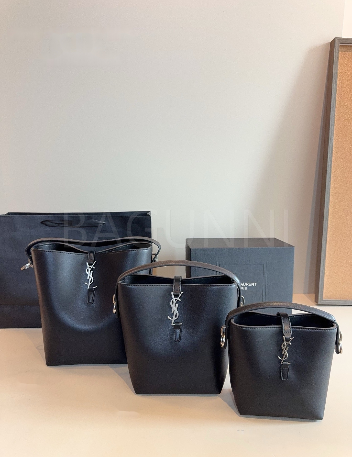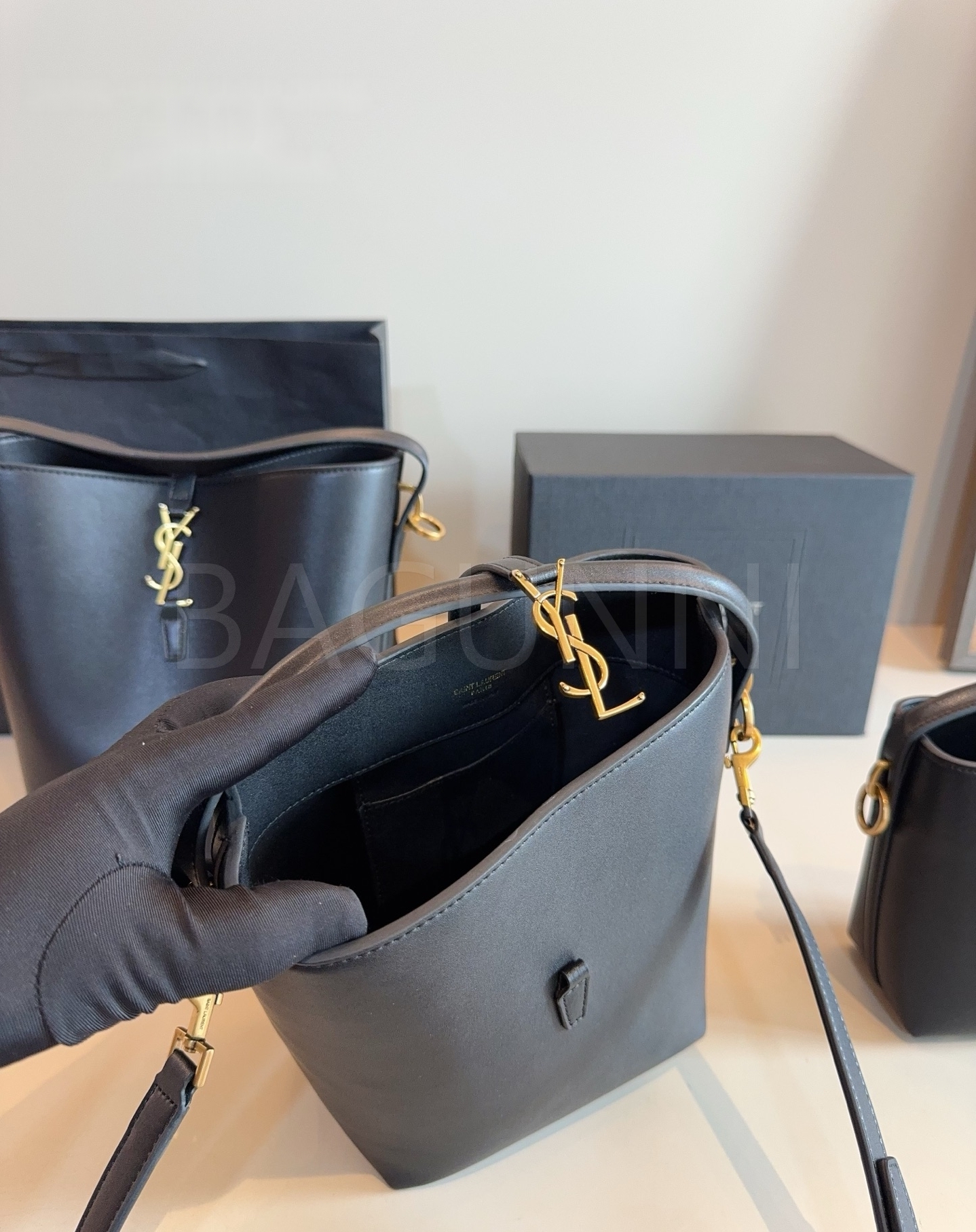 YSL 로고 버킷백입니다. 브랜드 특유의 분위기를 편하게 즐기기 좋습니다.