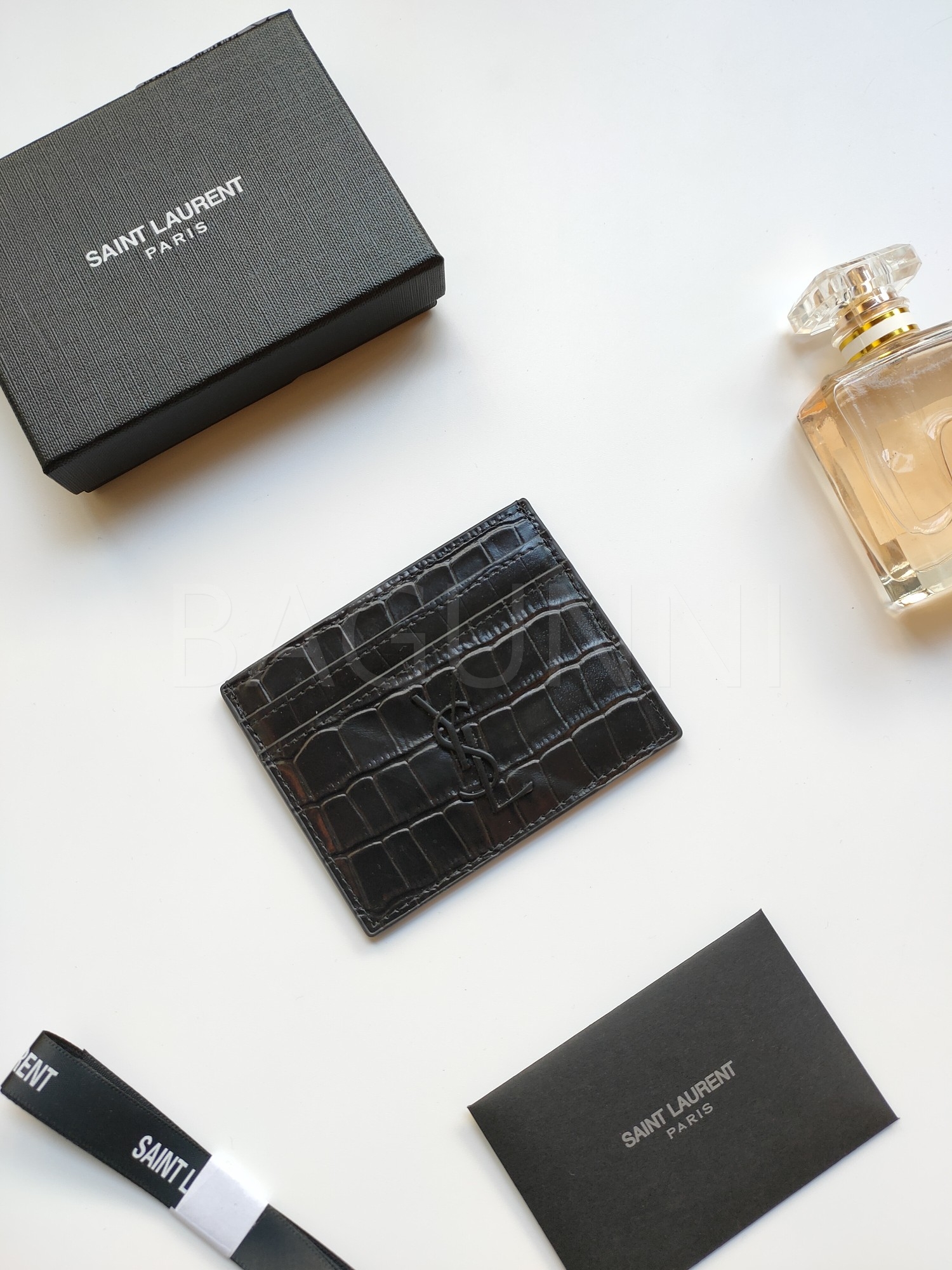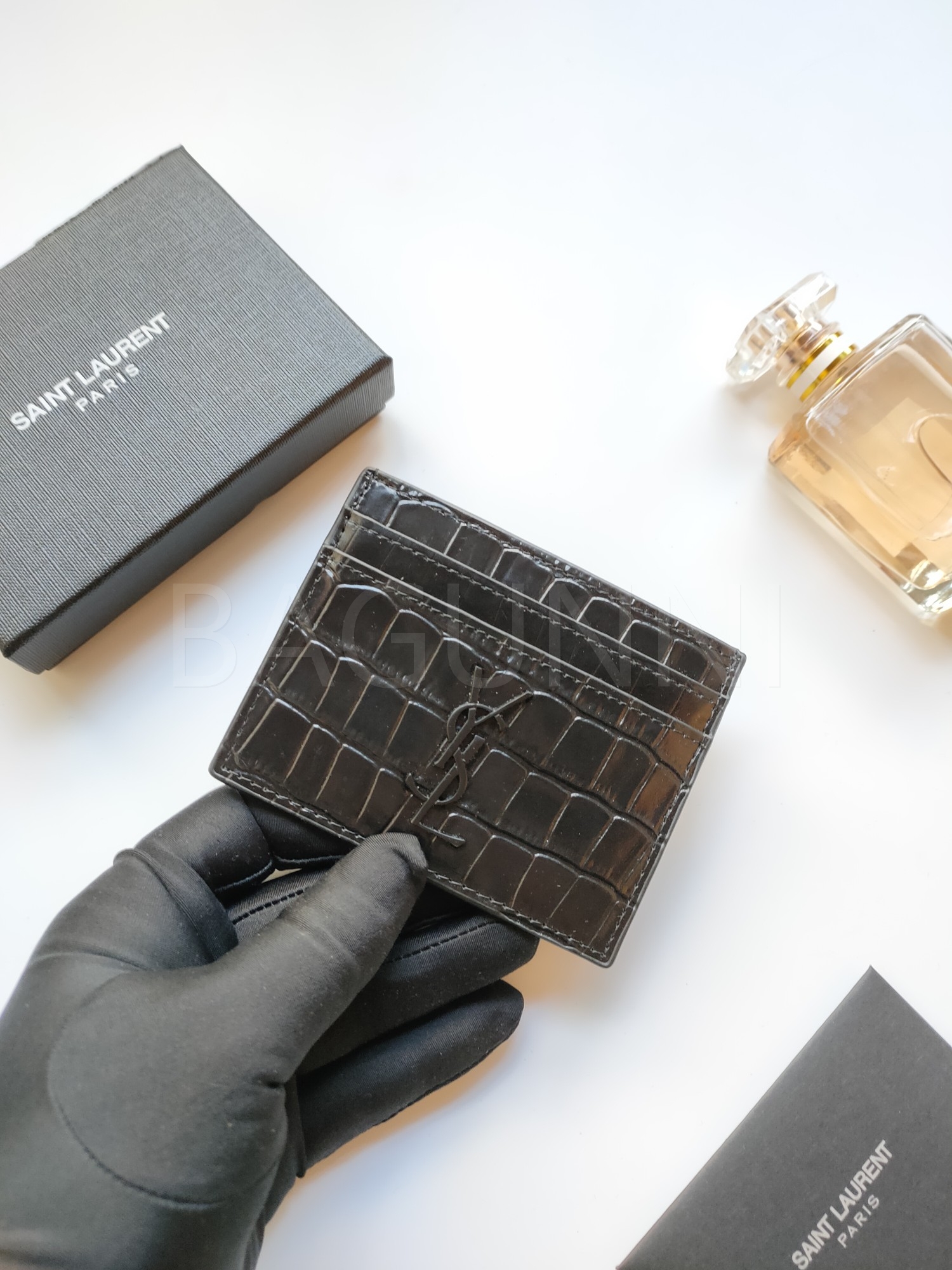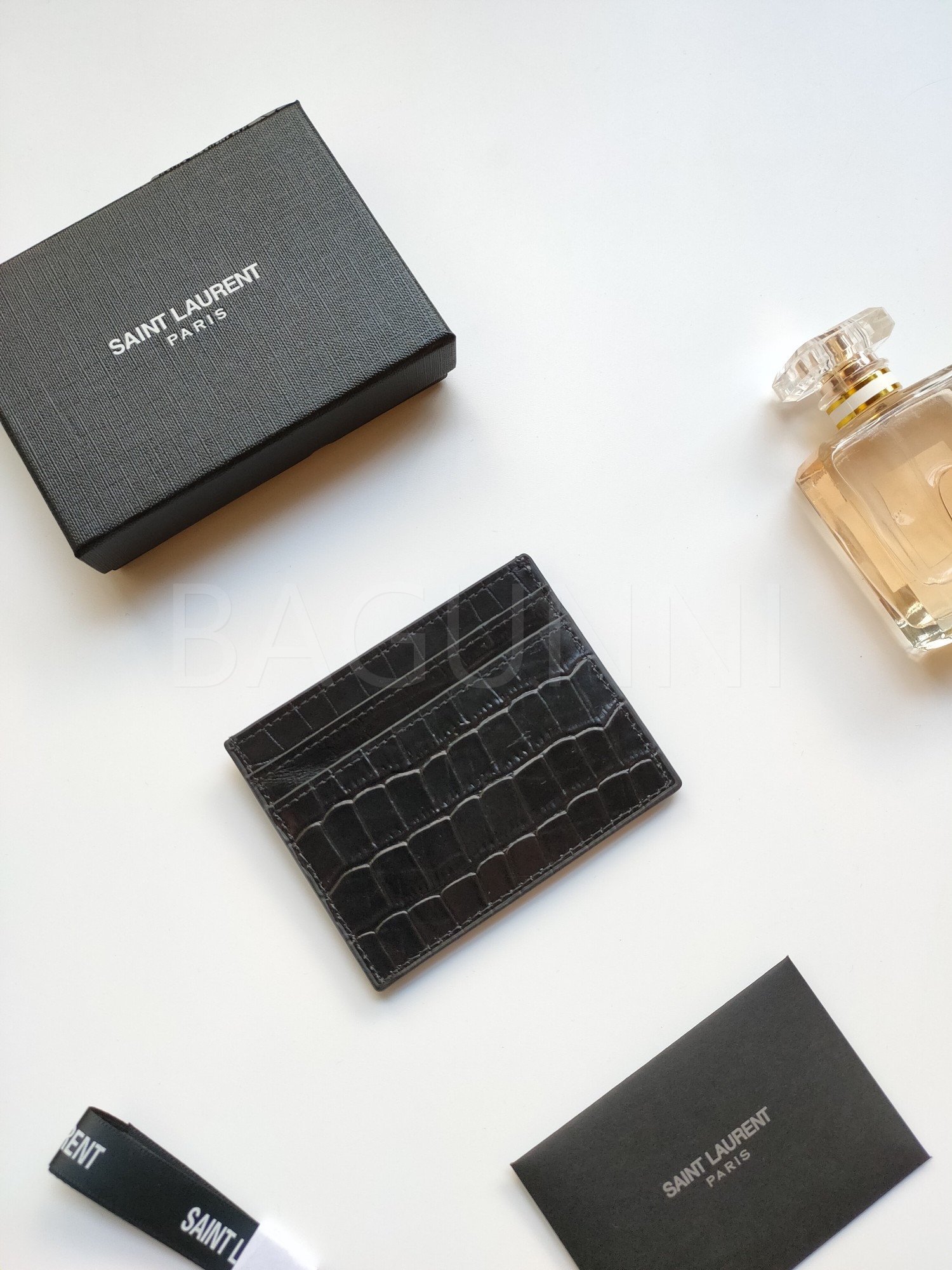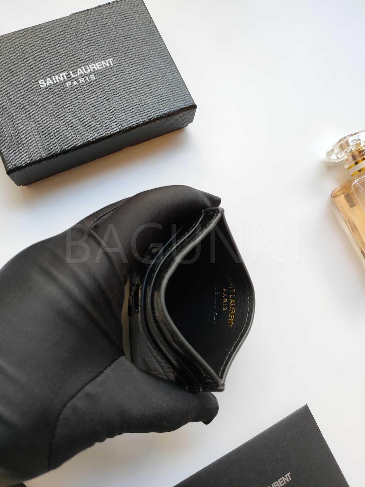 카프스킨의 질감이 돋보이는 YSL 플랩 카드지갑입니다.