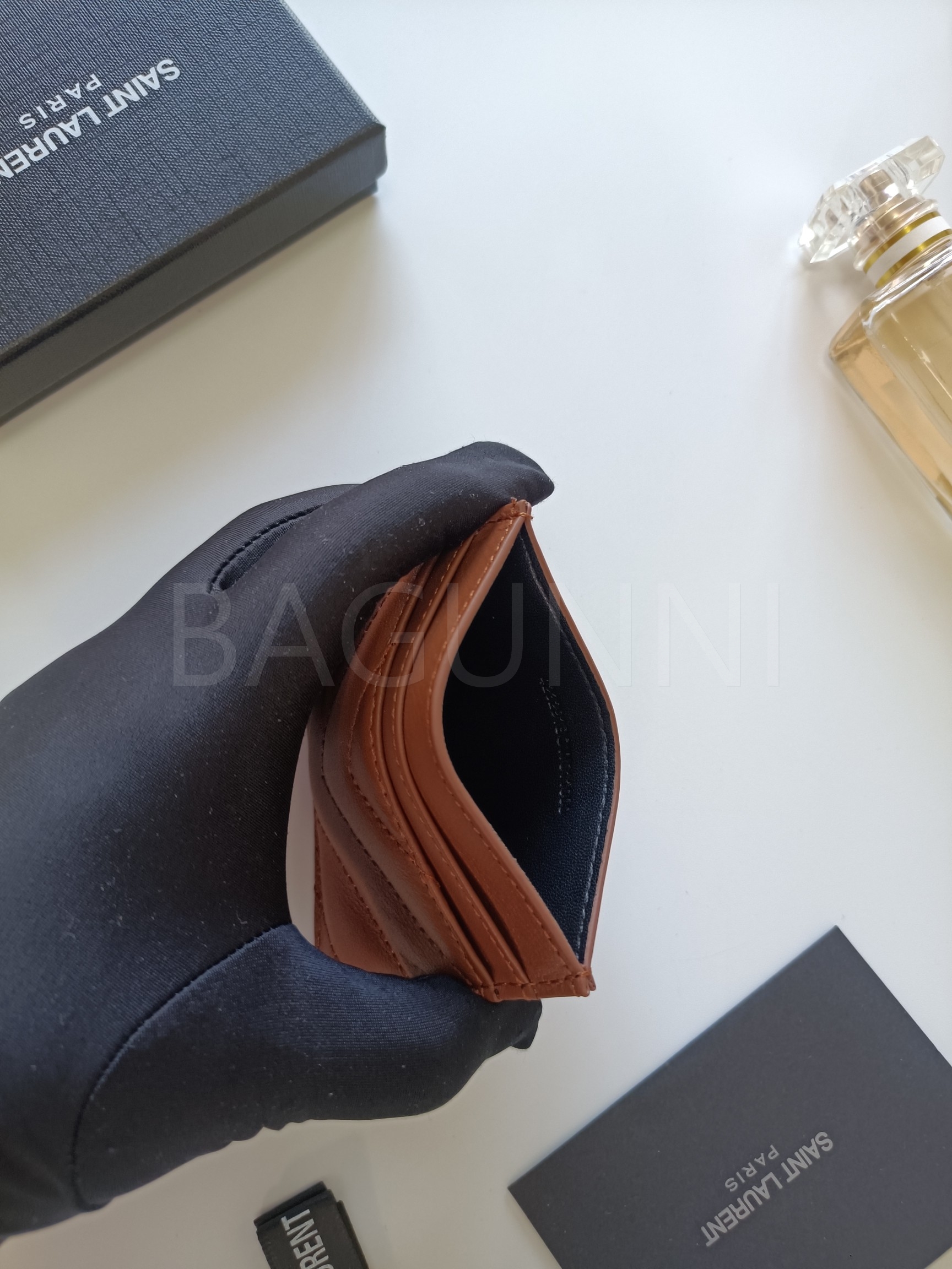 YSL 특유의 무드가 자연스럽게 살아있는 플랩 카드지갑입니다.