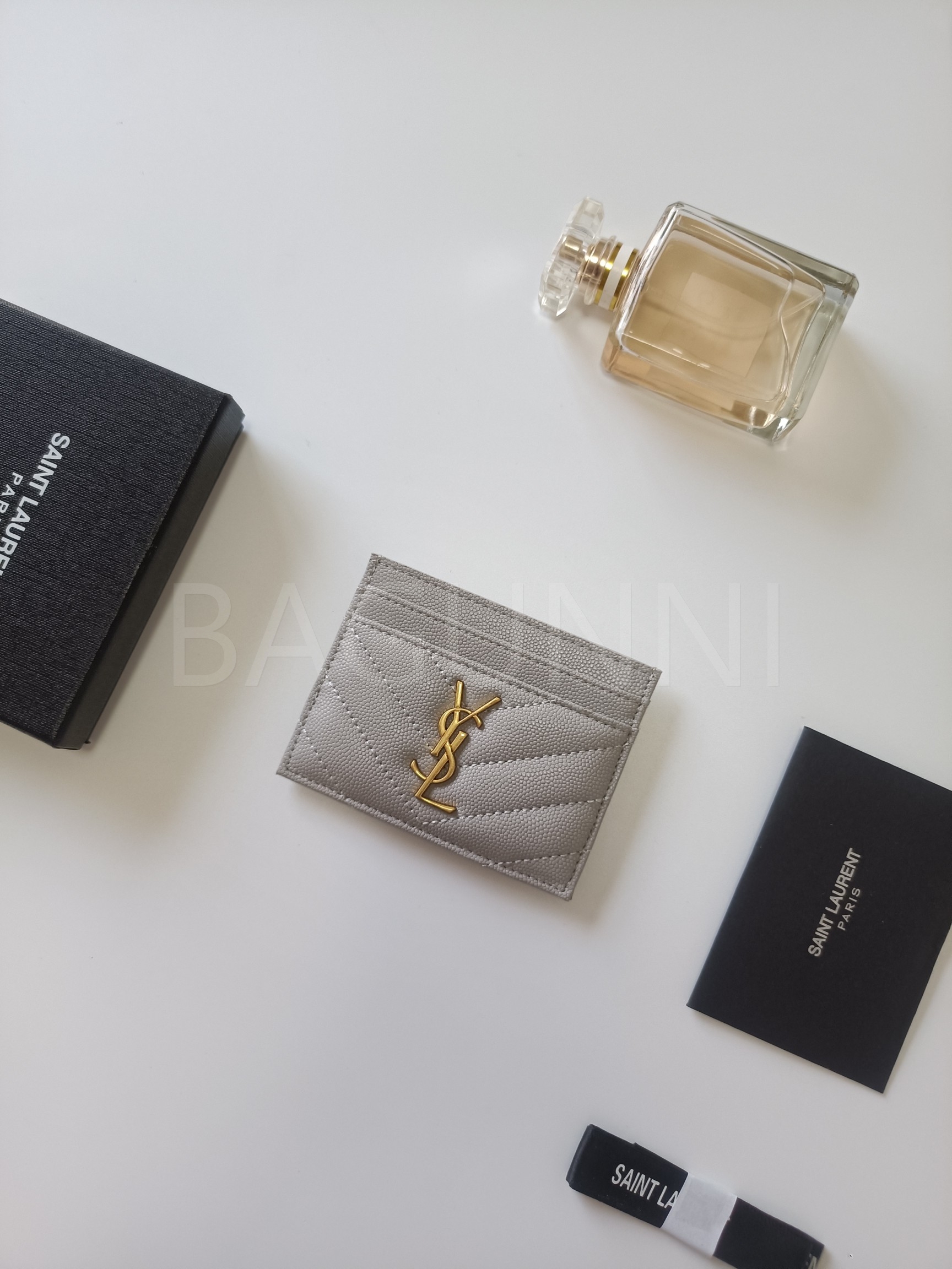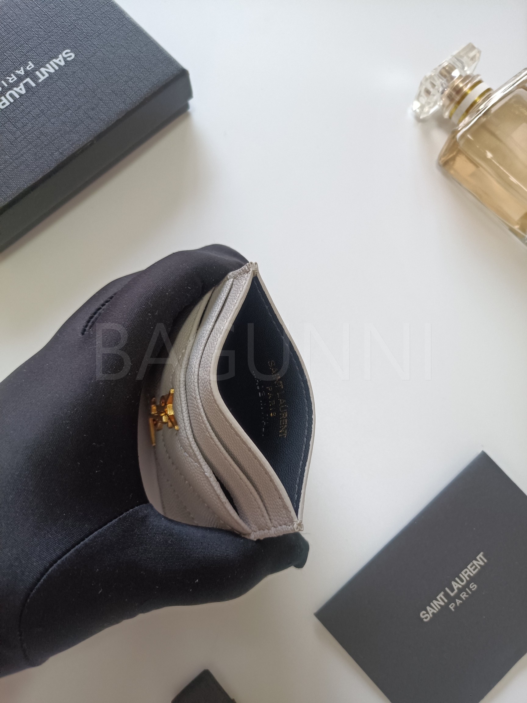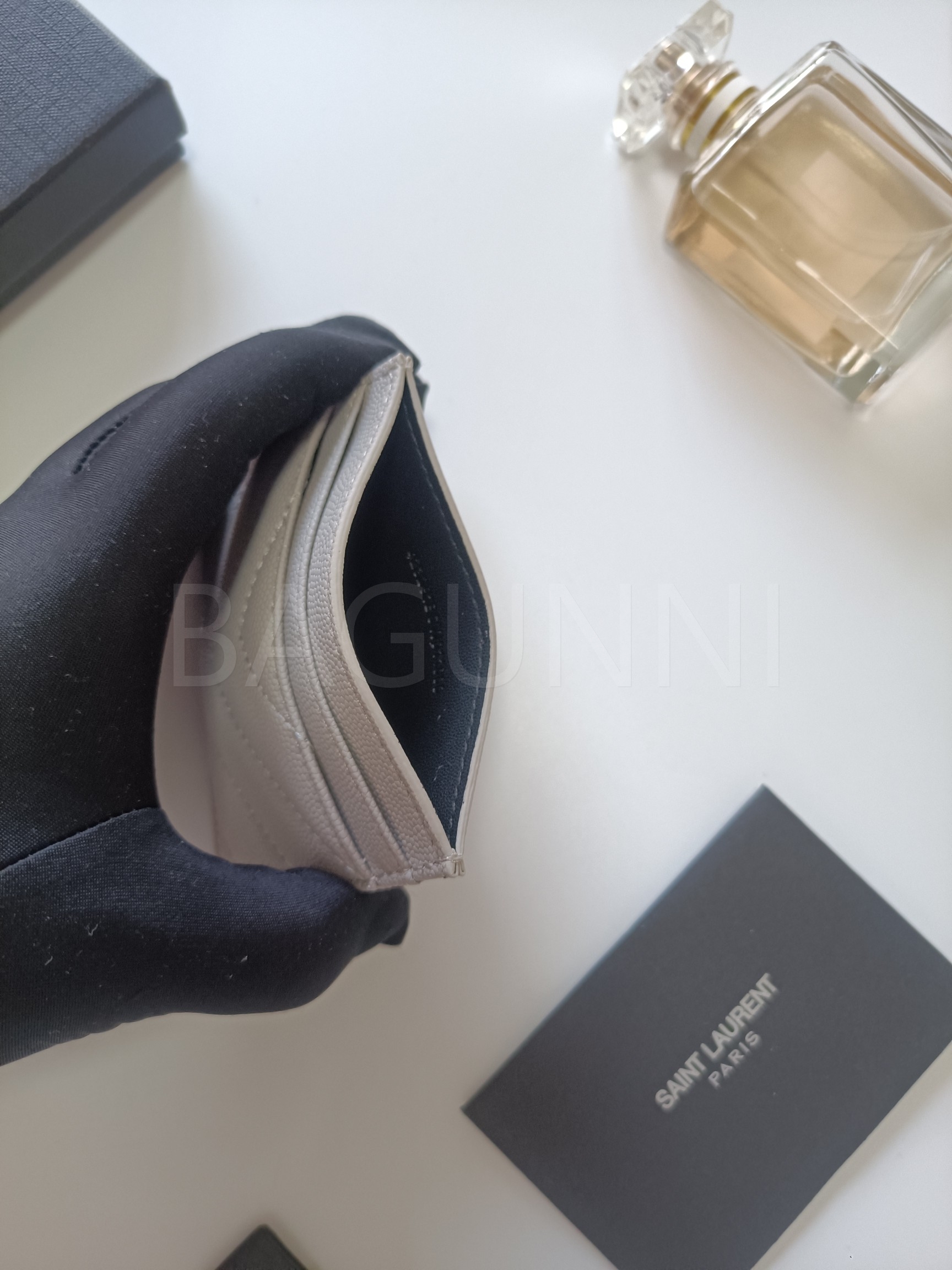 카프스킨의 질감이 돋보이는 YSL 플랩 카드지갑입니다.