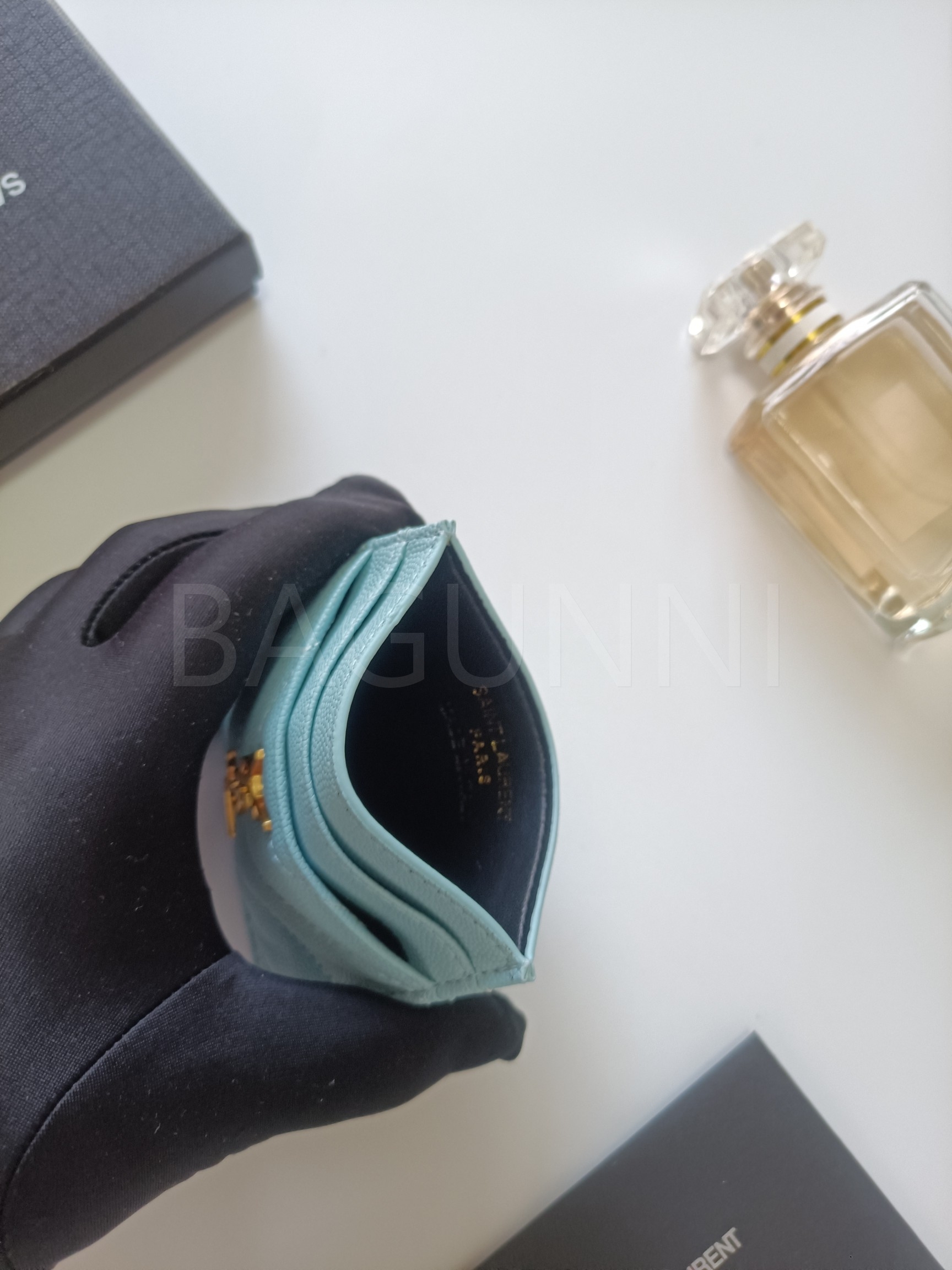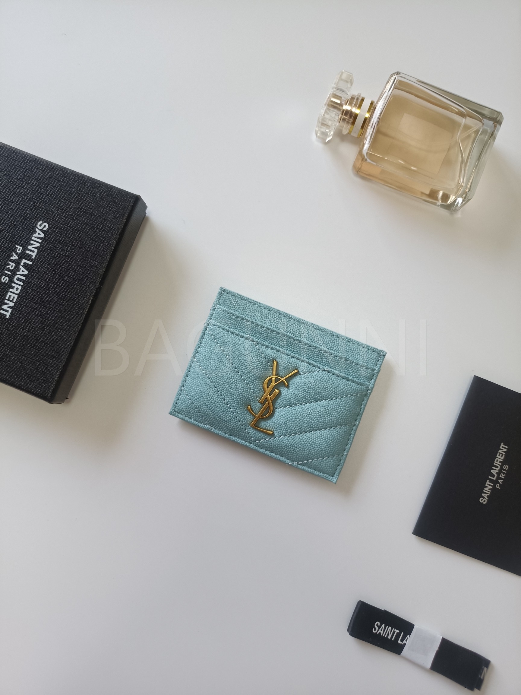 카프스킨의 질감이 돋보이는 YSL 플랩 카드지갑입니다.