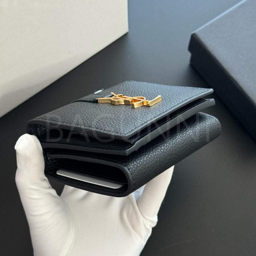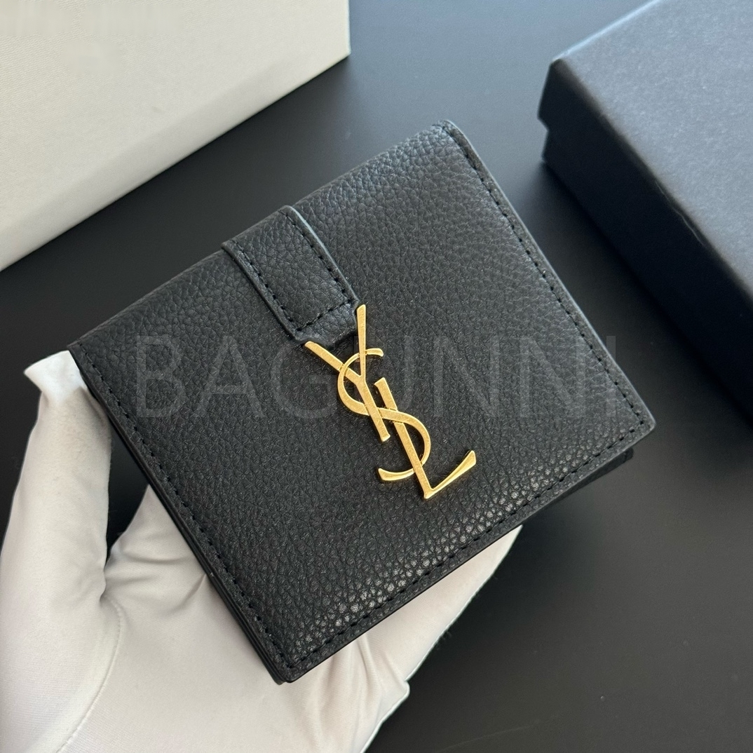 YSL 특유의 무드가 자연스럽게 살아있는 트리폴드 반지갑입니다.