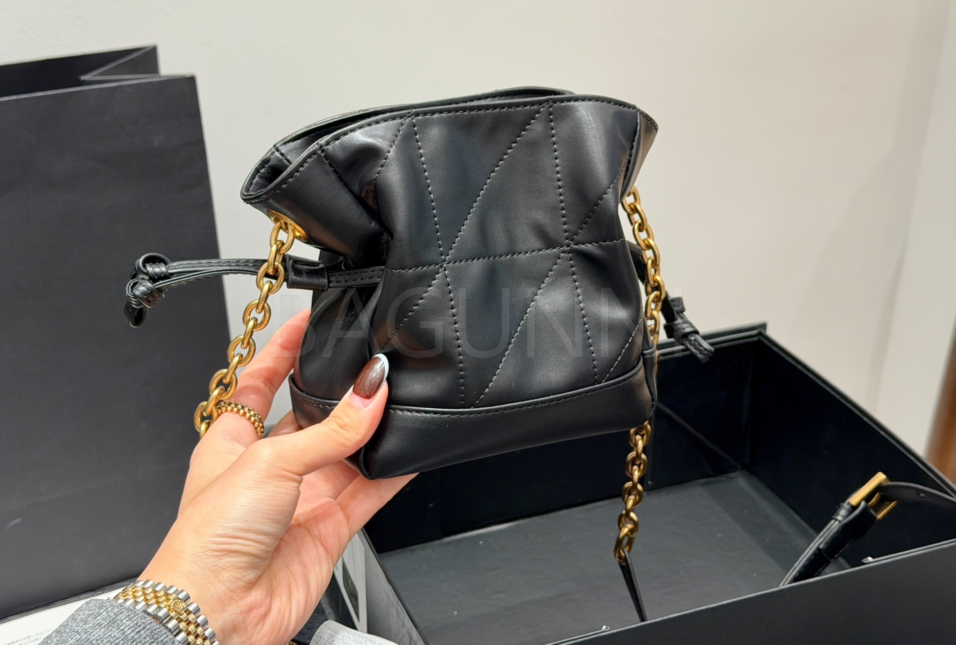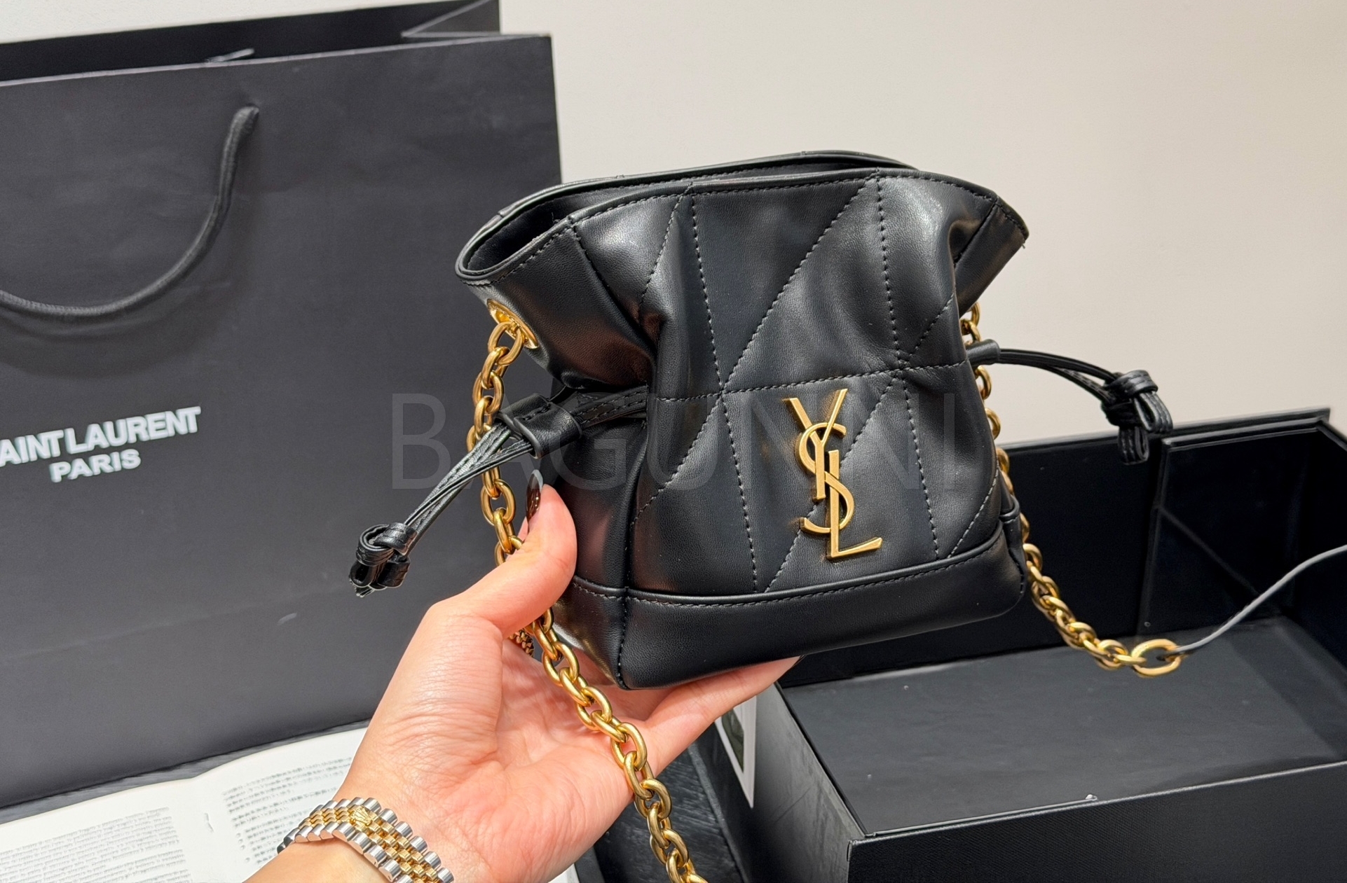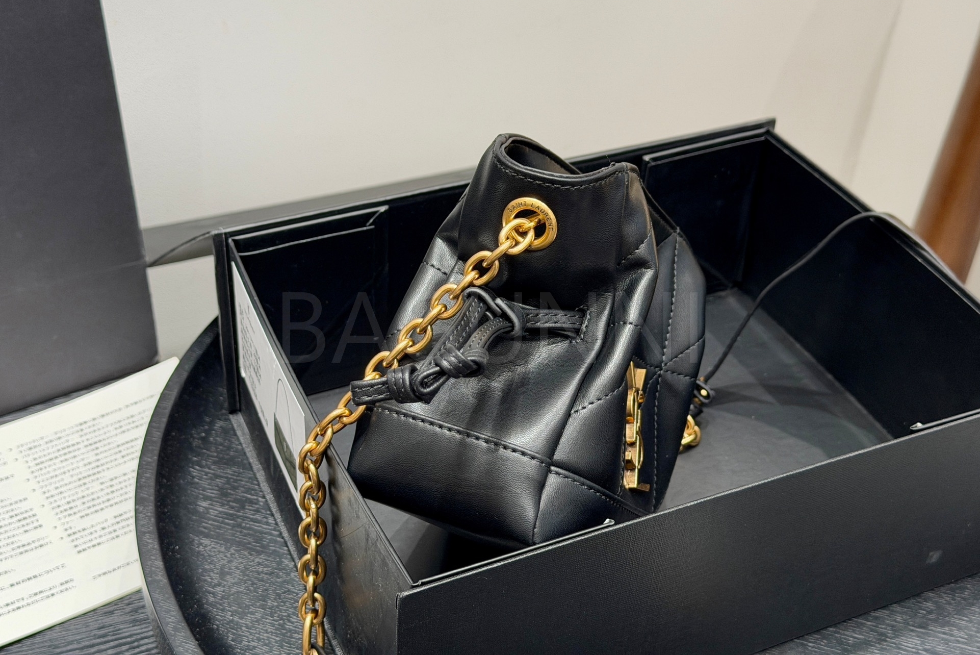 YSL 제이미 드로스트링 버킷 백은 세련된 실루엣을 담은 아이템입니다.