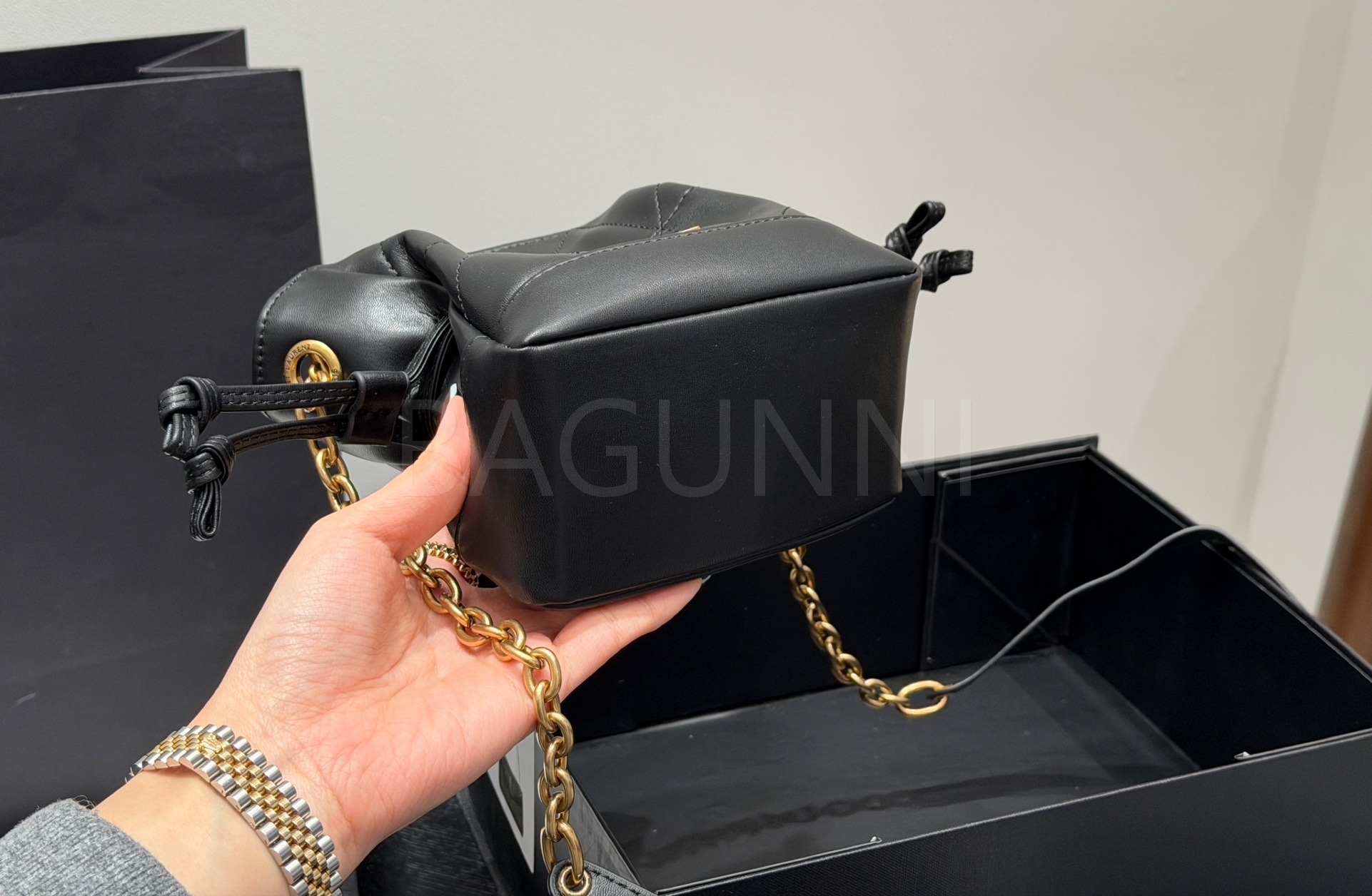 YSL 제이미 드로스트링 버킷 백
