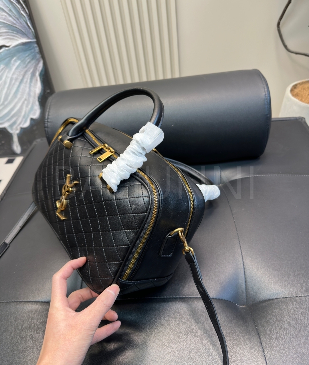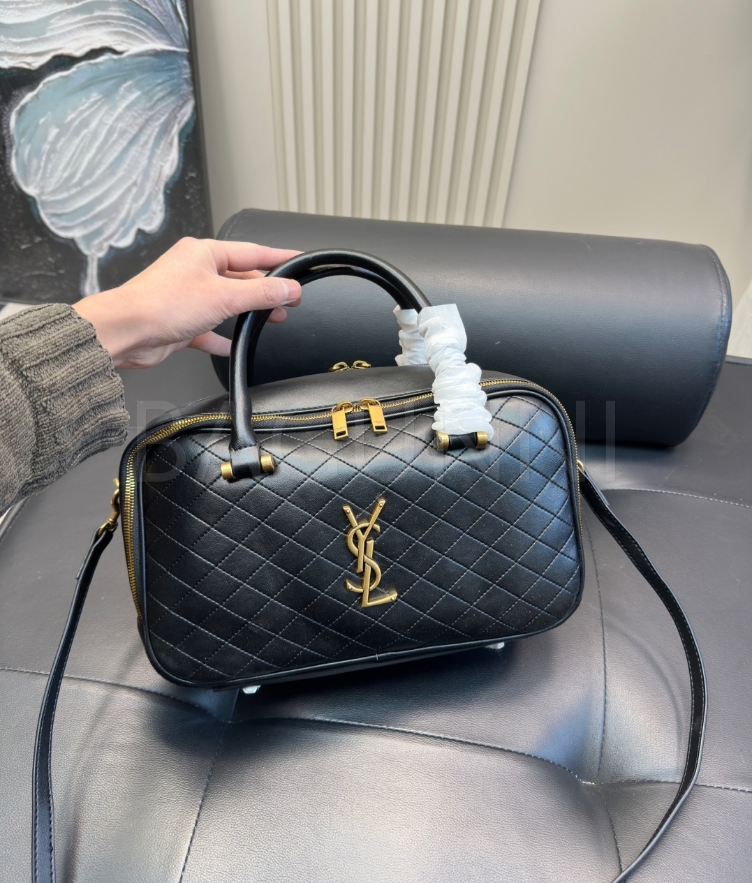 YSL 로고 볼링백입니다. 브랜드 특유의 분위기를 편하게 즐기기 좋습니다.