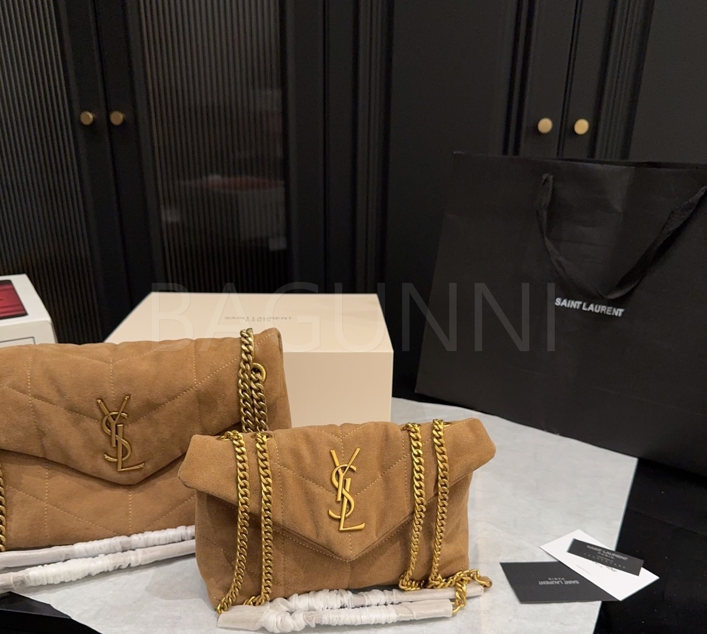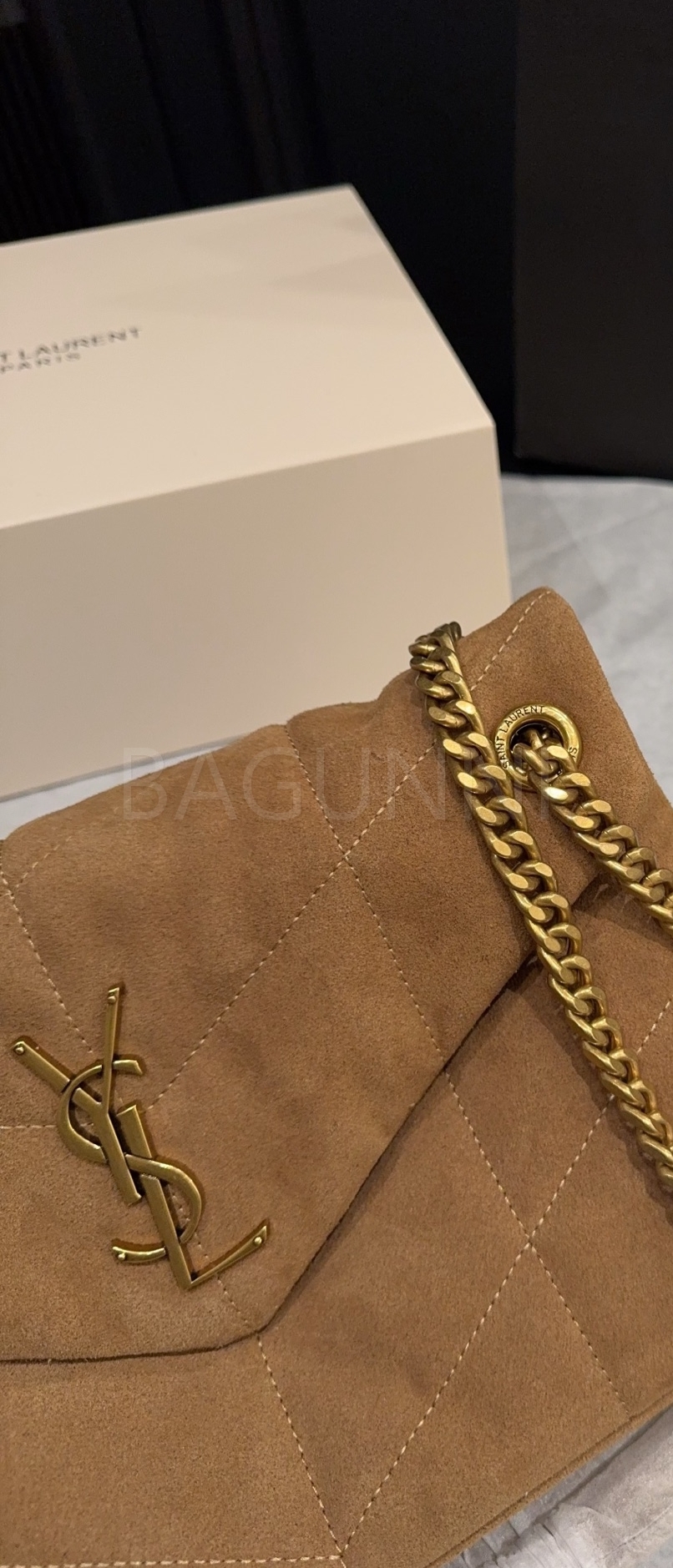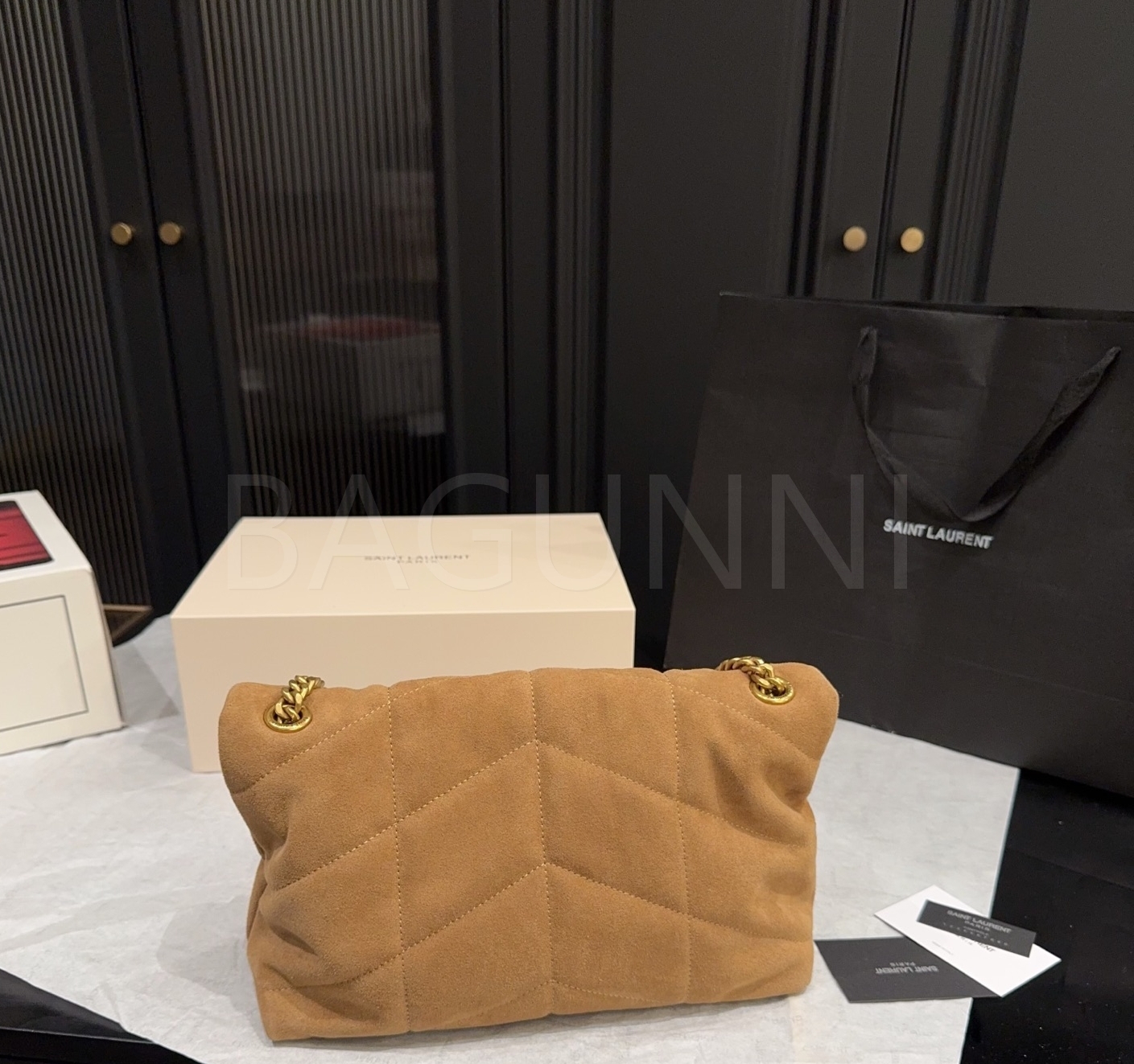 YSL 빅 로고 체인백입니다. 램스킨 특유의 질감이 자연스럽게 살아 있으며 골드 톤이 어우러져 브랜드 특유의 분위기를 편하게 즐기기 좋습니다.