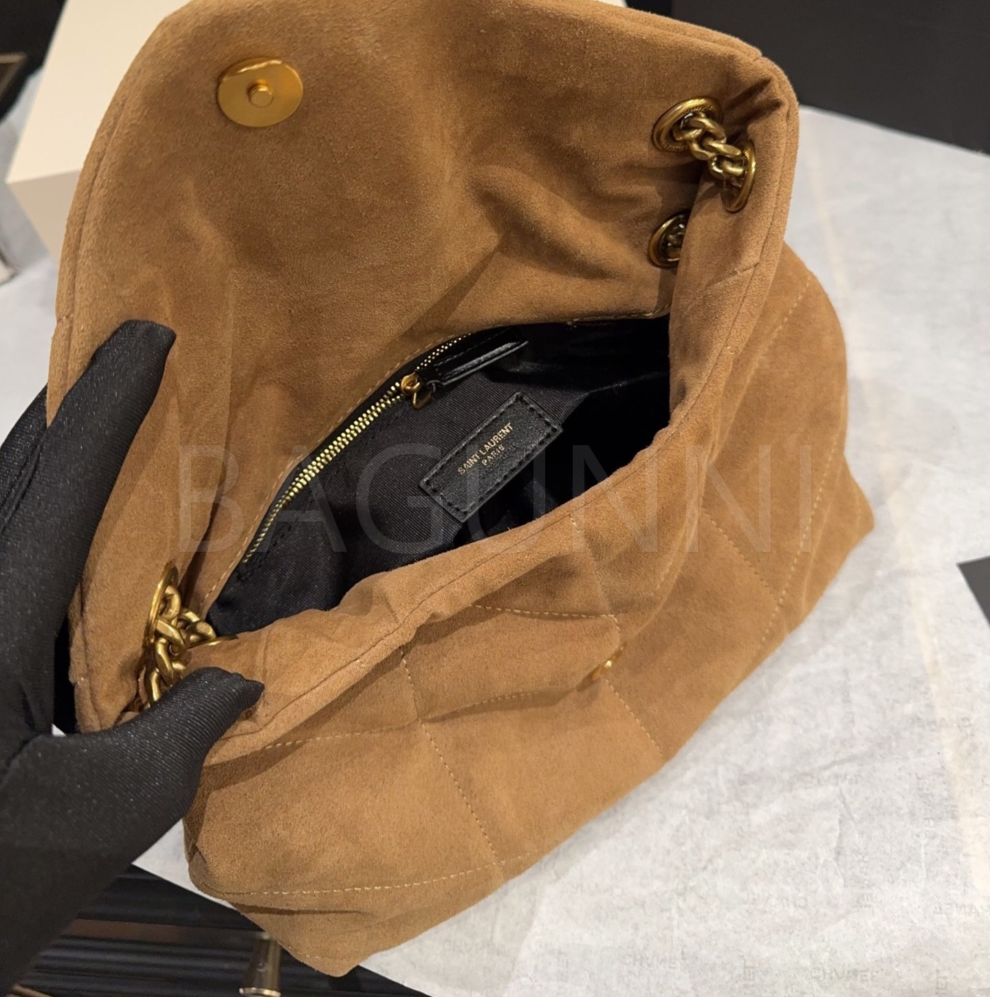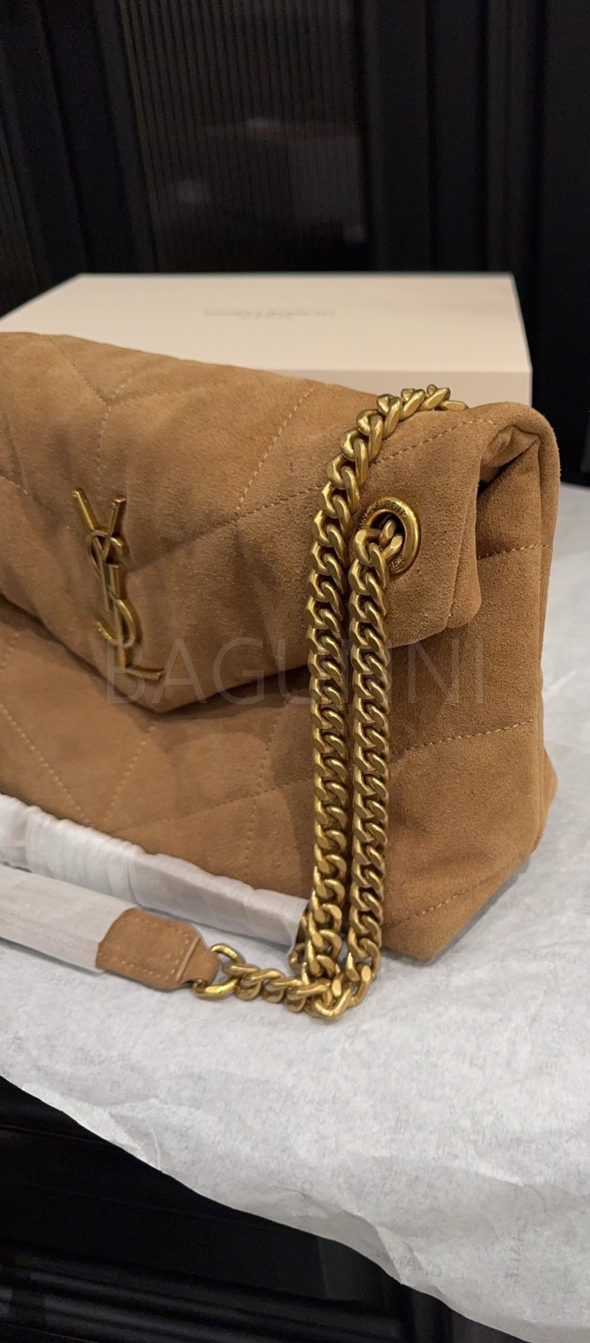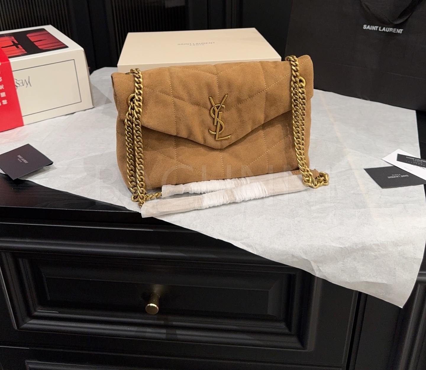 YSL 빅 로고 체인백입니다. 램스킨 특유의 질감이 자연스럽게 살아 있으며 골드 톤이 어우러져 브랜드 특유의 분위기를 편하게 즐기기 좋습니다.