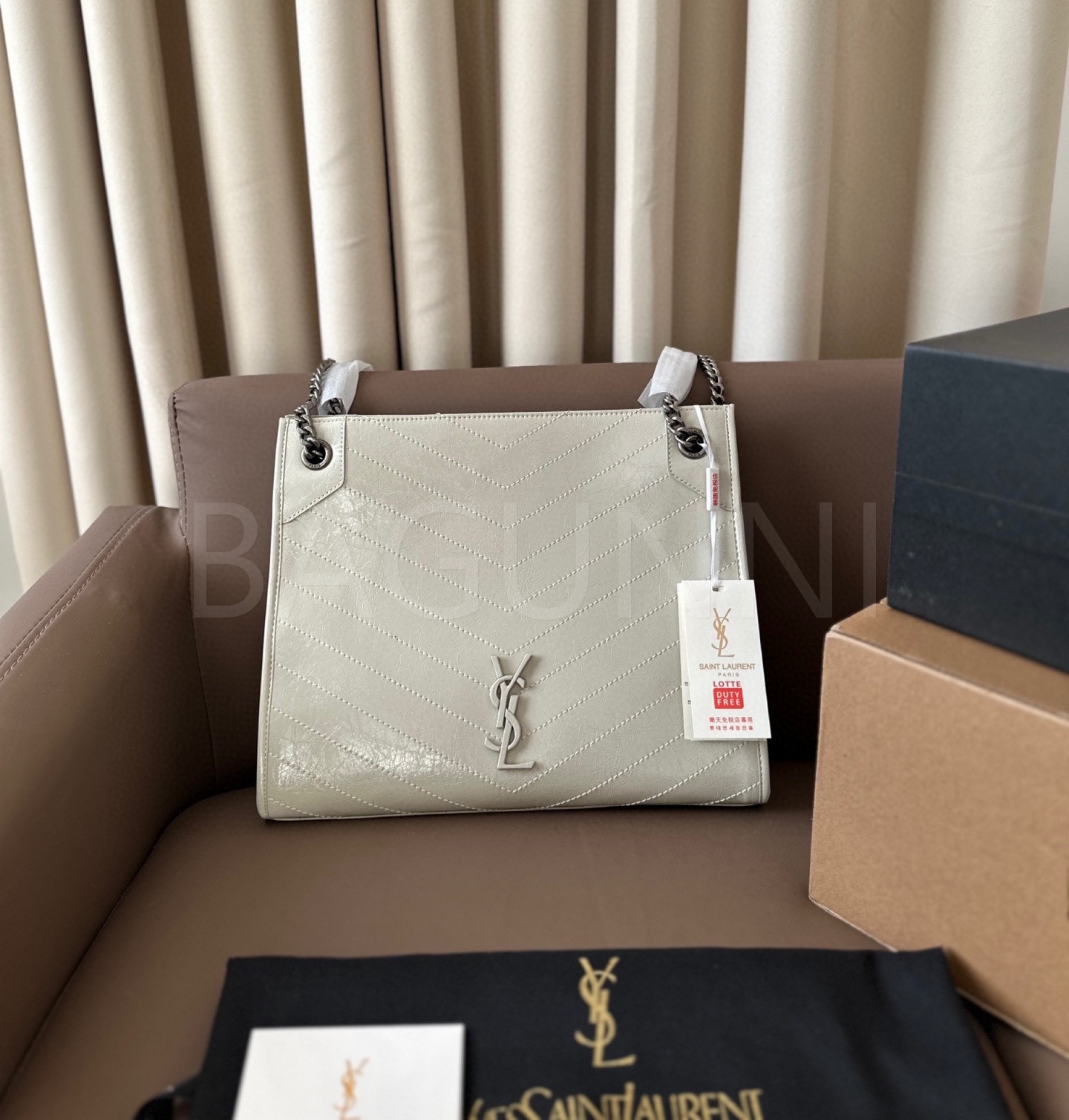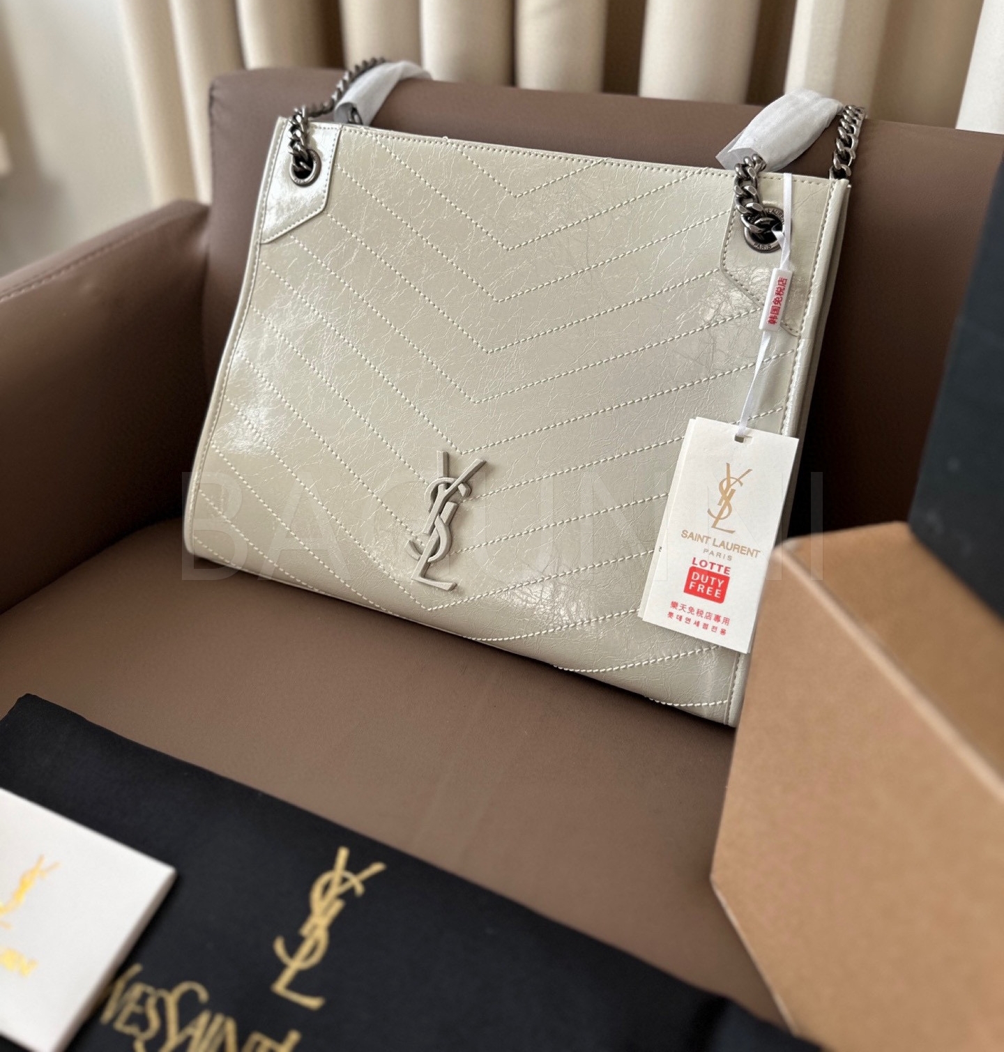 YSL 니키 숄더백입니다. 브랜드 특유의 분위기를 편하게 즐기기 좋습니다.