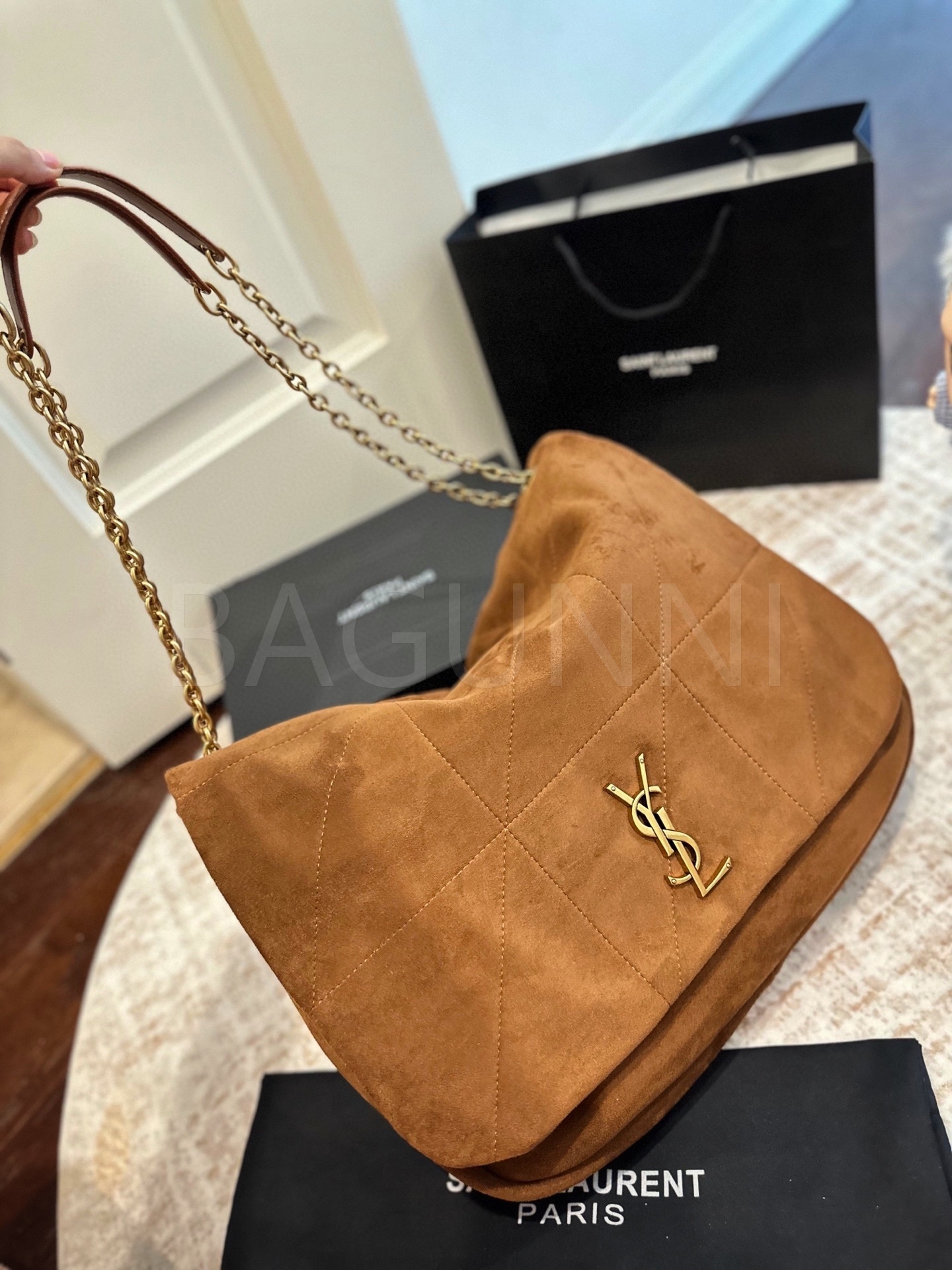 YSL 제이미 토트백입니다. 가죽 특유의 질감이 자연스럽게 살아 있으며 브랜드 특유의 분위기를 편하게 즐기기 좋습니다.