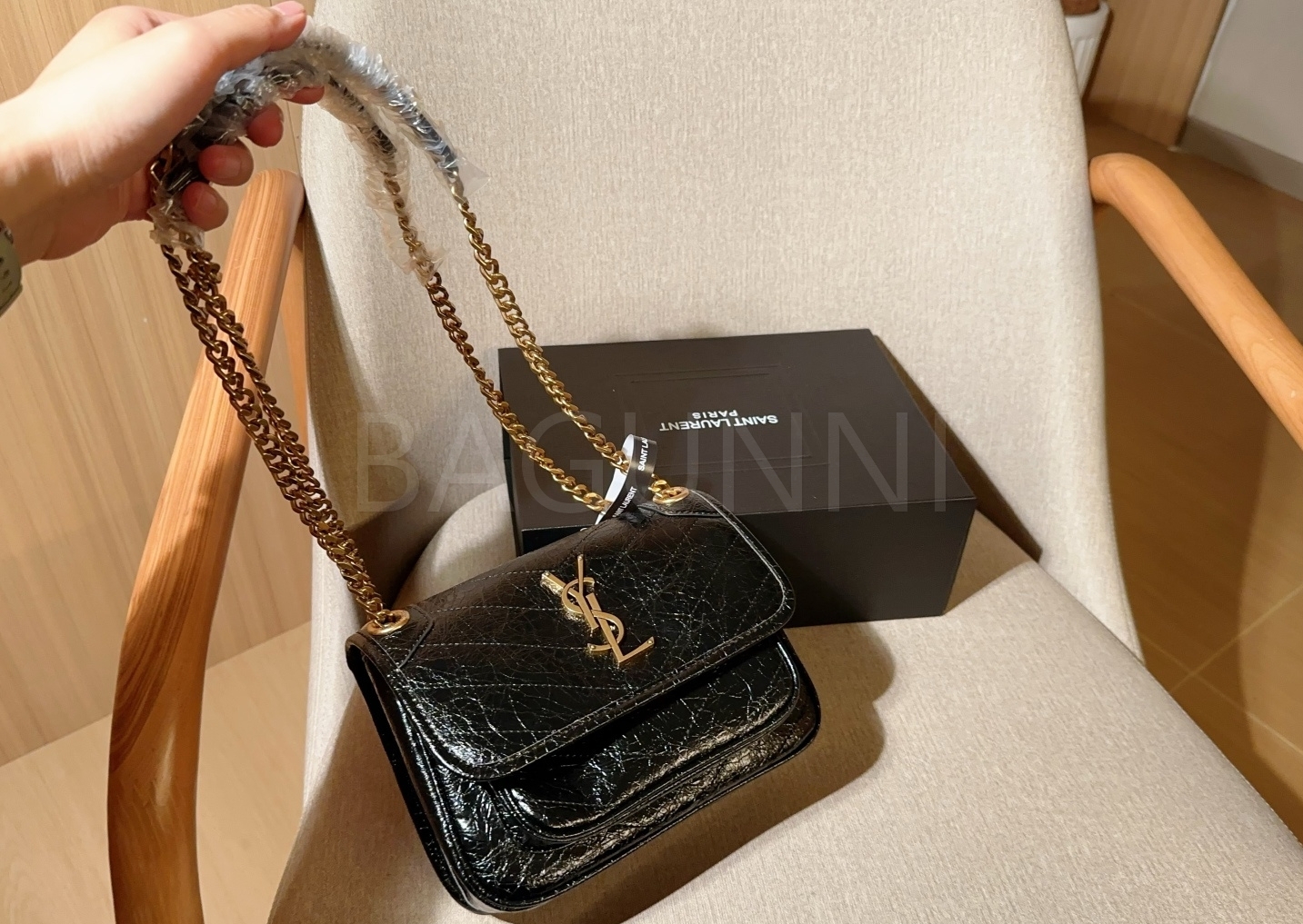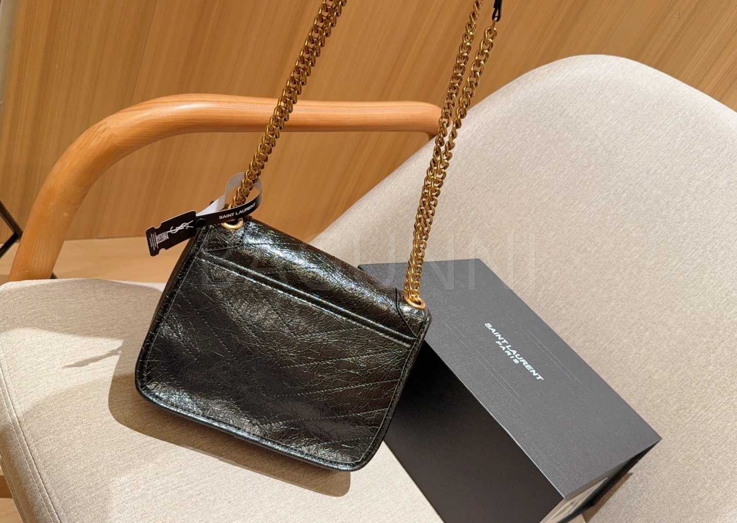 YSL 니키 숄더백입니다. 브랜드 특유의 분위기를 편하게 즐기기 좋습니다.
