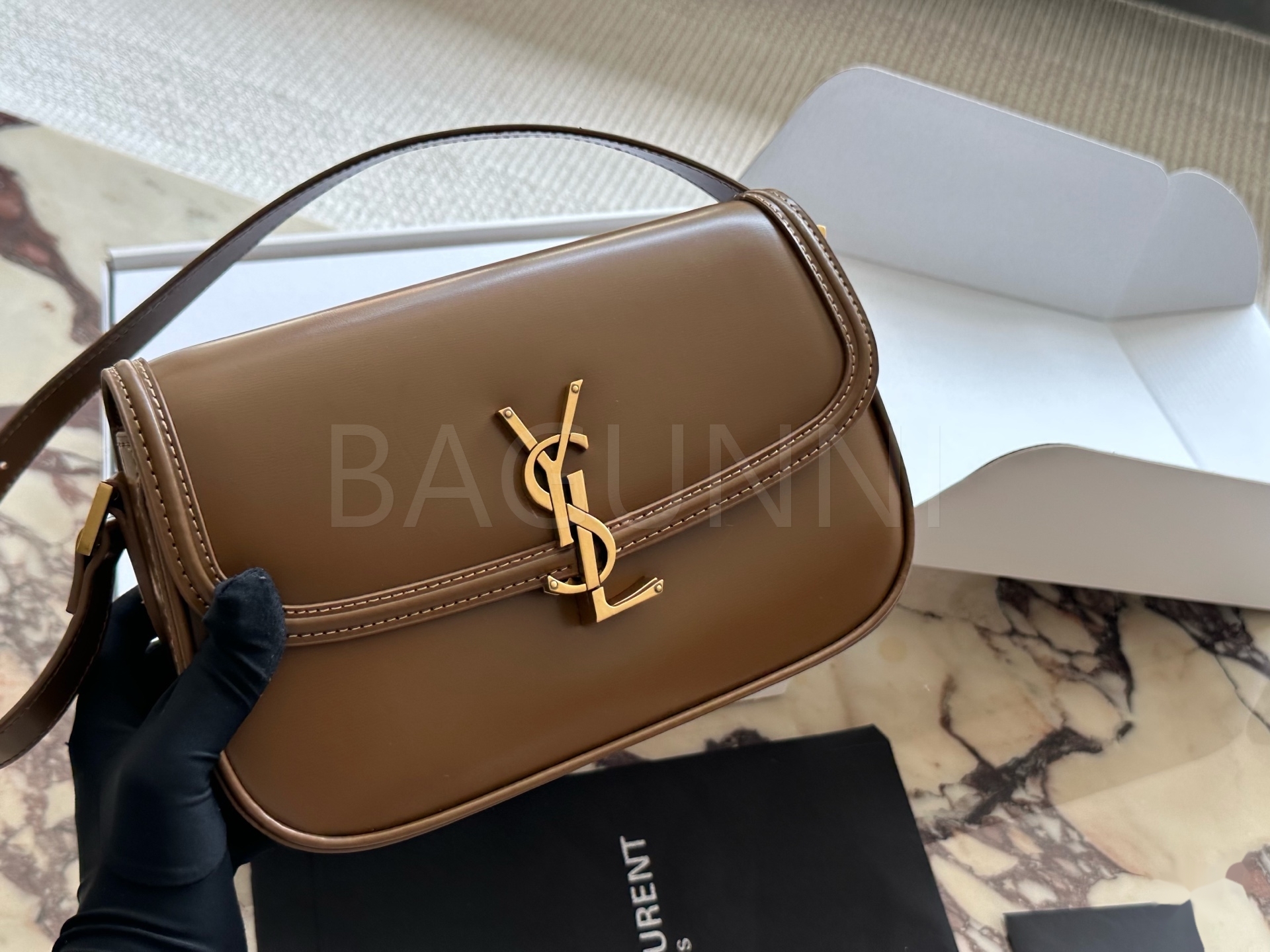 YSL 로고 카메라백입니다. 브랜드 특유의 분위기를 편하게 즐기기 좋습니다.