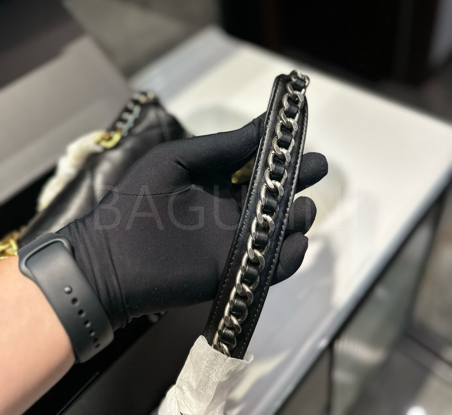 가죽 특유의 매력이 돋보이는 샤넬 19 플랩 백입니다.