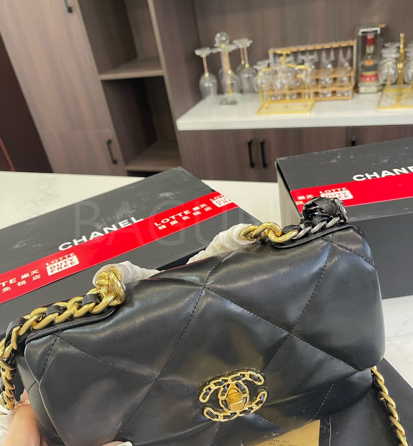 램스킨 특유의 매력이 돋보이는 샤넬 19 플랩 백입니다.