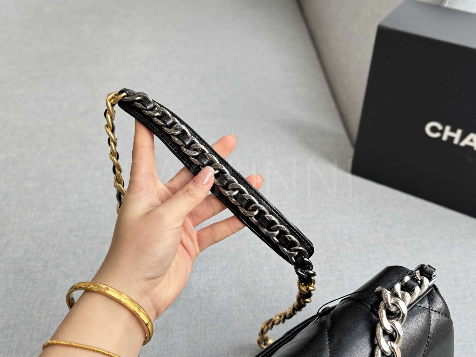 세련된 무드가 돋보이는 샤넬 19 플랩 백입니다.