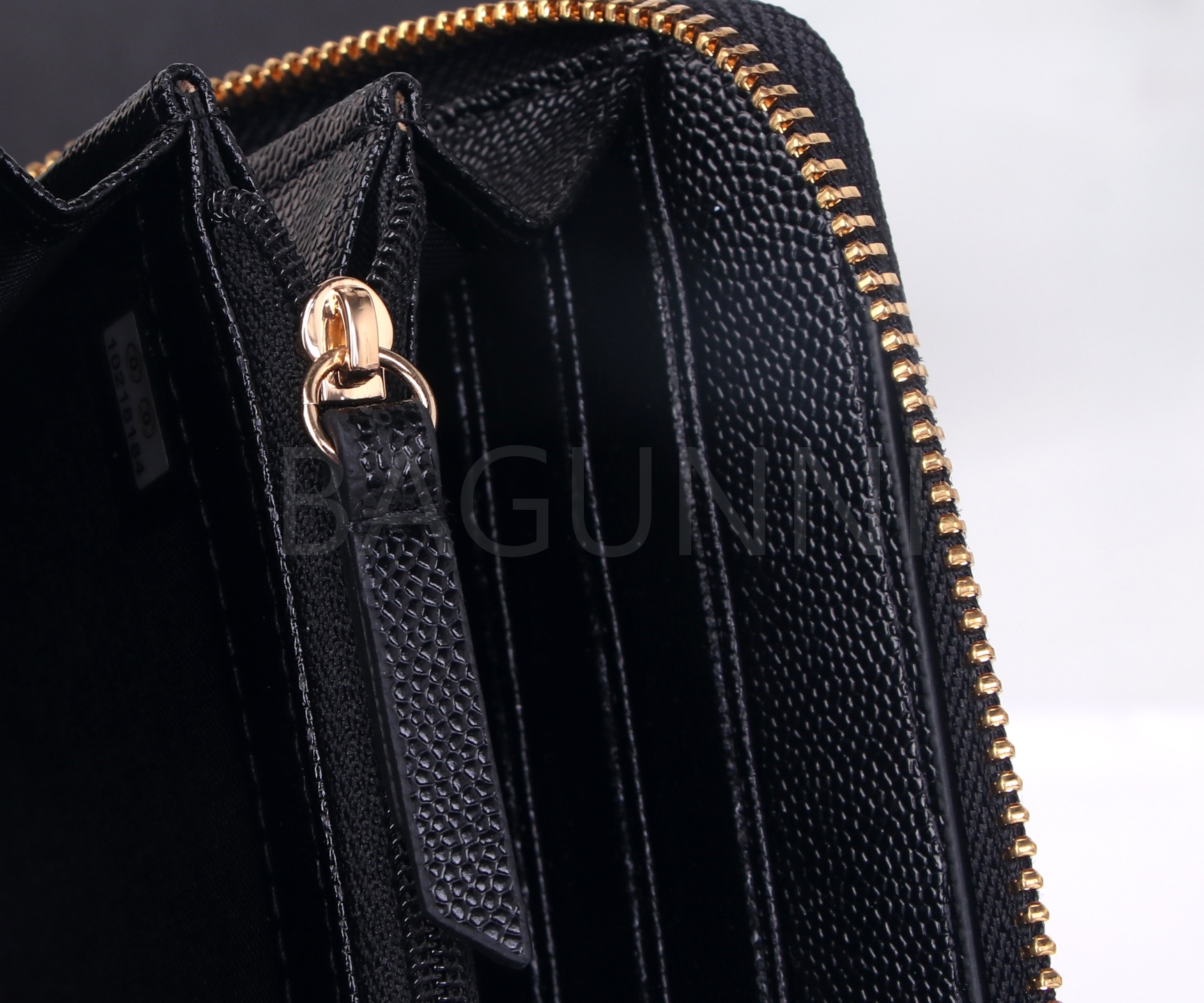 카프스킨의 질감이 돋보이는 샤넬 19 카드지갑입니다.