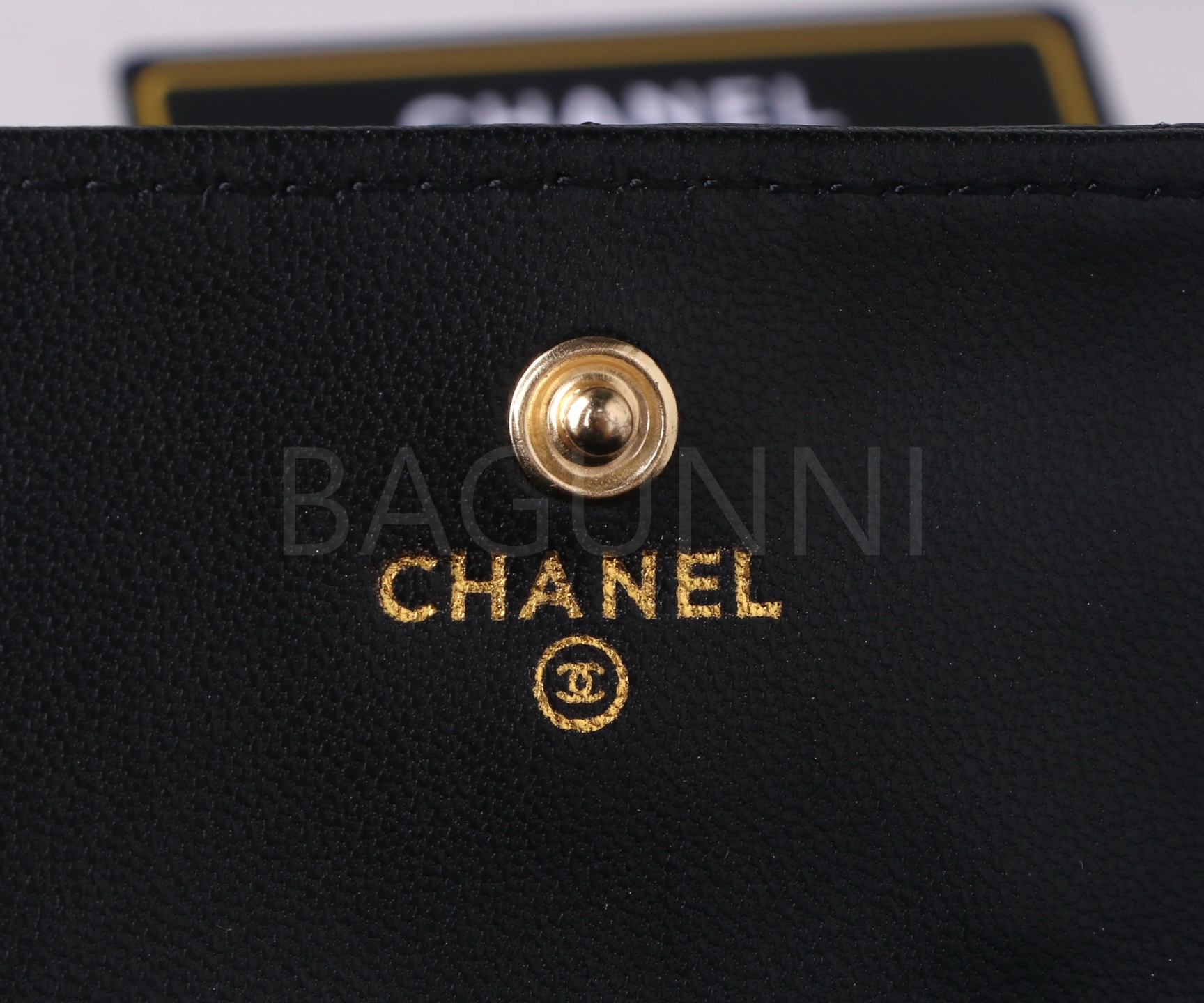 카프스킨의 질감이 돋보이는 샤넬 19 카드지갑입니다.