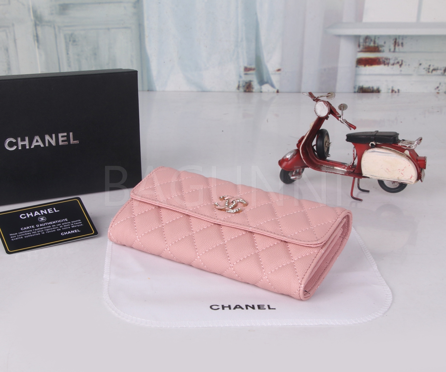 카프스킨의 질감이 돋보이는 샤넬 19 카드지갑입니다.