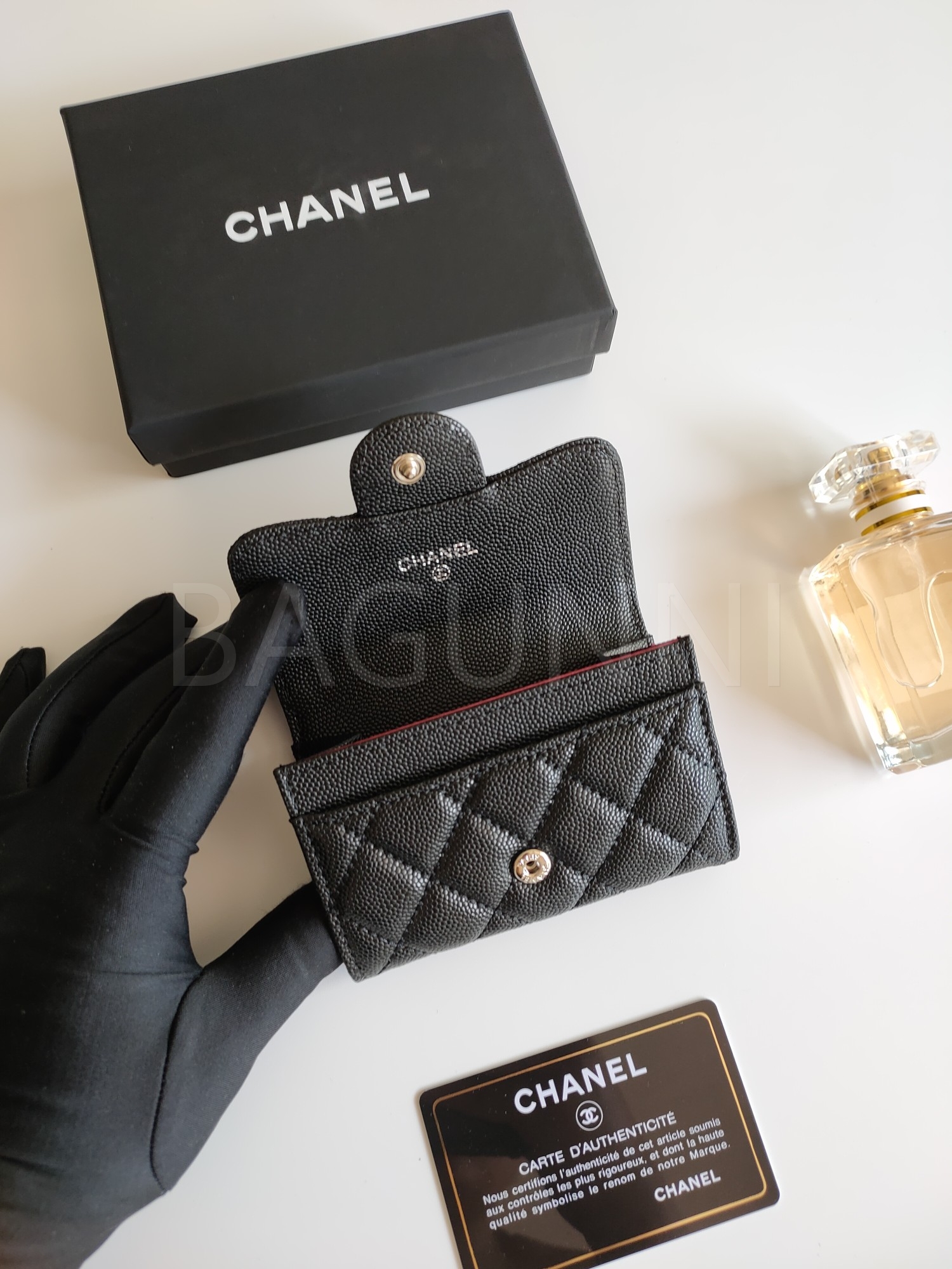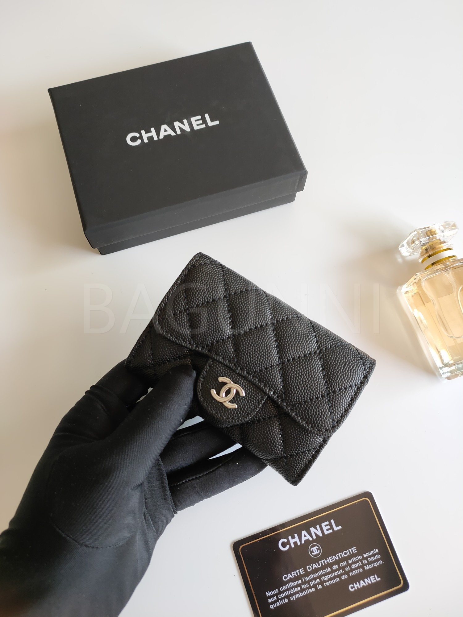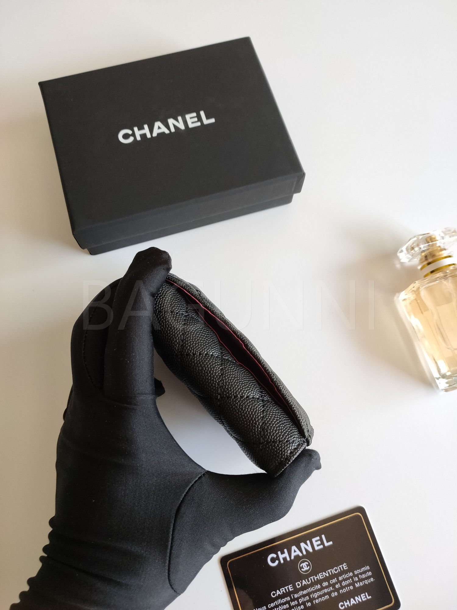카프스킨의 질감이 돋보이는 샤넬 19 카드지갑입니다.