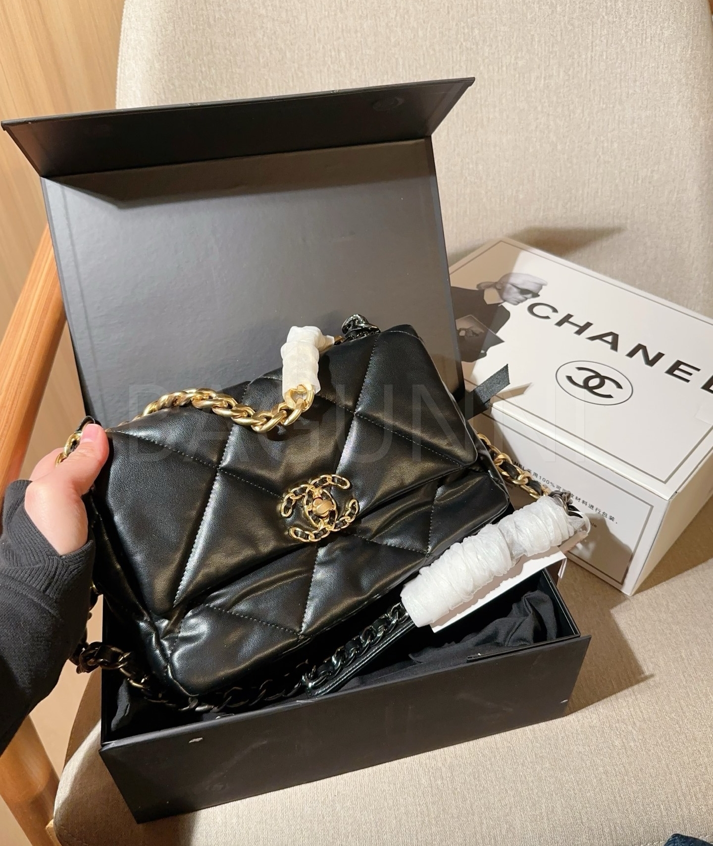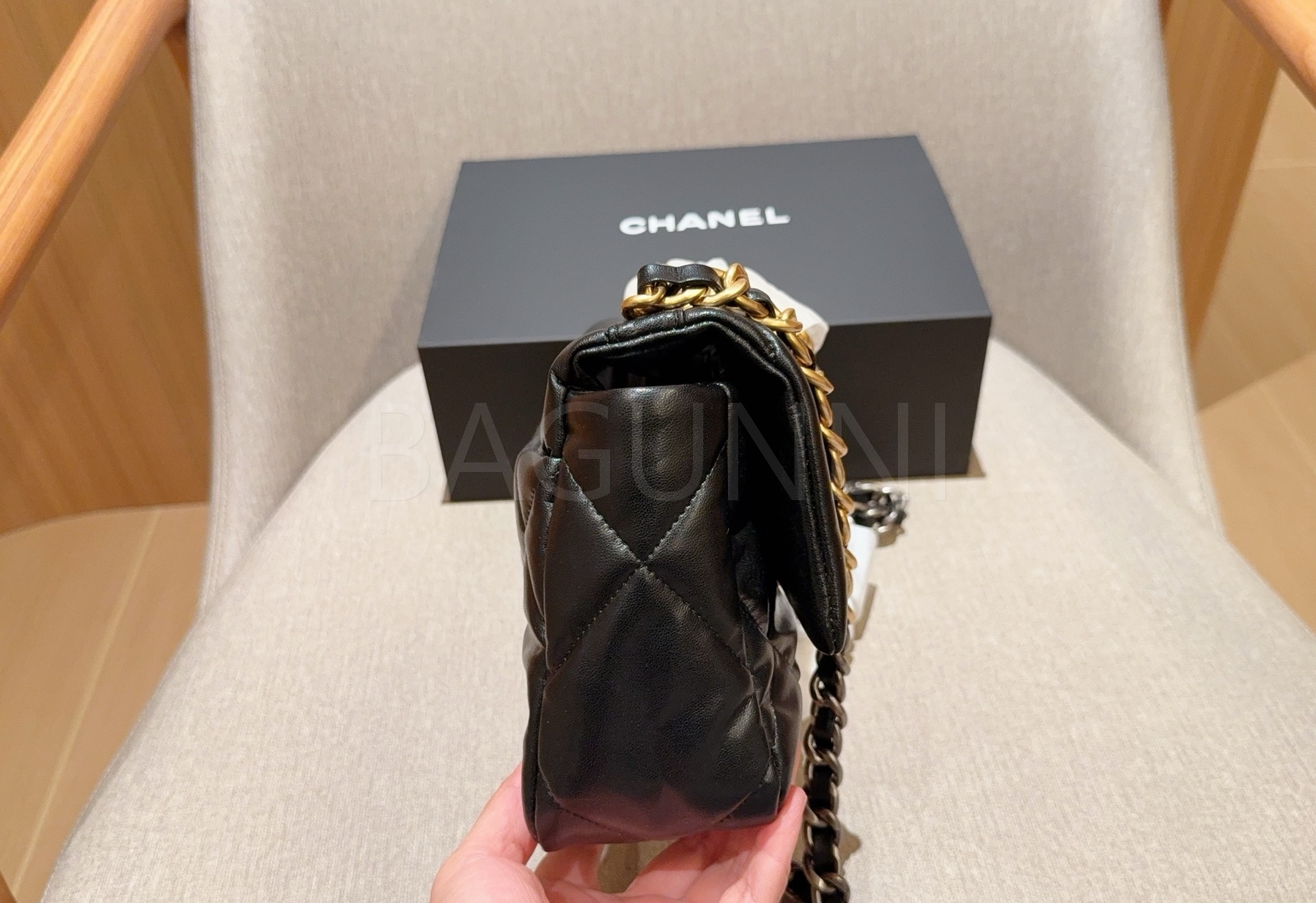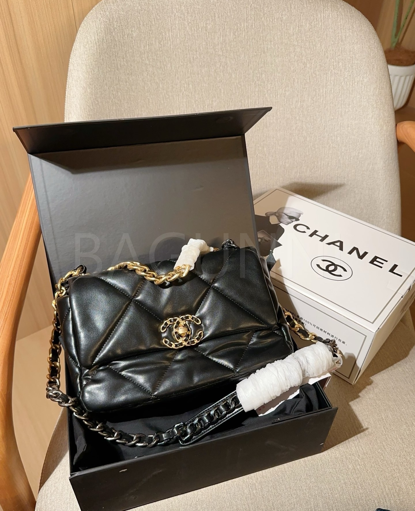 세련된 무드가 돋보이는 샤넬 19 플랩 백입니다.