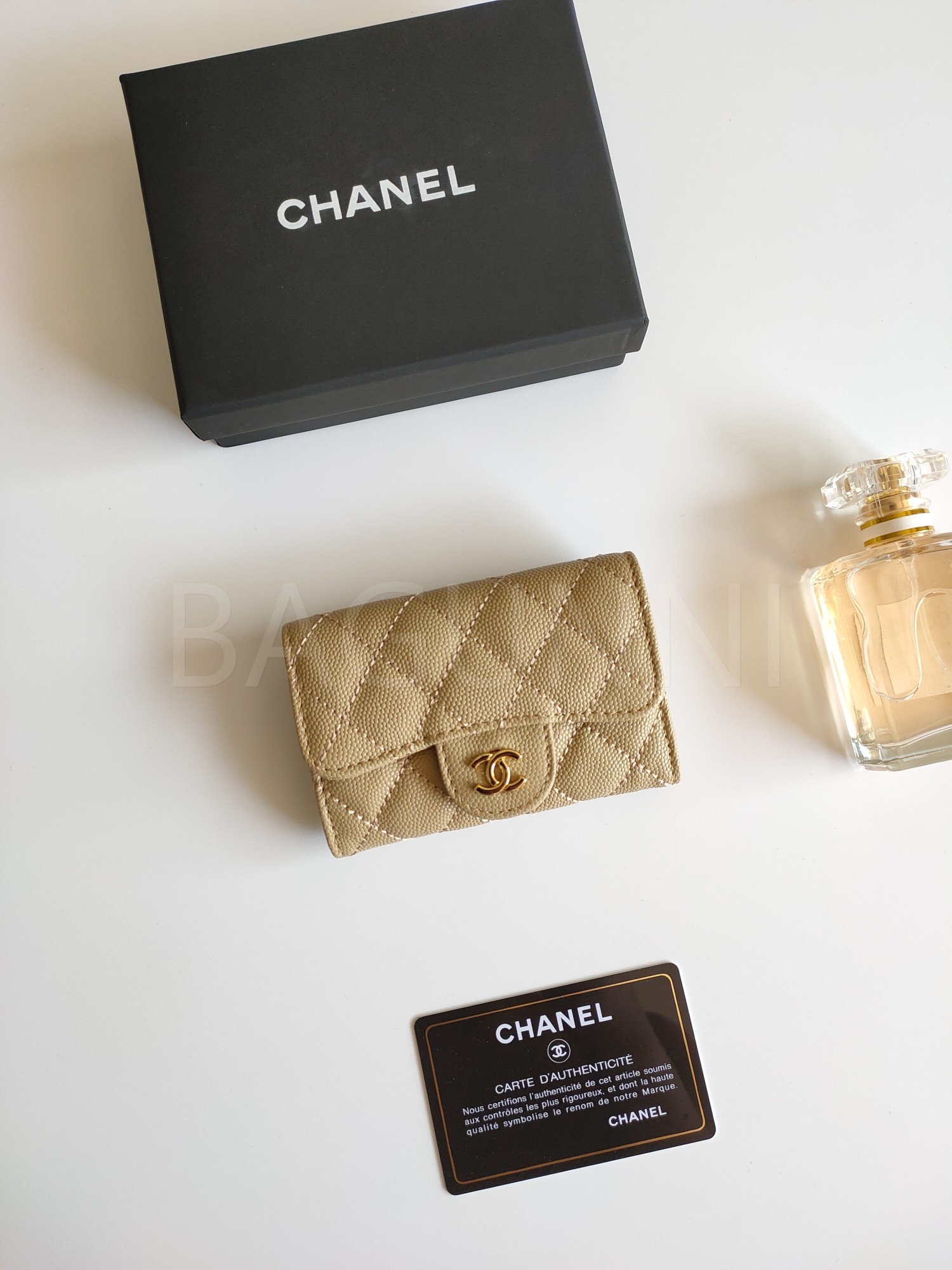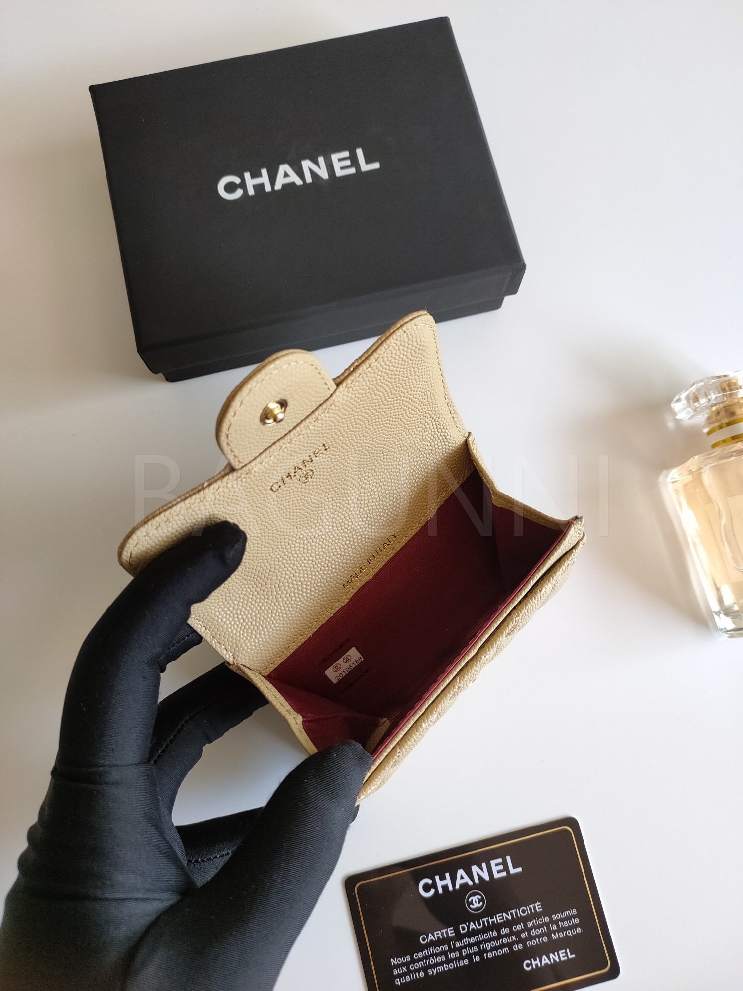 카프스킨의 질감이 돋보이는 샤넬 19 카드지갑입니다.