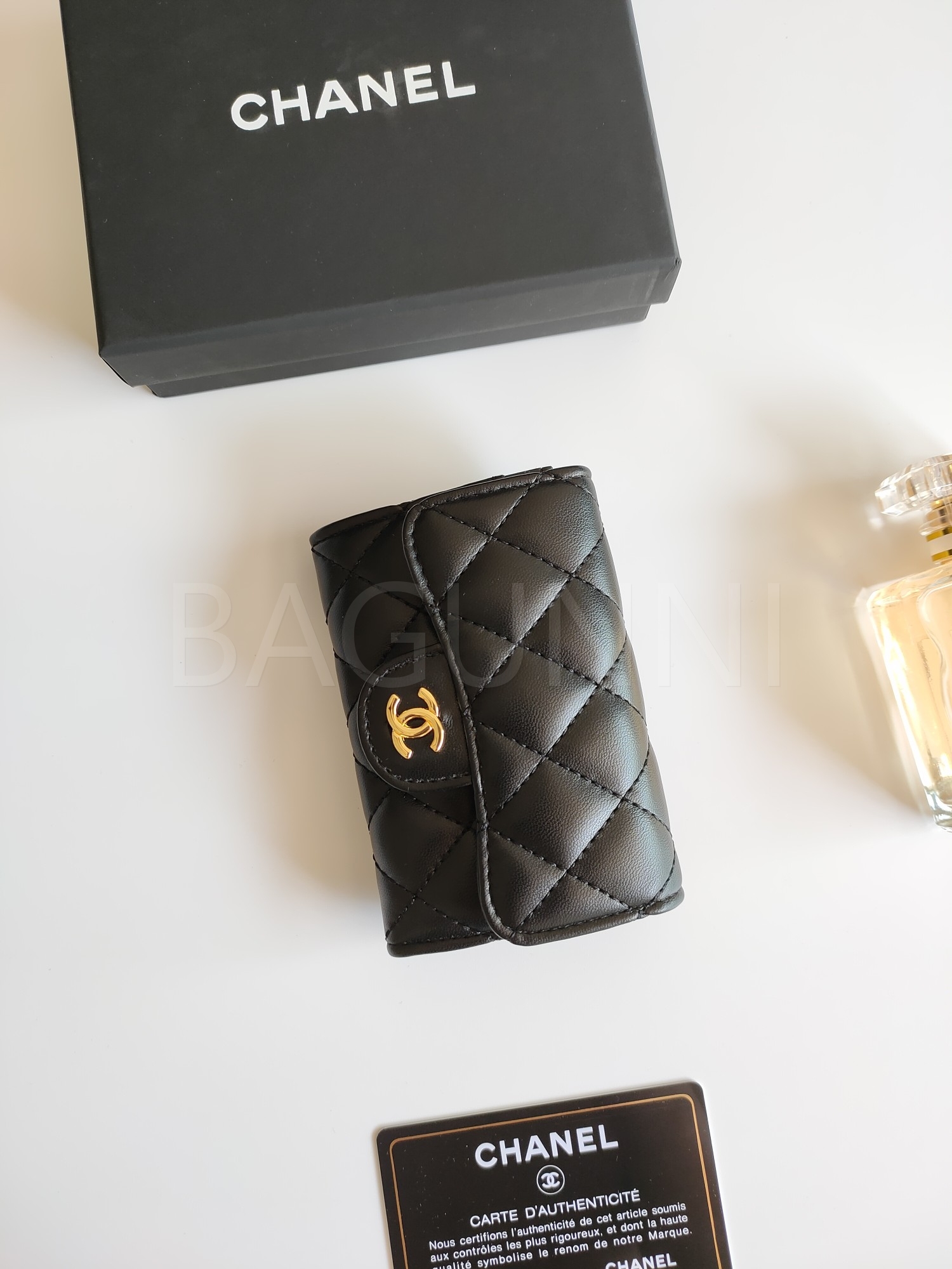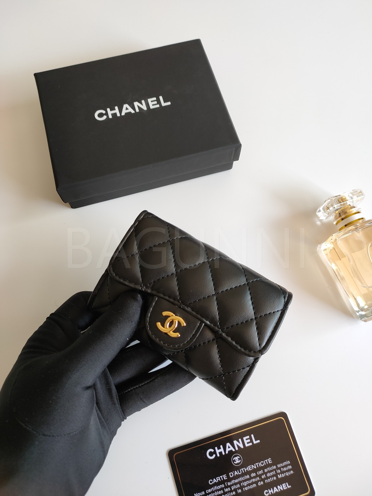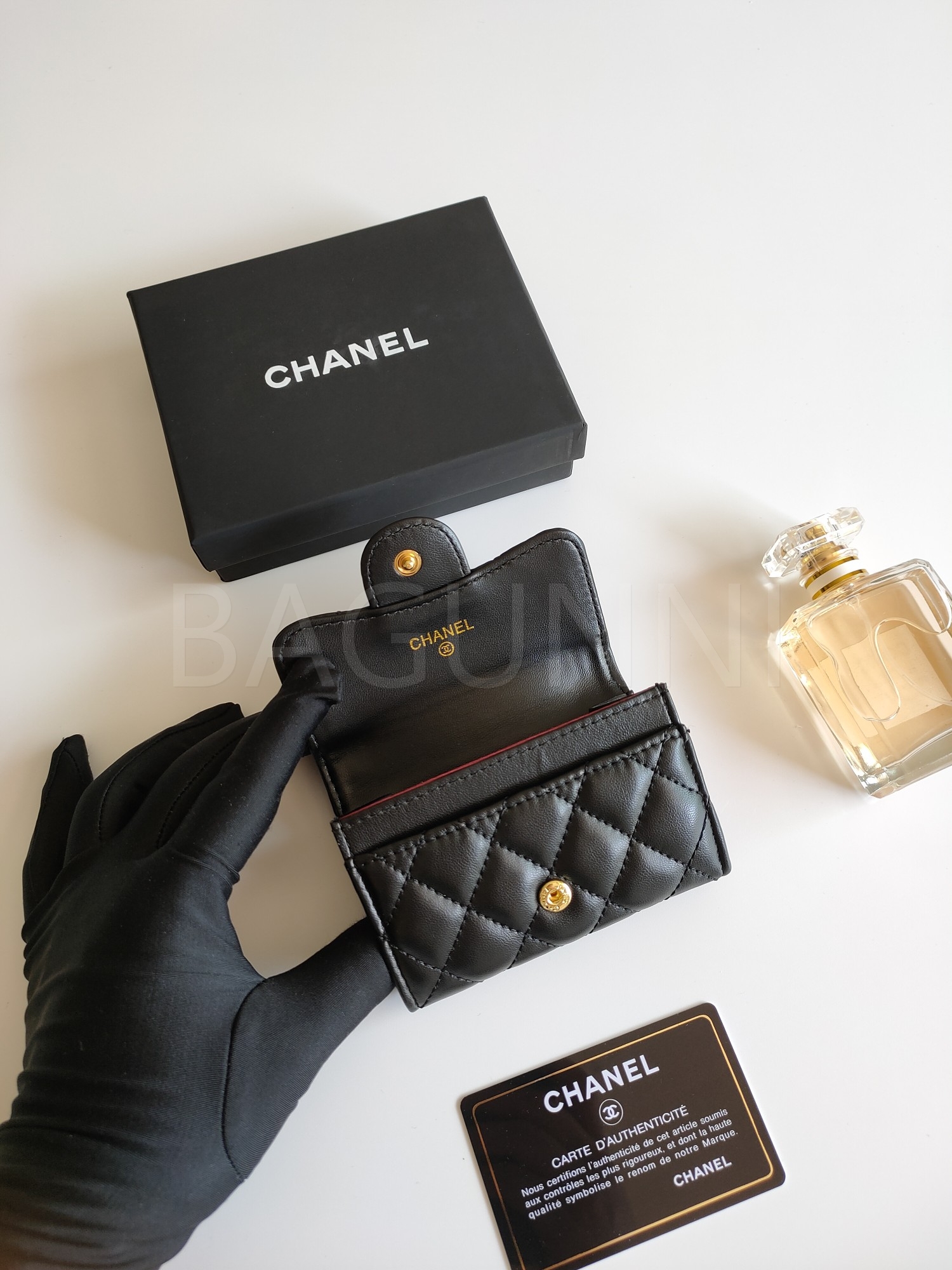 카프스킨의 질감이 돋보이는 샤넬 19 카드지갑입니다.