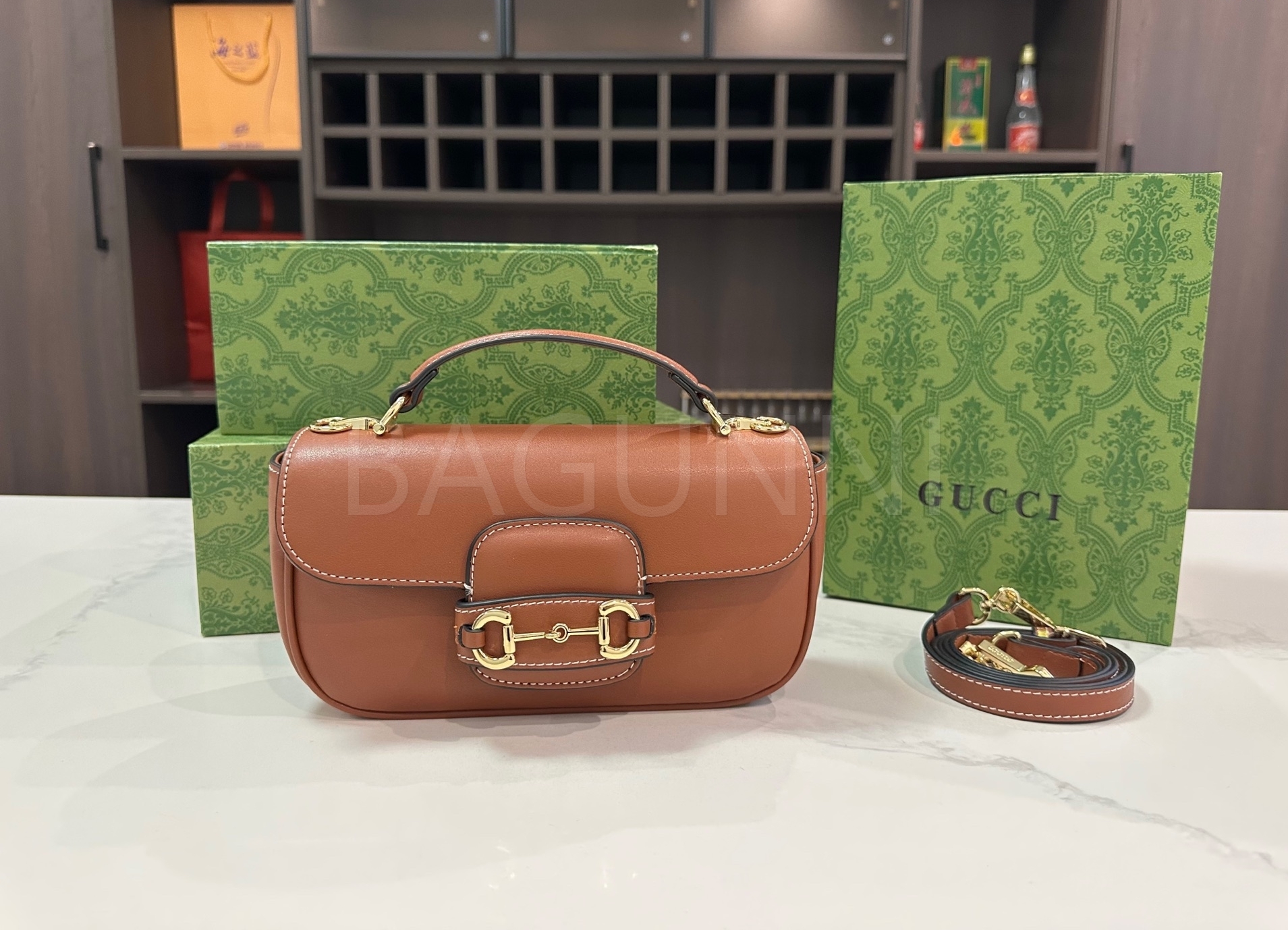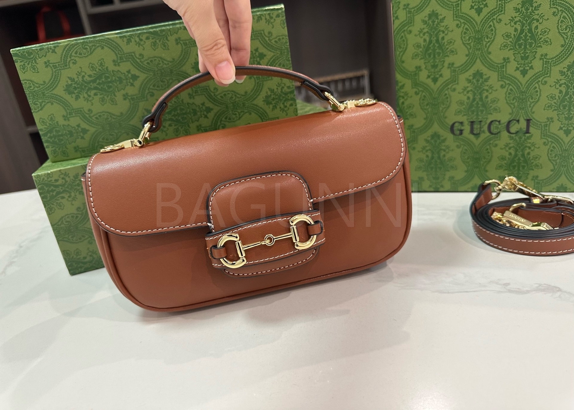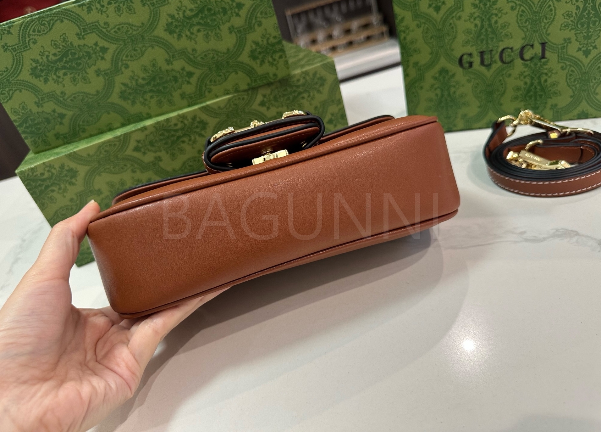 구찌 홀스빗 1955 숄더백입니다. 골드 톤이 어우러져 브랜드 특유의 분위기를 편하게 즐기기 좋습니다.