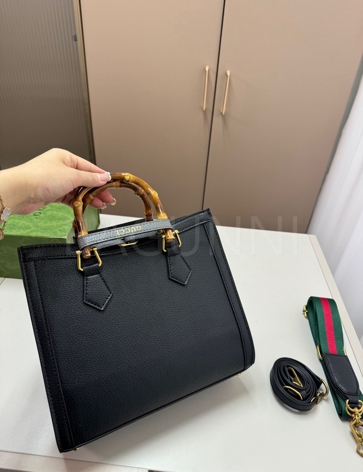 구찌 홀스빗 1955 토트백은 빈티지한 무드를 담은 아이템입니다.