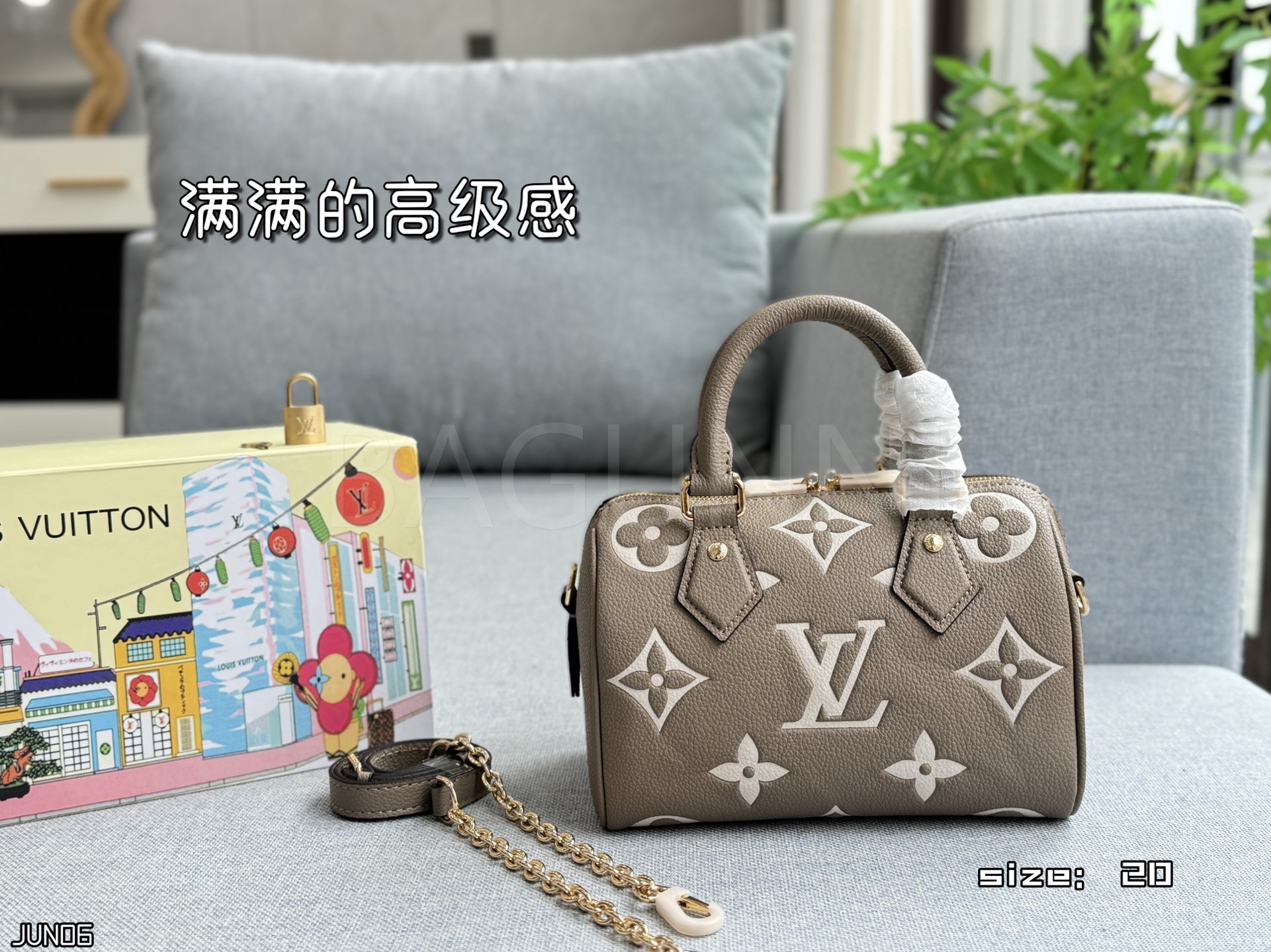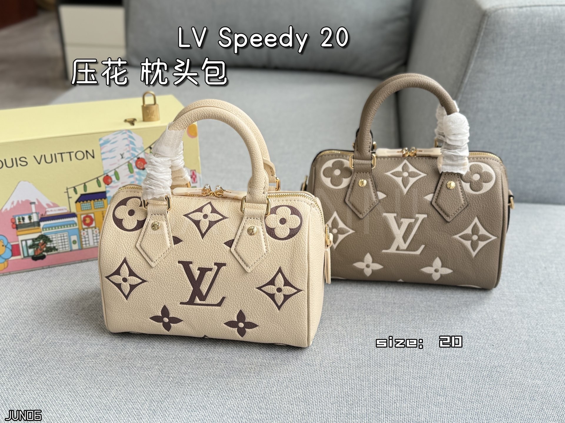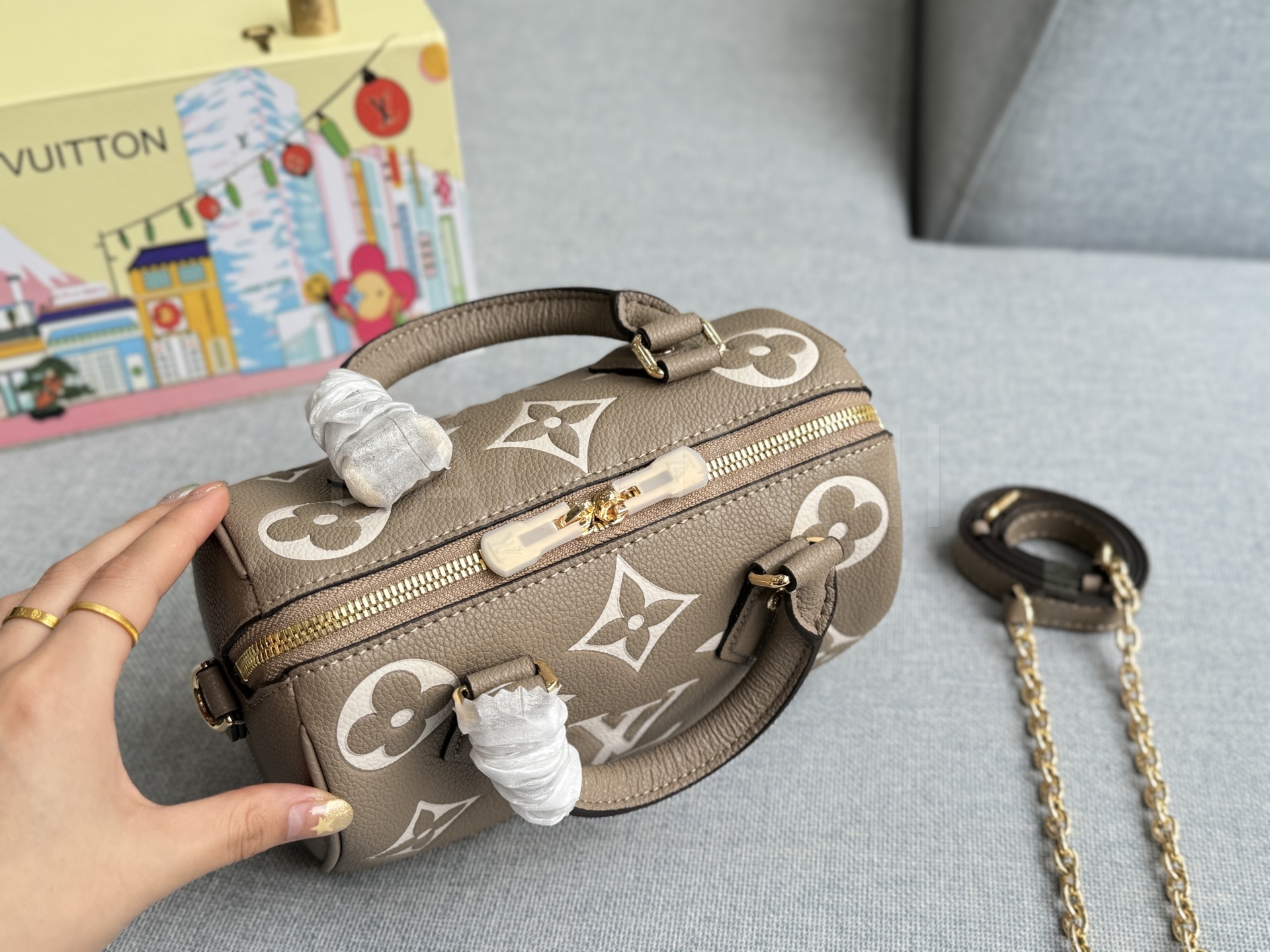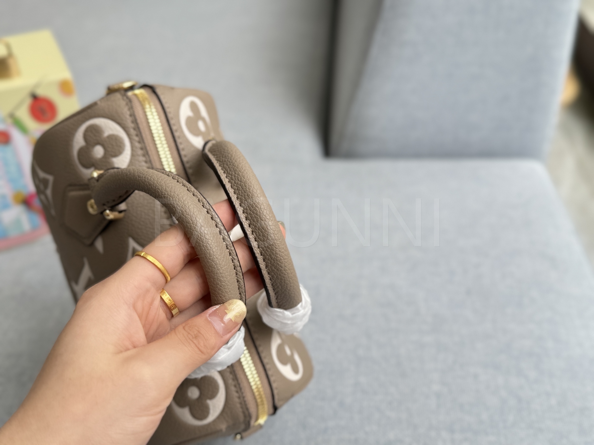 입체적인 엠보싱 가죽 질감이 매력적인 루이비통 앙프렝뜨 스피디 20입니다.