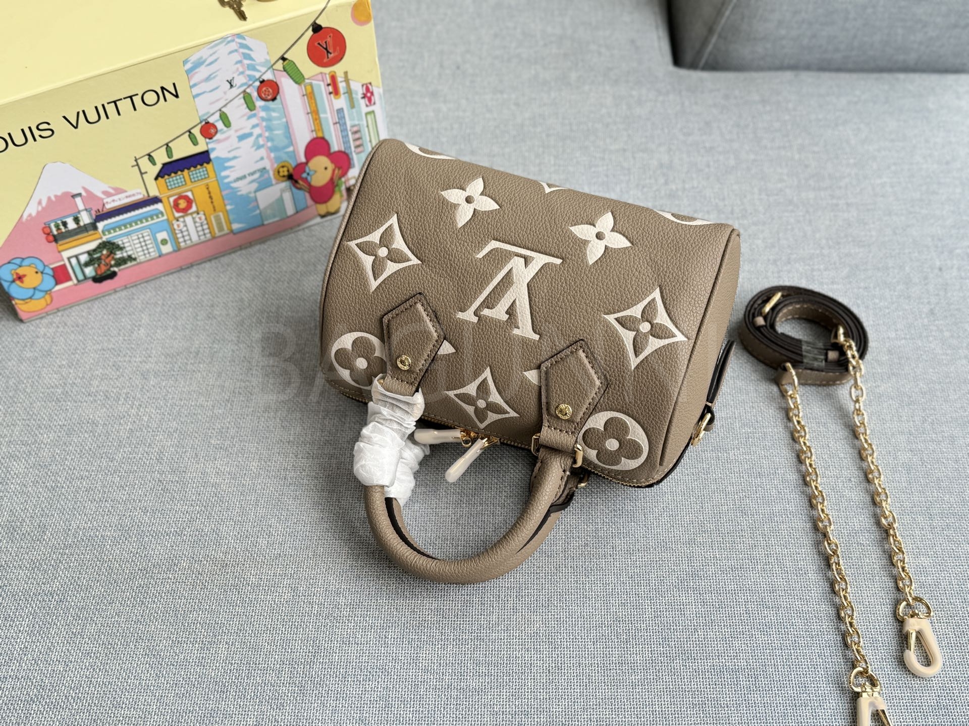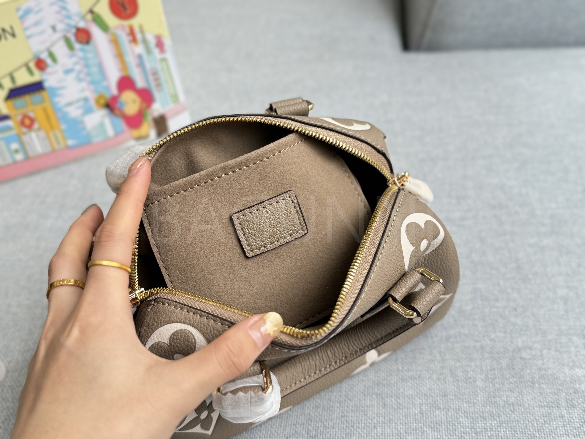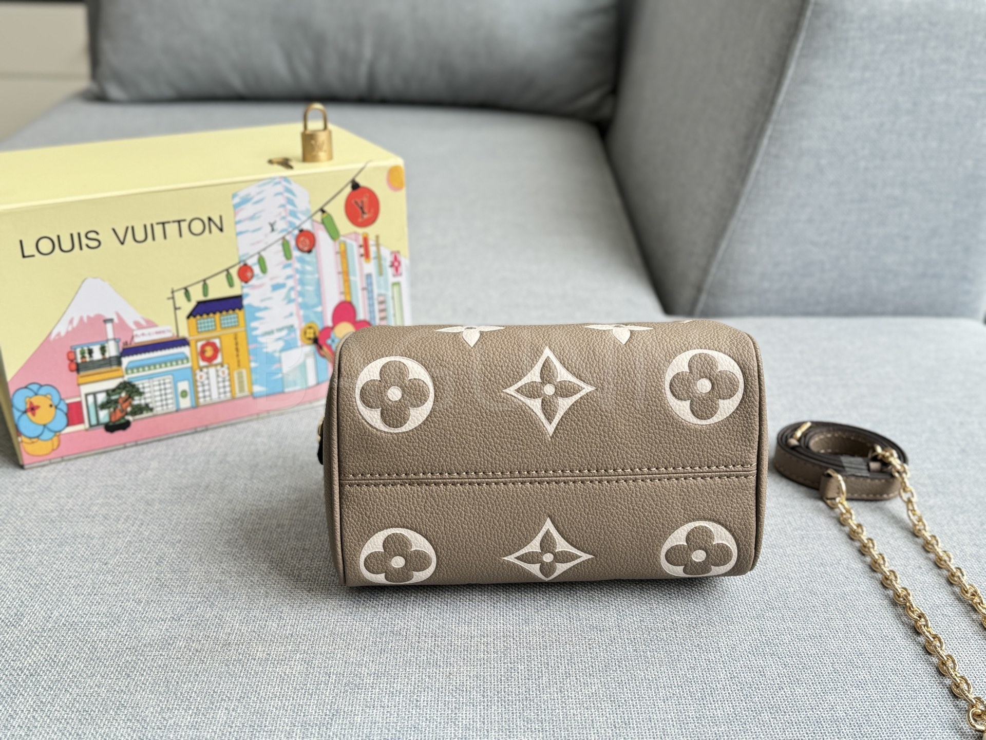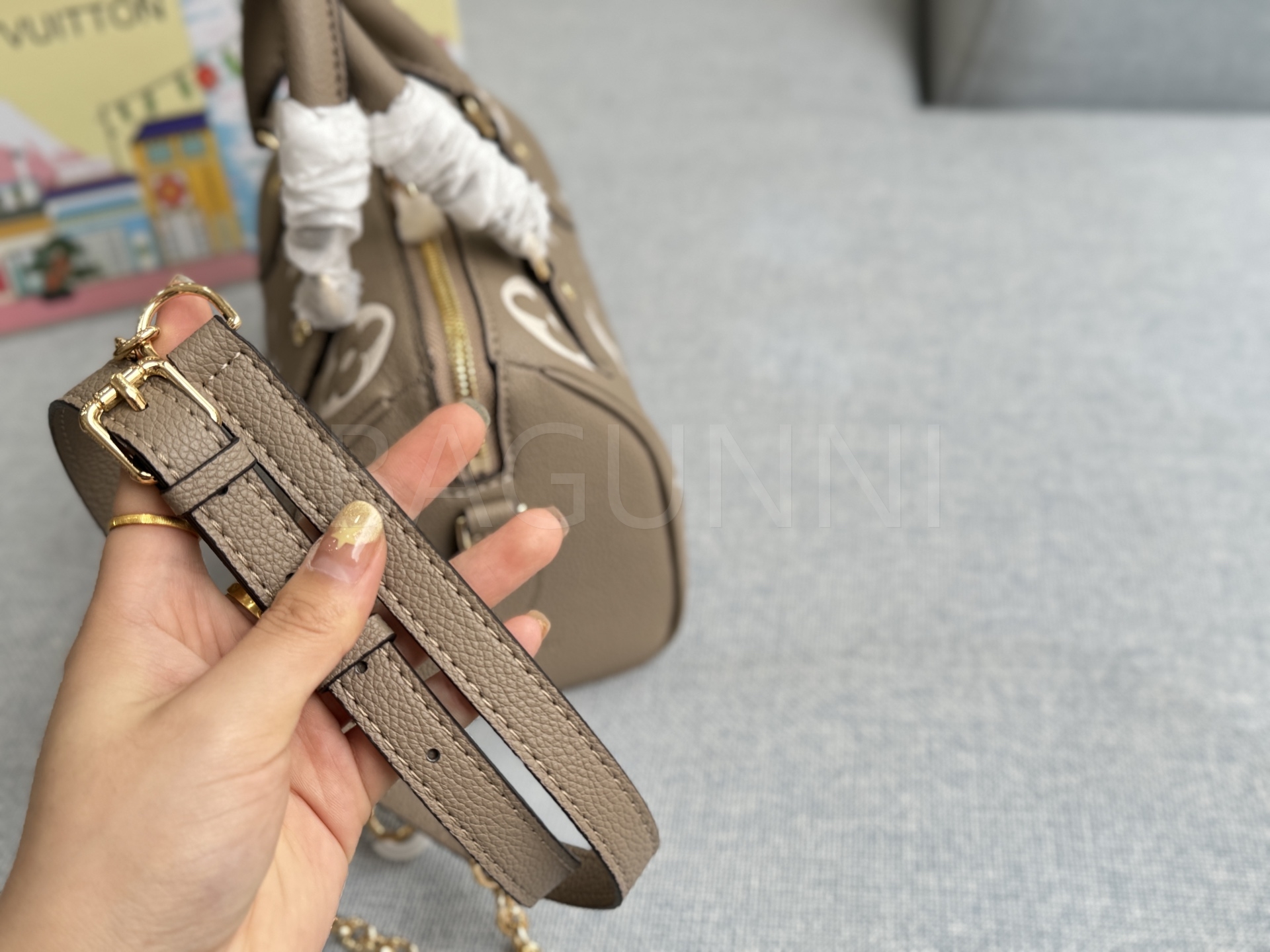 입체적인 엠보싱 가죽 질감이 매력적인 루이비통 앙프렝뜨 스피디 20입니다.