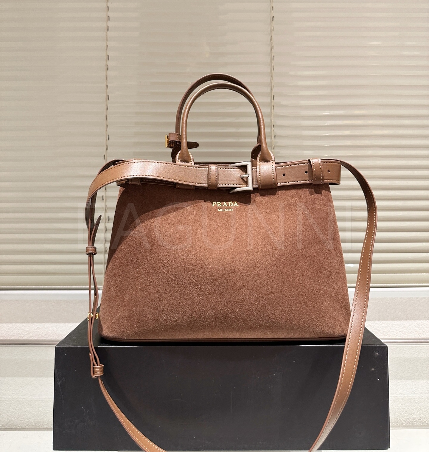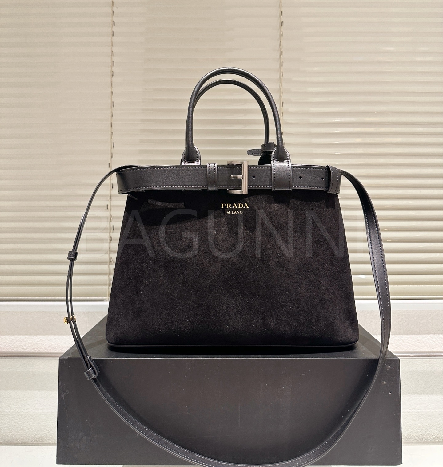 프라다 22 스웨이드 토트백은 우아한 분위기를 담은 아이템입니다.