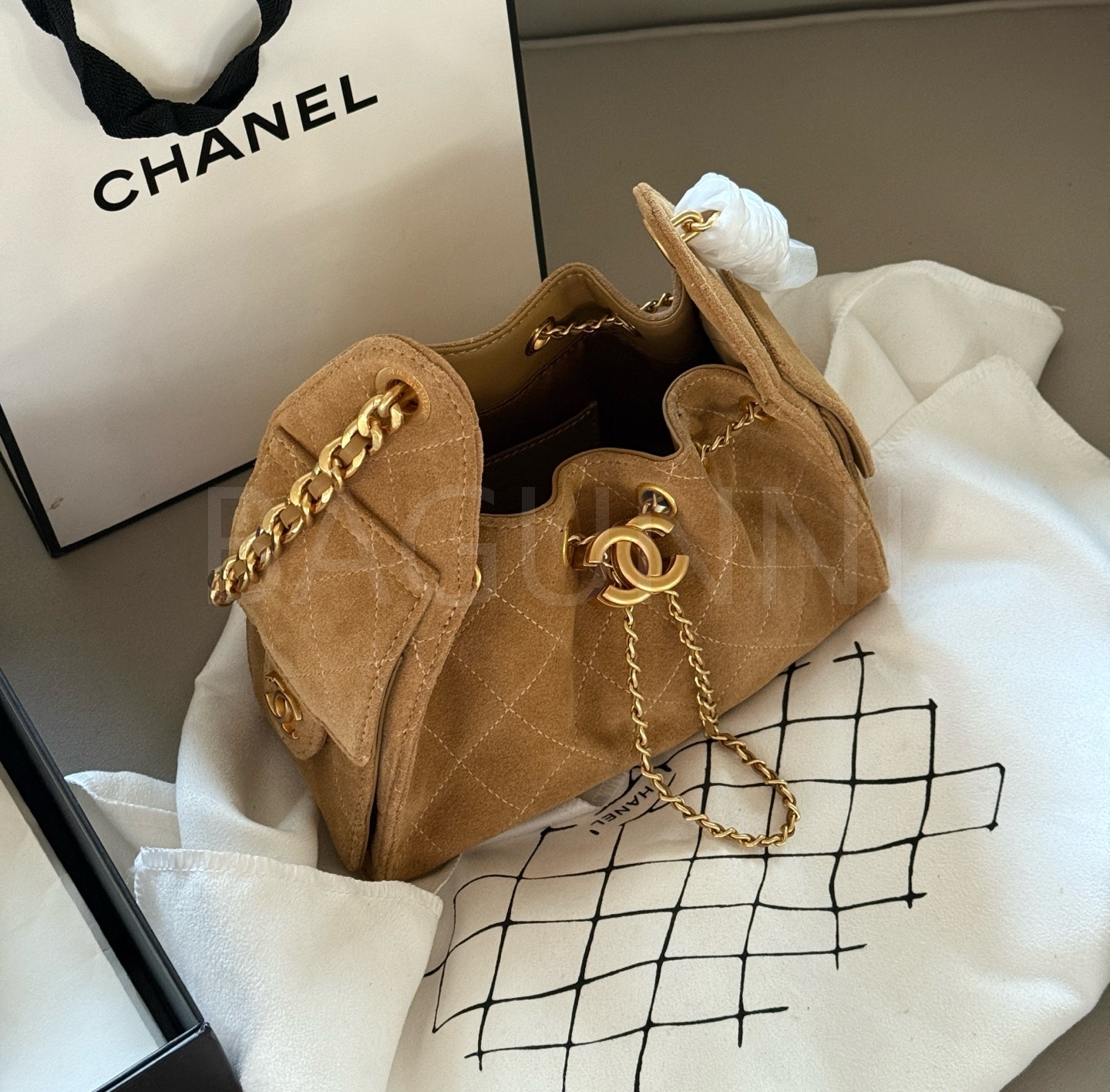 샤넬 22 스웨이드 호보 백