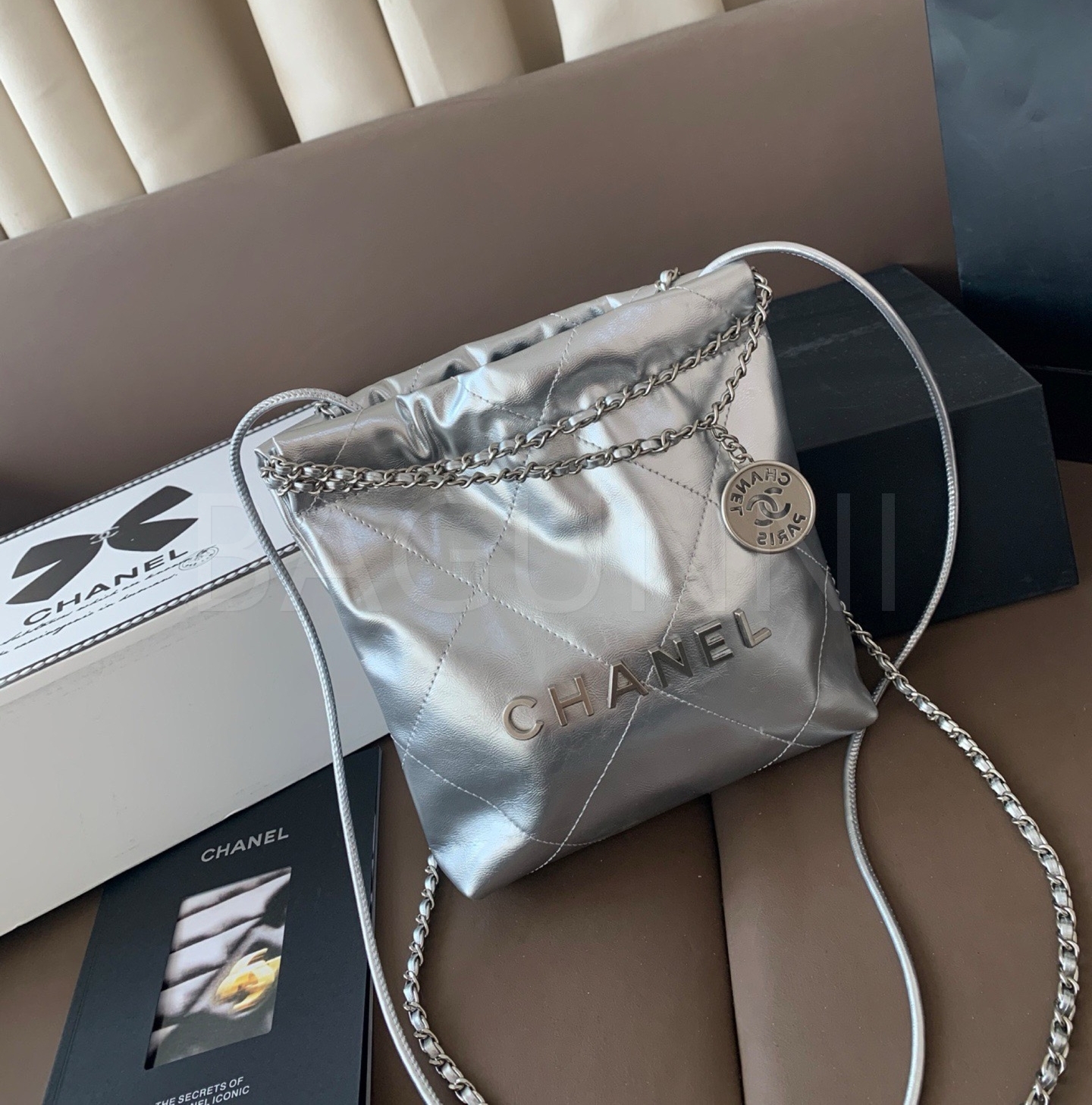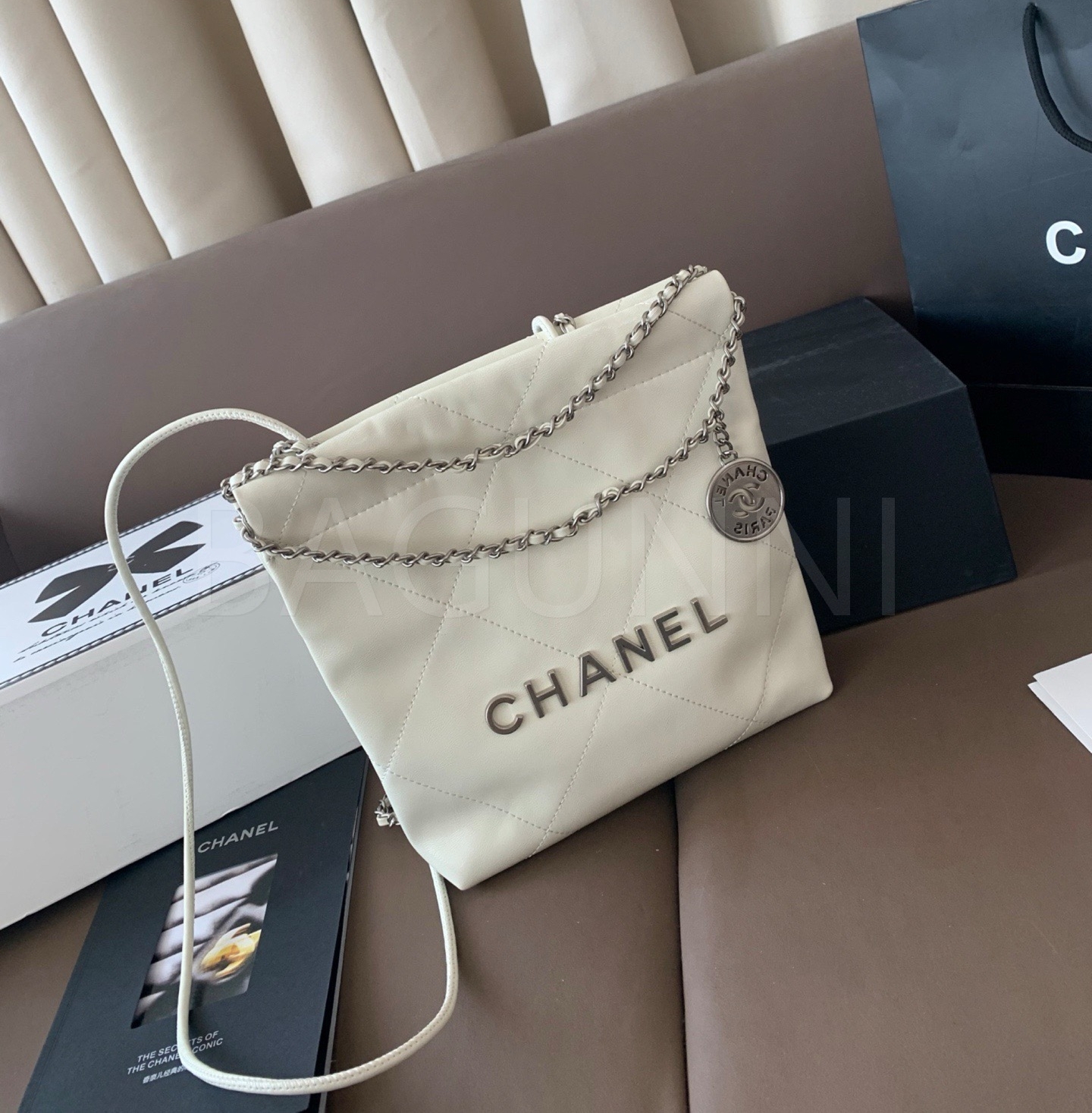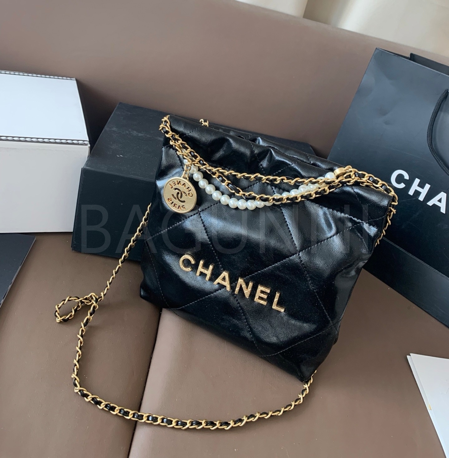 가죽 특유의 매력이 돋보이는 샤넬 22B 펄 22 백입니다.