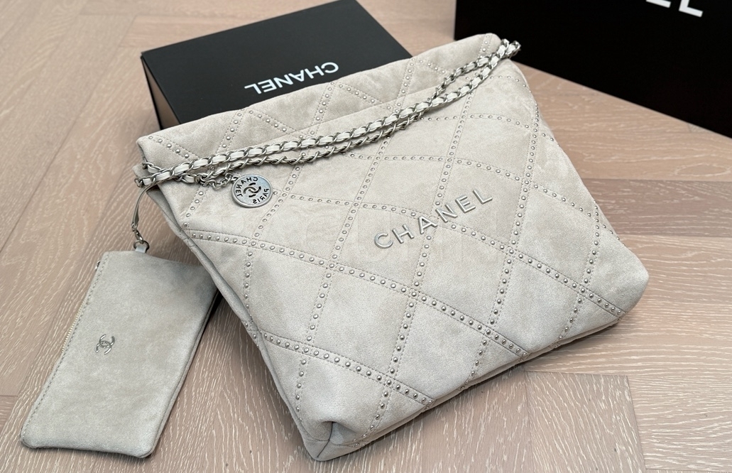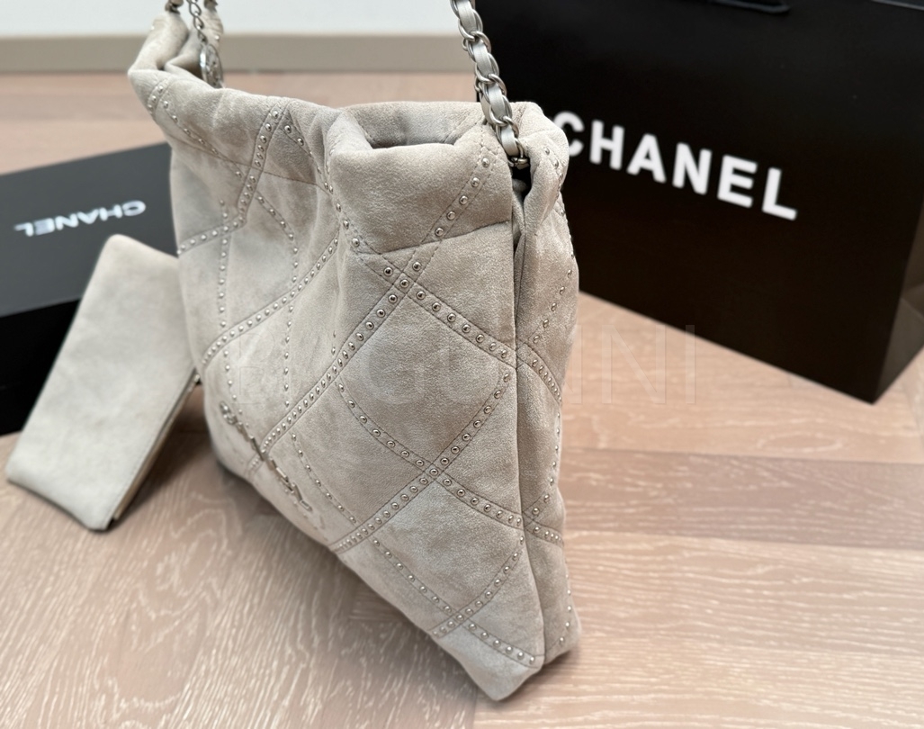 스웨이드 특유의 매력이 돋보이는 샤넬 22B 22 백입니다.