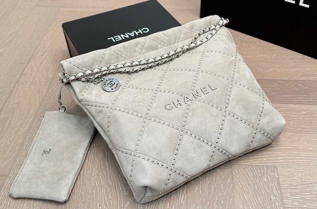 스웨이드 특유의 매력이 돋보이는 샤넬 22B 22 백입니다.