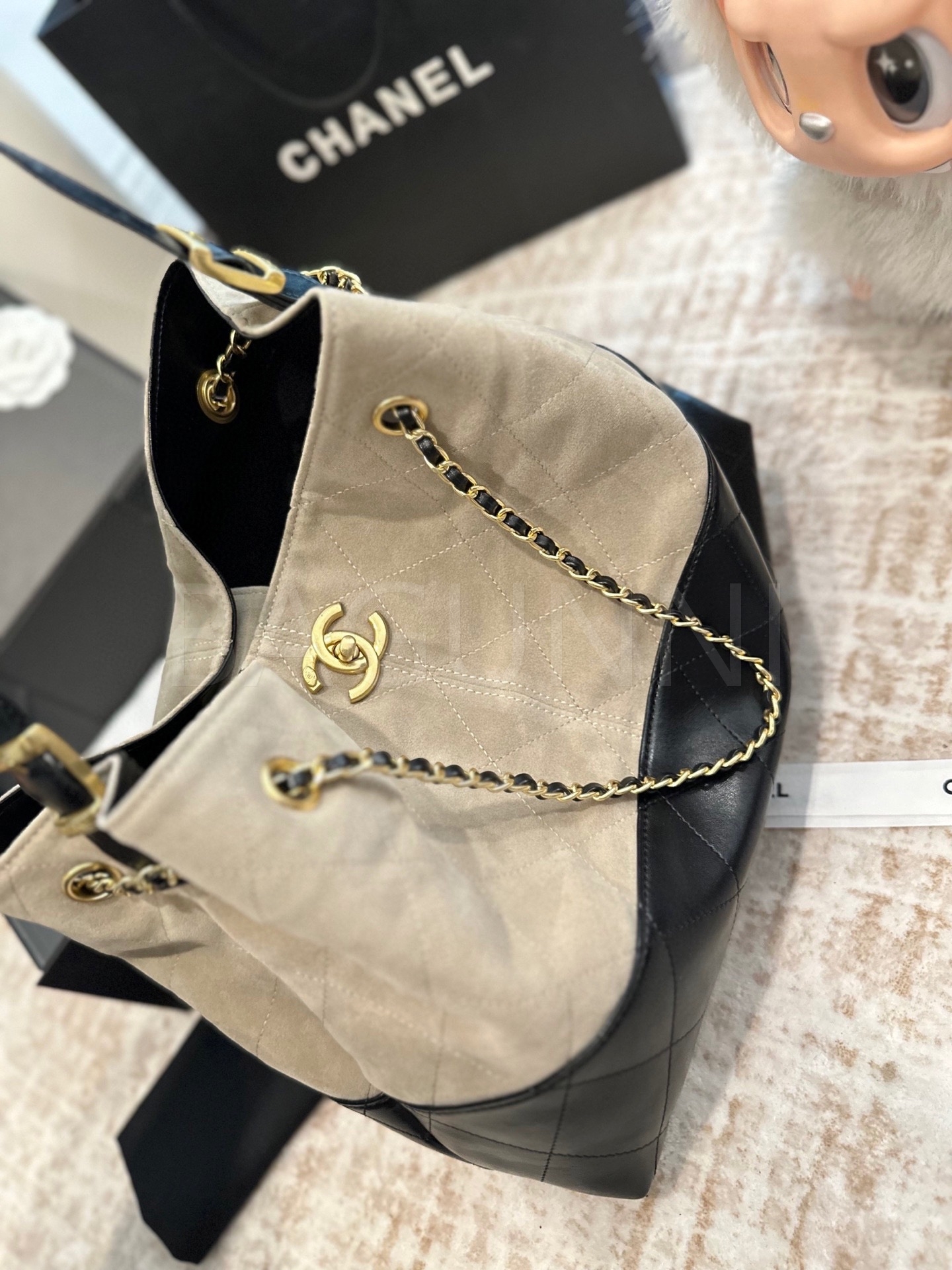 스웨이드 특유의 매력이 돋보이는 샤넬 23C 스웨이드 호보 백입니다.