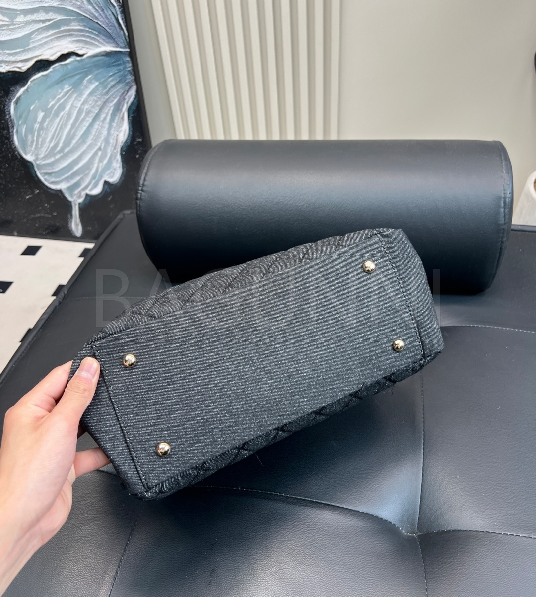 데님 컬러가 감각적인 포인트를 더해줍니다 퀼팅 디테일, 넉넉한 수납력 디테일이 조화롭게 어우러져 완성도를 높여줍니다