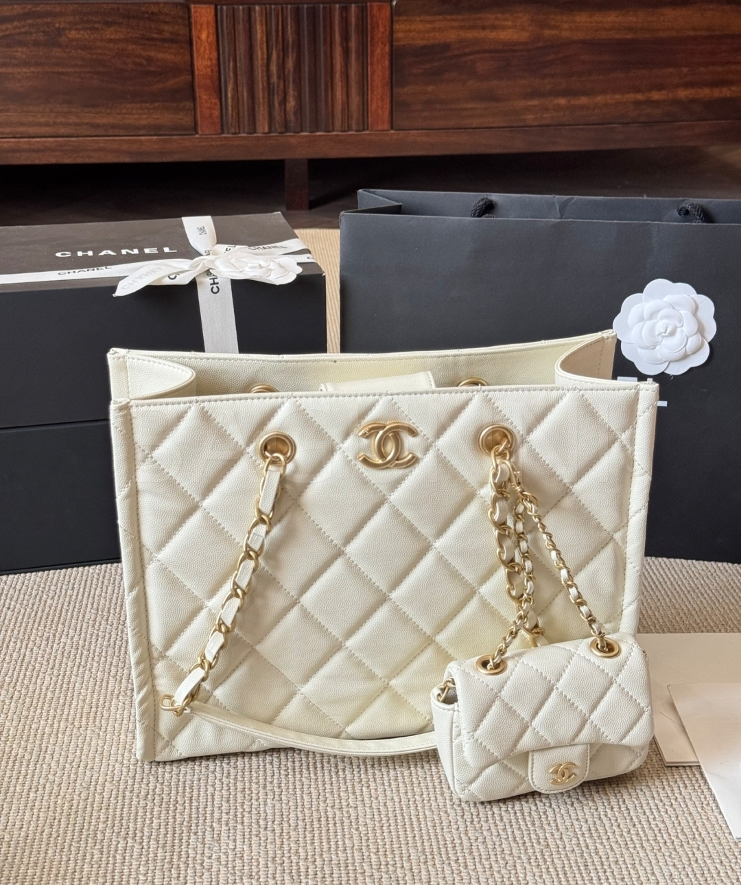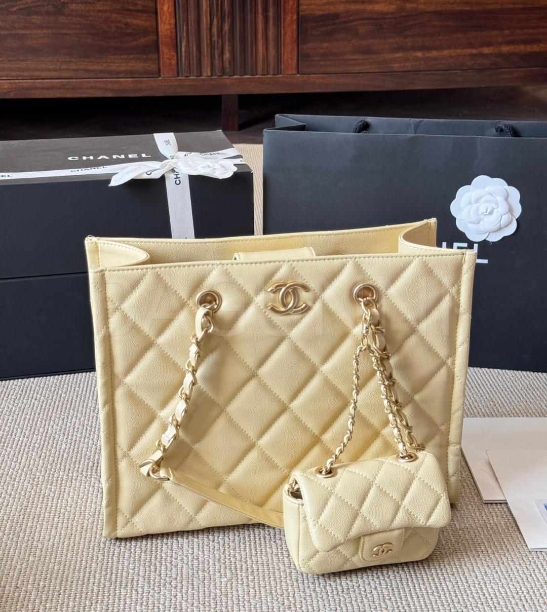 더블 C 로고, 넉넉한 수납력 디테일이 조화롭게 어우러져 완성도를 높여줍니다 빈티지한 분위기로 스타일링에 멋을 더해줍니다 데일리룩부터 가벼운 외출까지 부담 없이 활용하기 좋습니다
