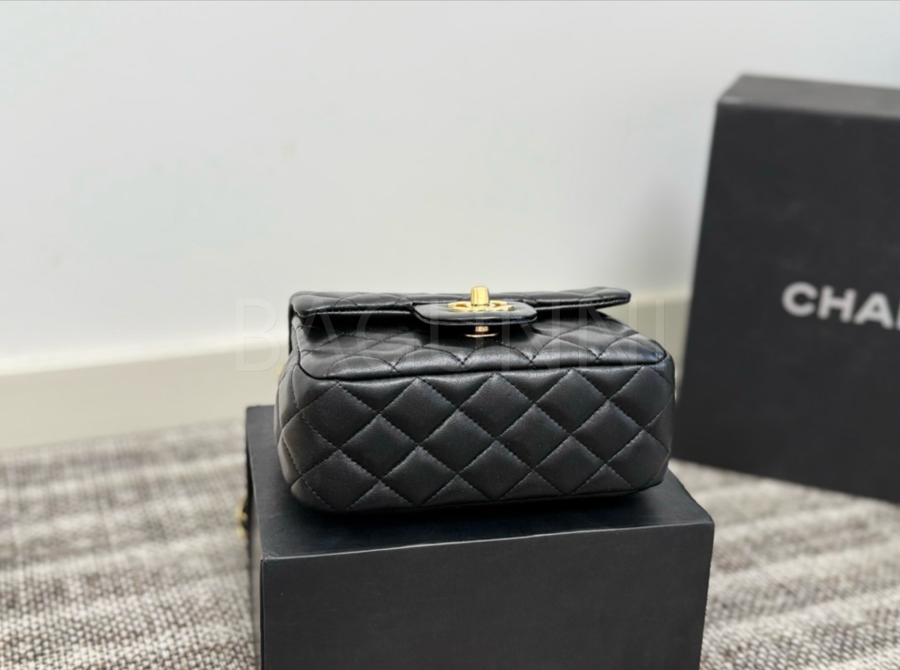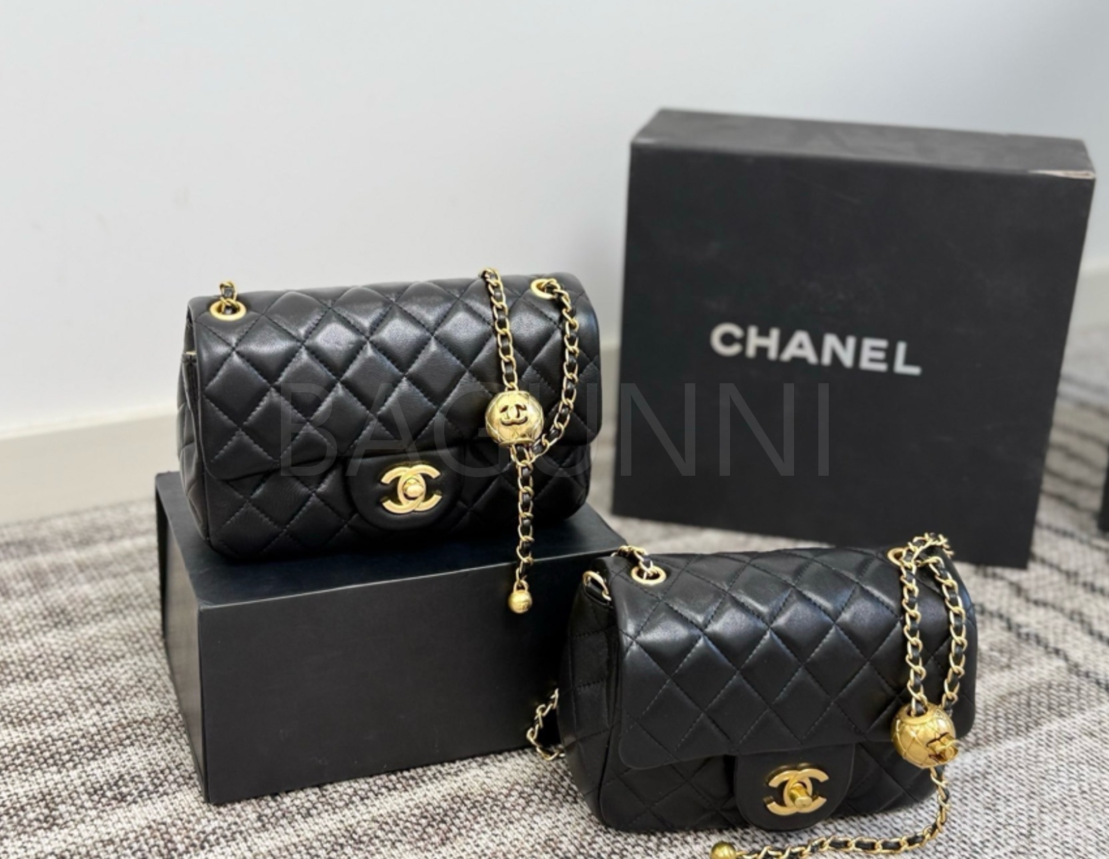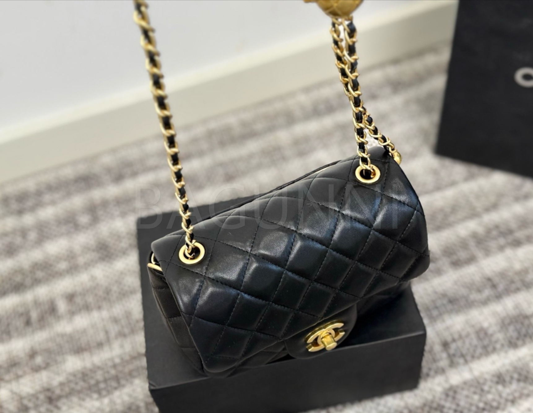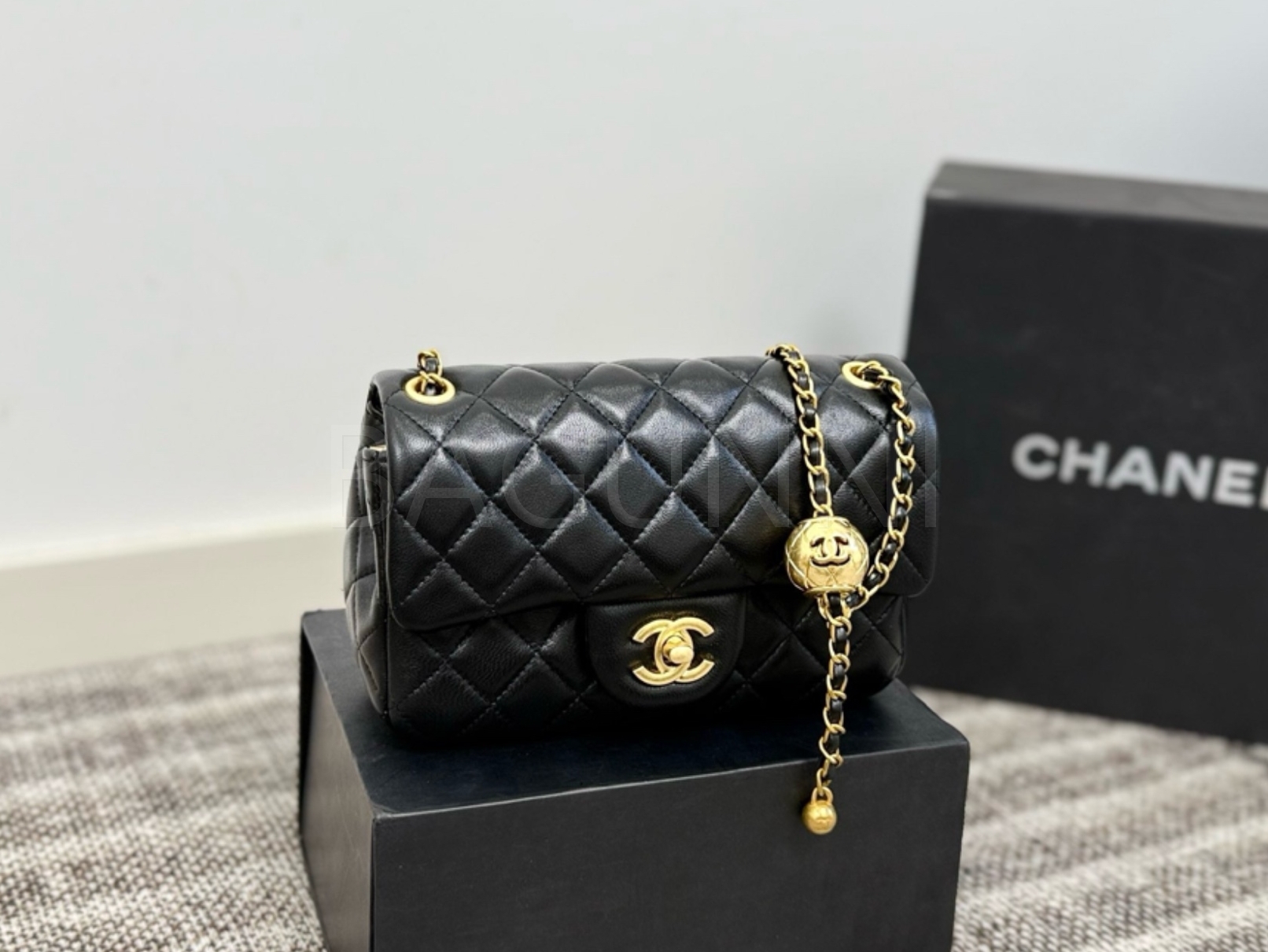 램스킨 특유의 매력이 돋보이는 샤넬 25B 금볼 스퀘어 플랩 백입니다.