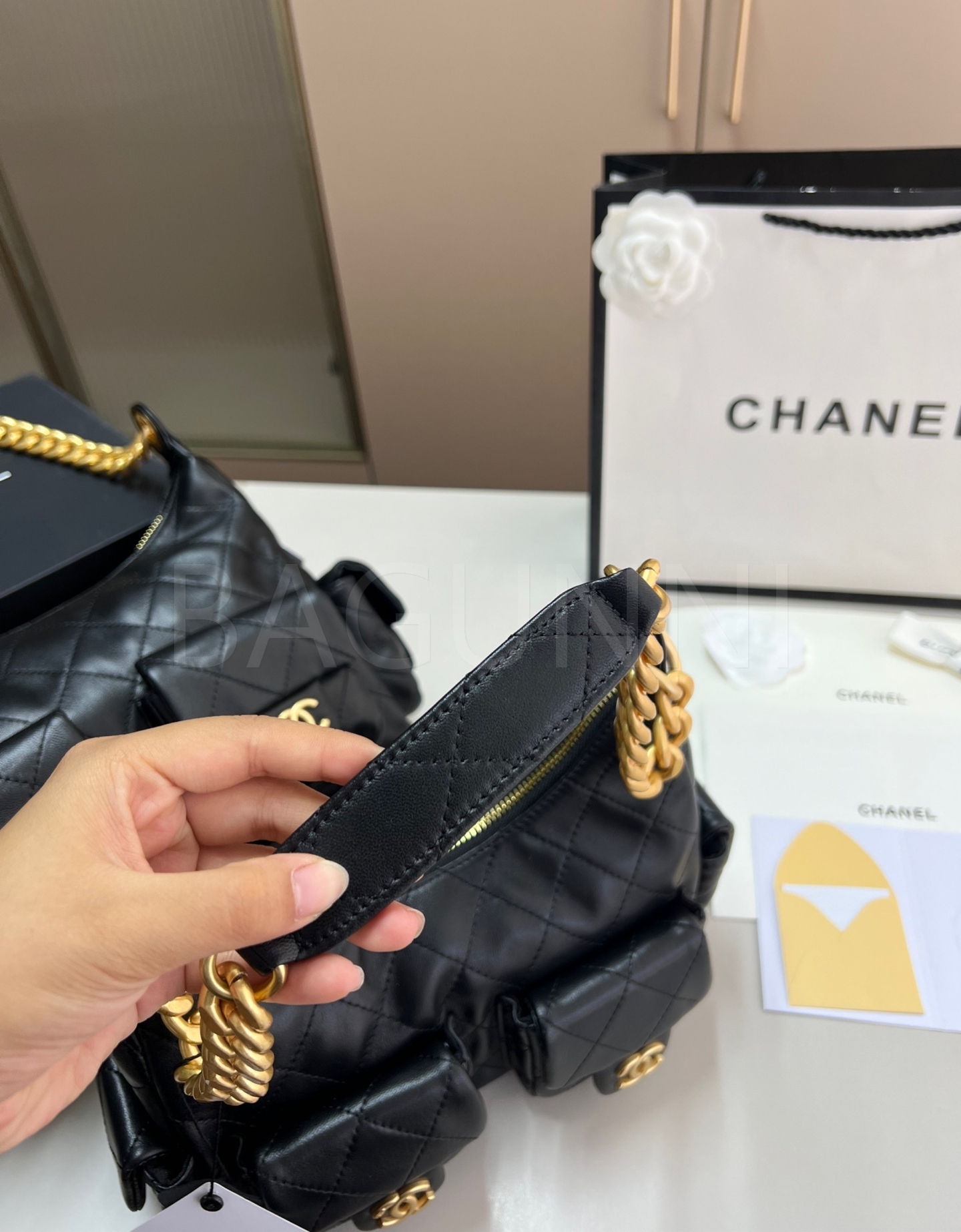 램스킨 특유의 매력이 돋보이는 샤넬 25C 호보 백입니다.