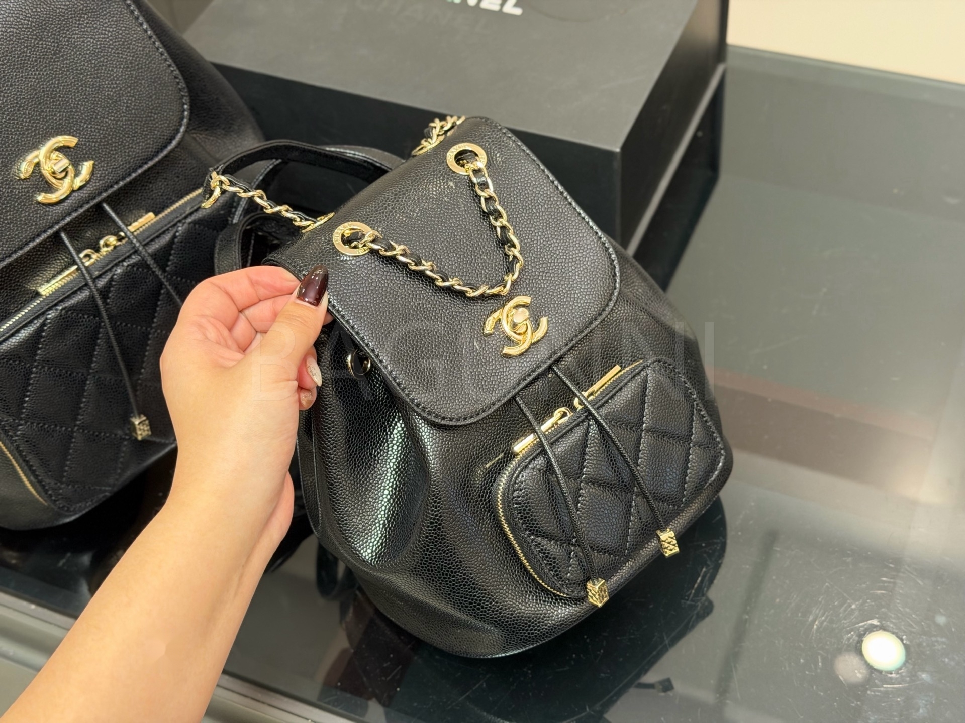 세련된 무드가 돋보이는 샤넬 25C 백팩입니다.