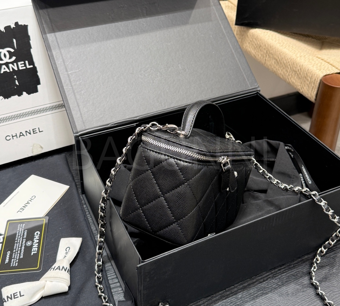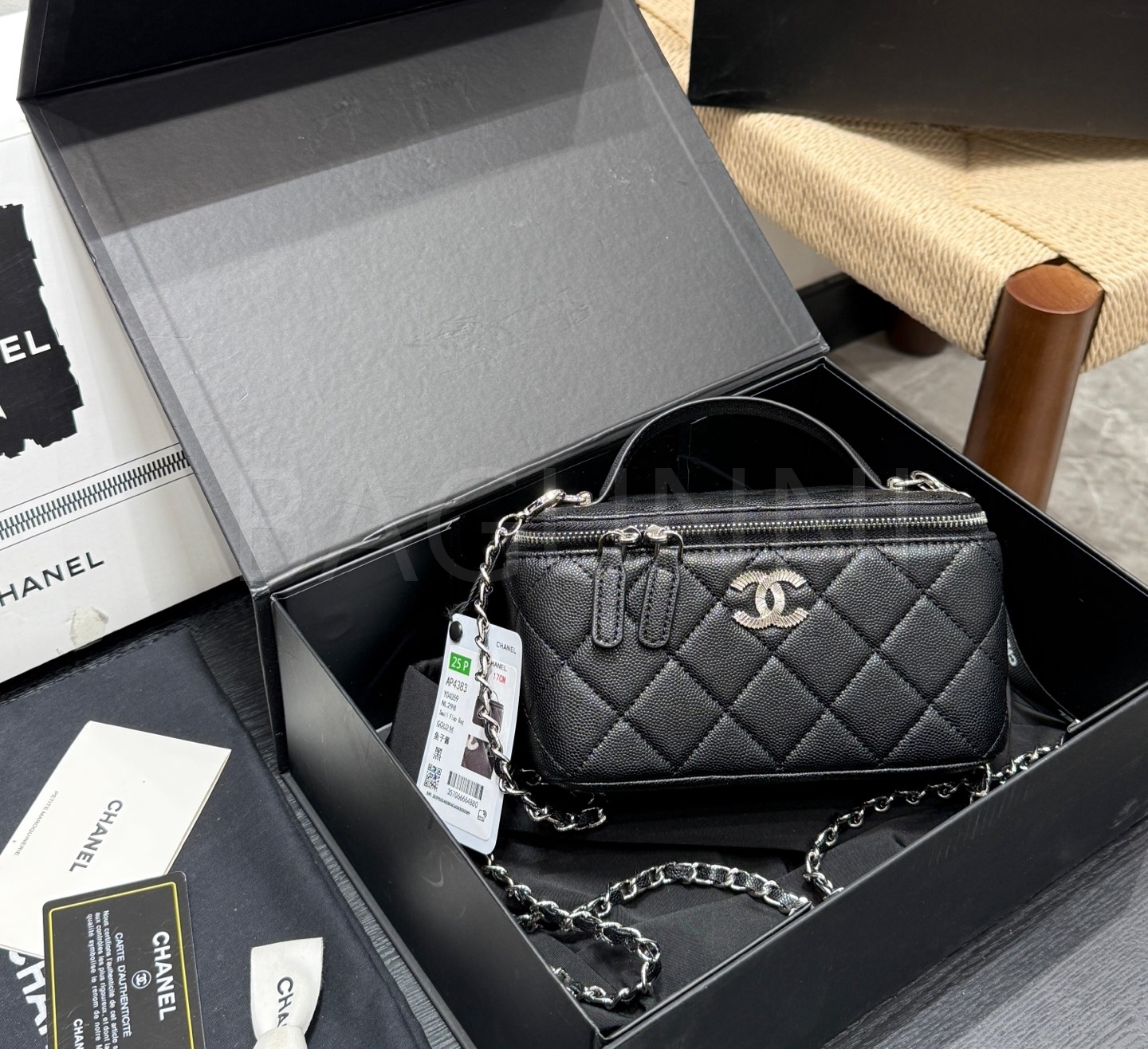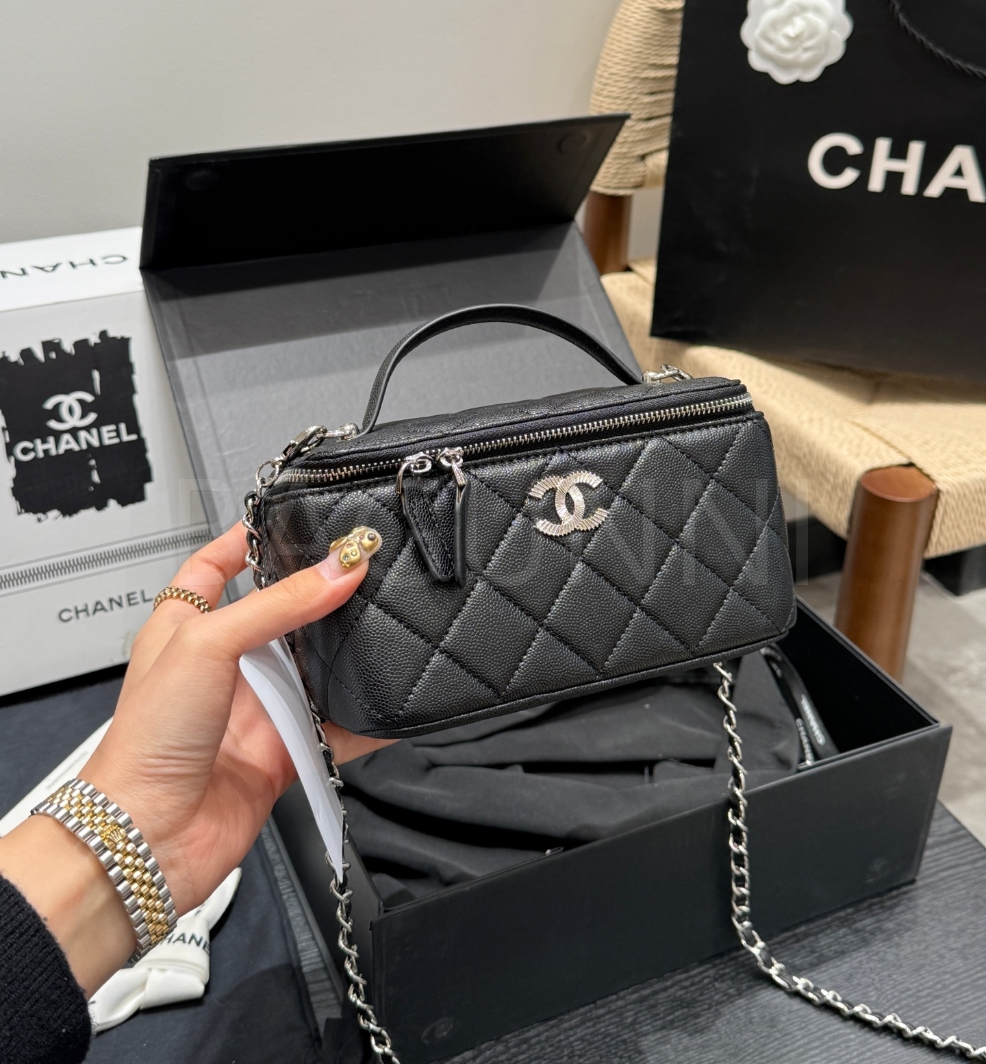 캐비어 가죽 특유의 매력이 돋보이는 샤넬 25P 코스메틱 케이스입니다.