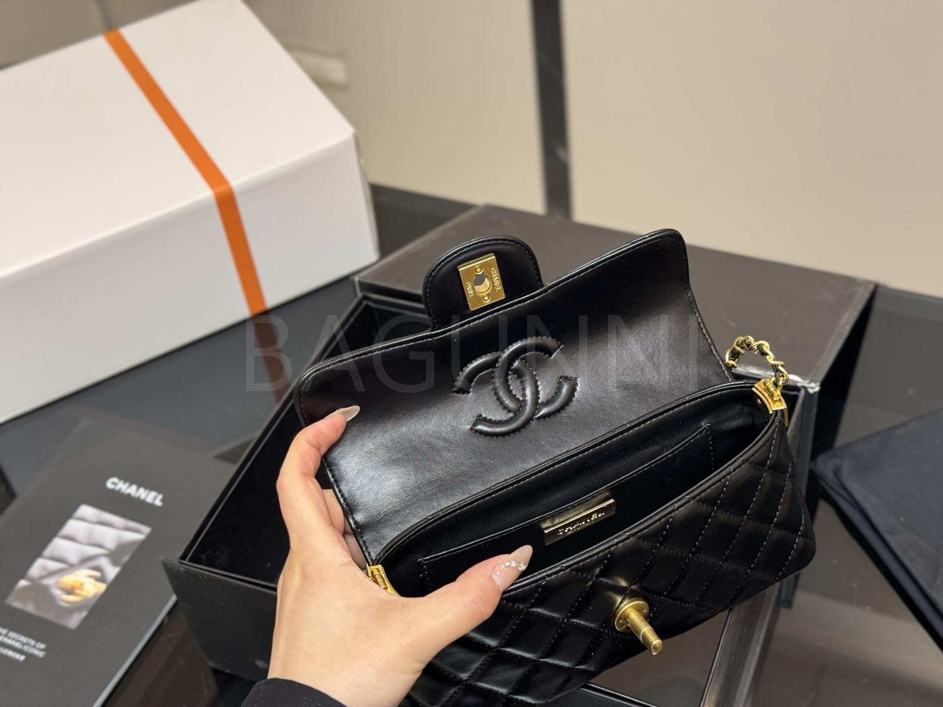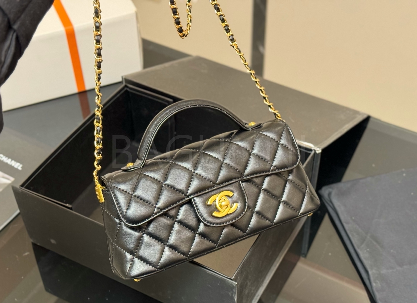 세련된 무드가 돋보이는 샤넬 25P 켈리 백입니다.