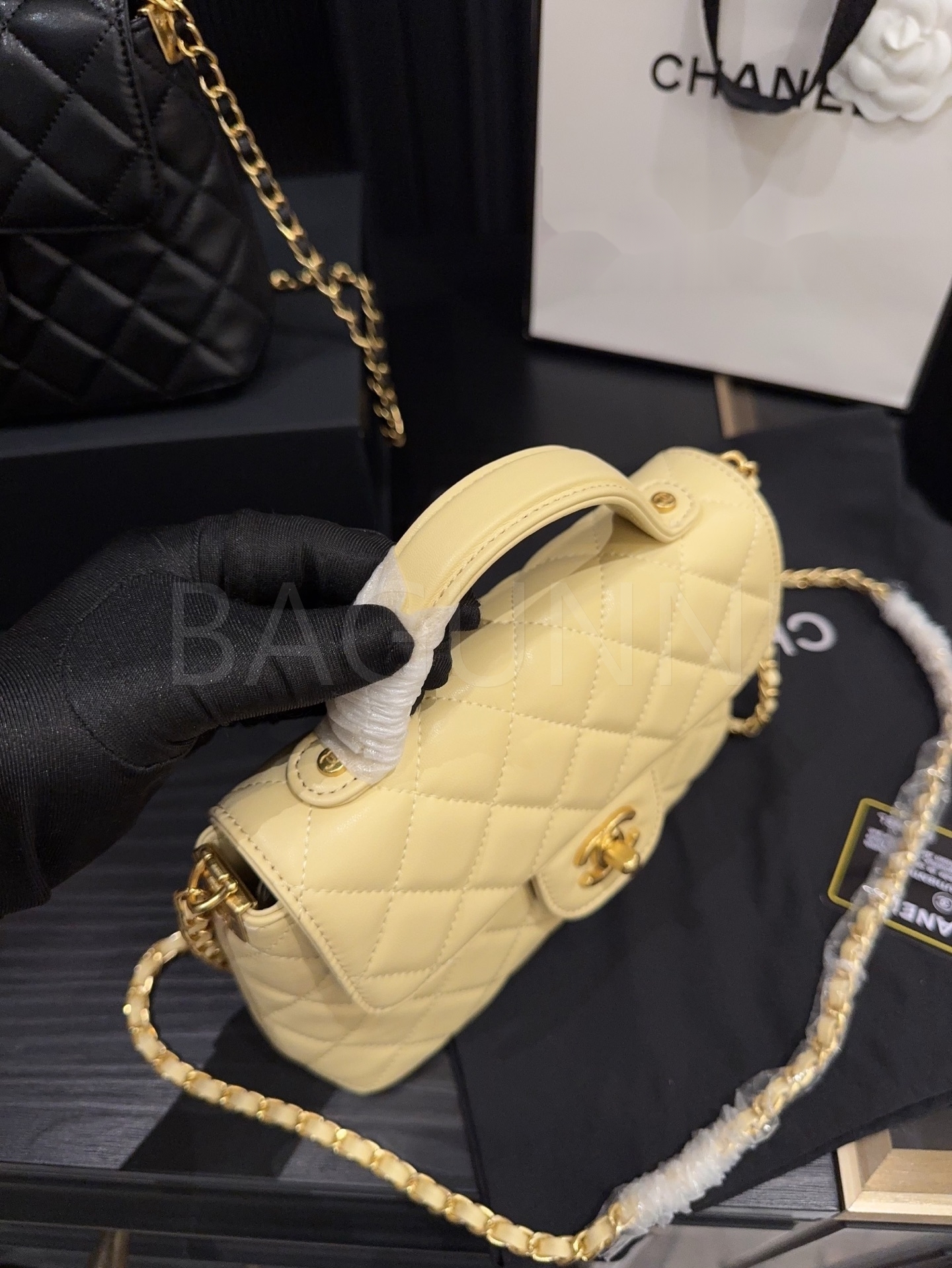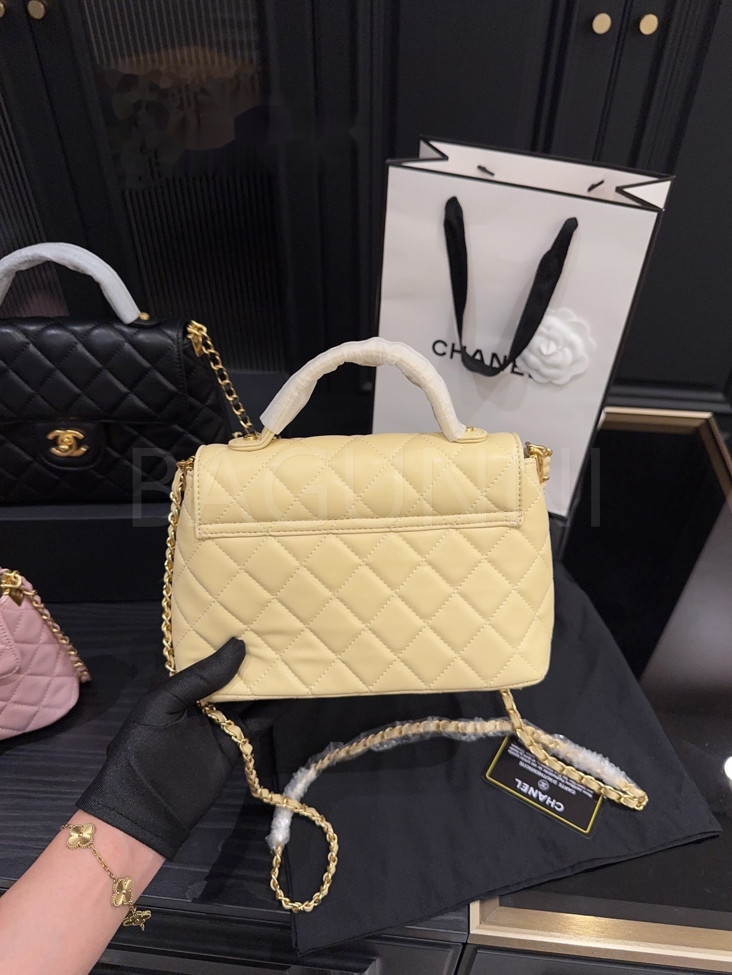세련된 무드가 돋보이는 샤넬 25P 켈리 백입니다.