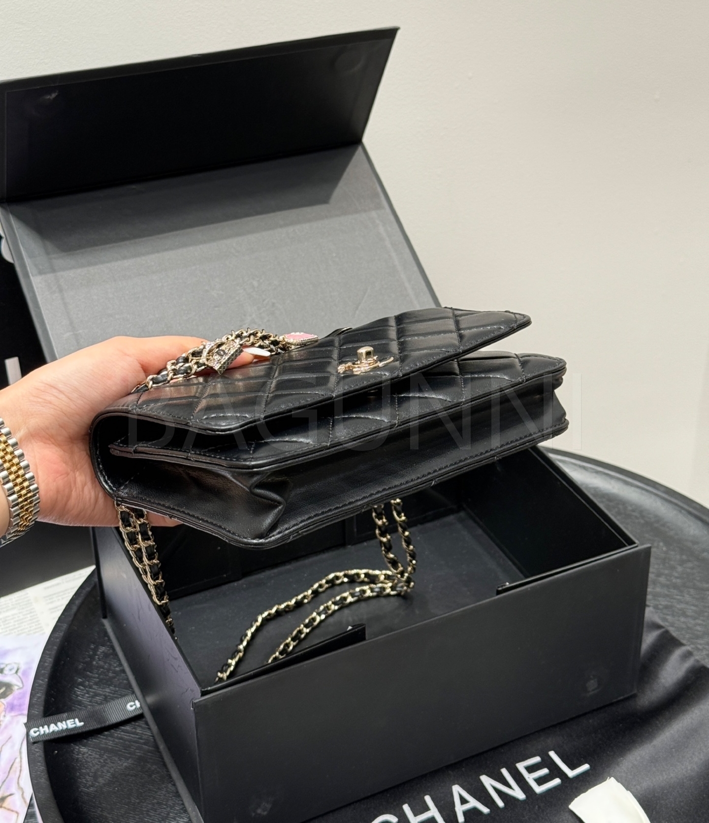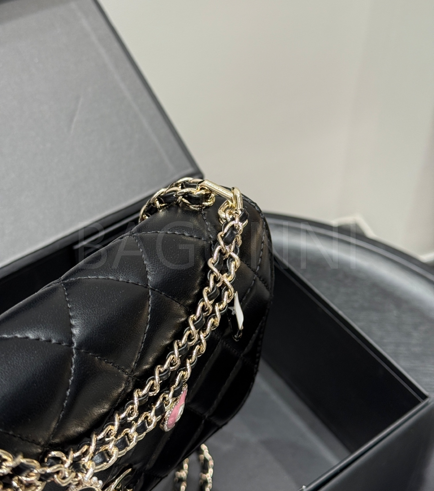 탑핸들 디테일, 진주 장식 디테일이 조화롭게 어우러져 완성도를 높여줍니다