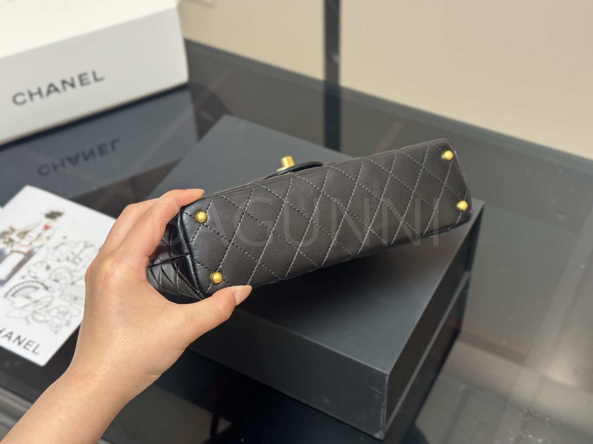 세련된 무드가 돋보이는 샤넬 25P 켈리 백입니다.
