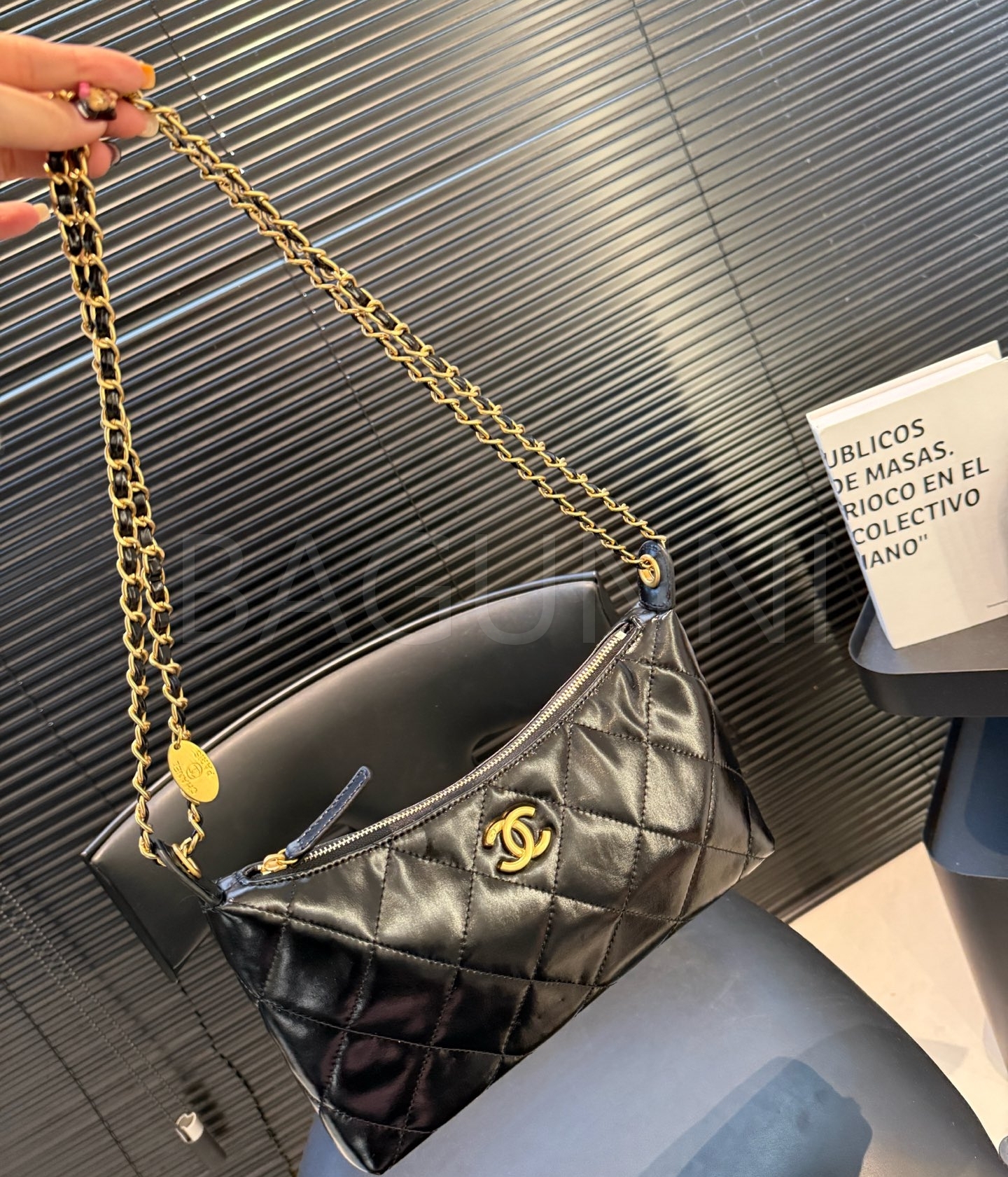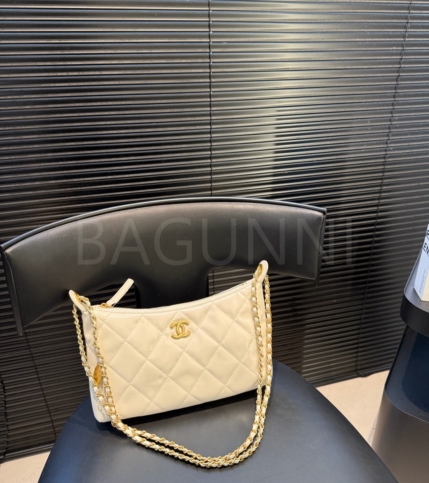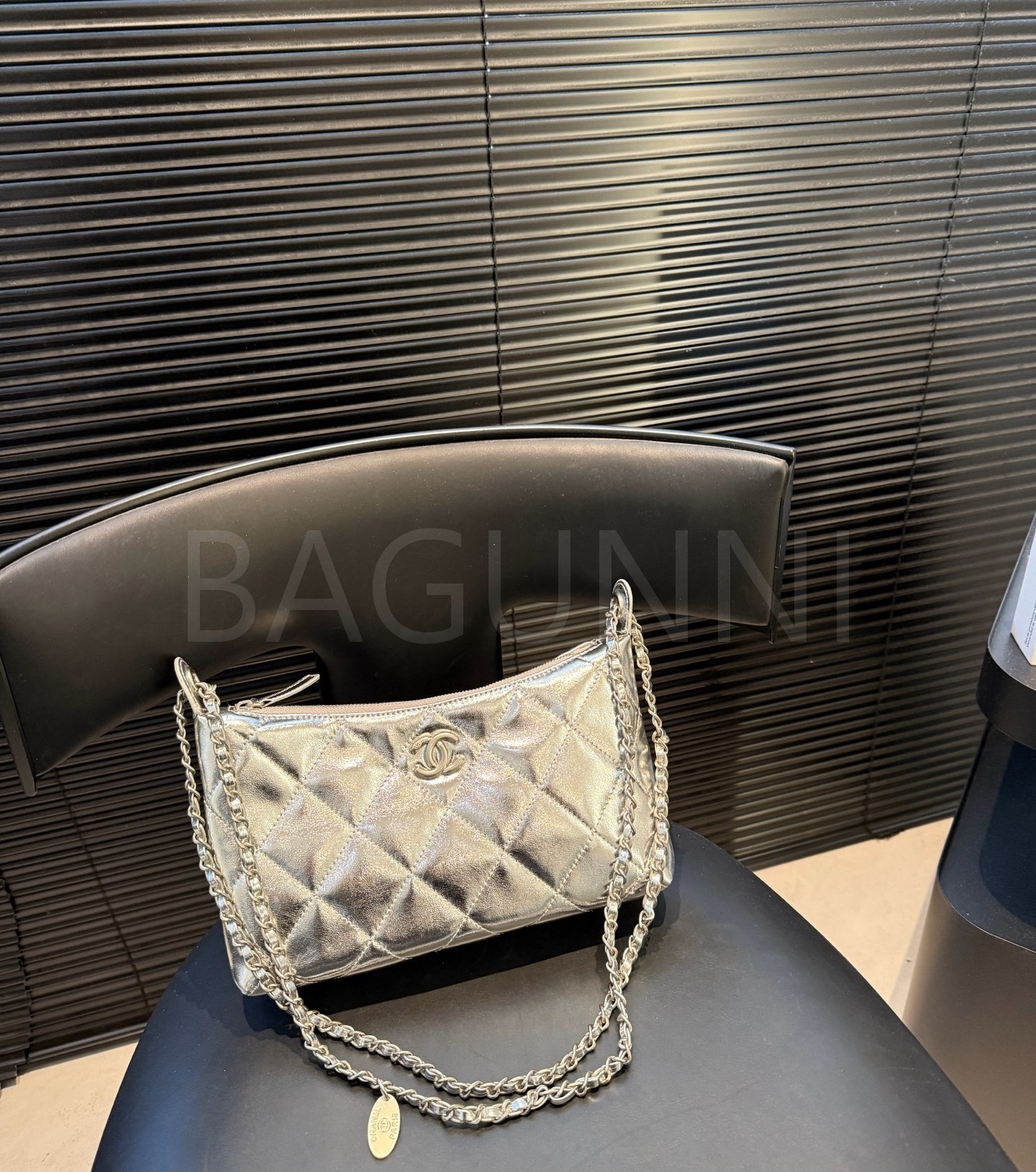 램스킨 특유의 매력이 돋보이는 샤넬 25S 코인 참 호보 백입니다.