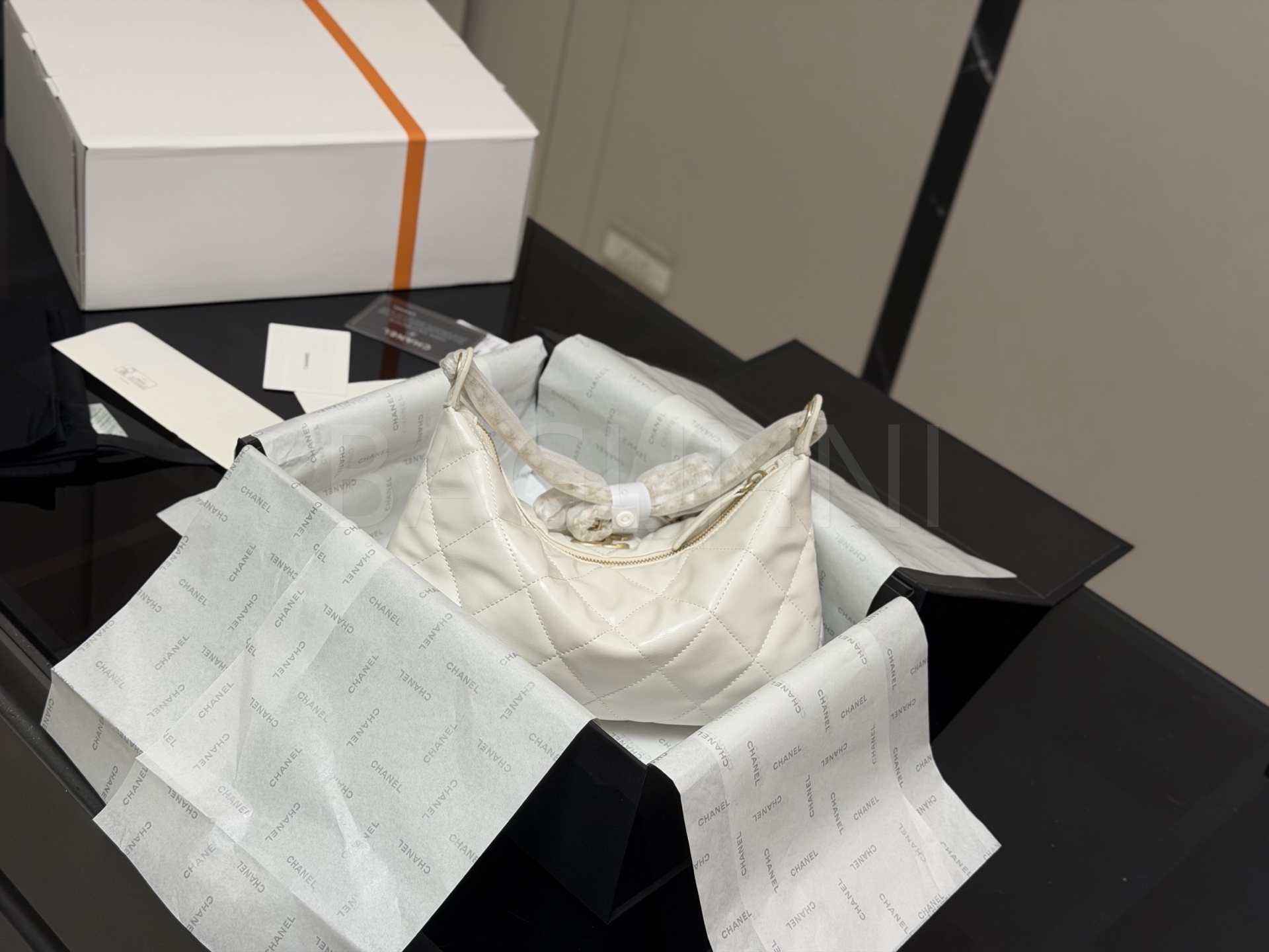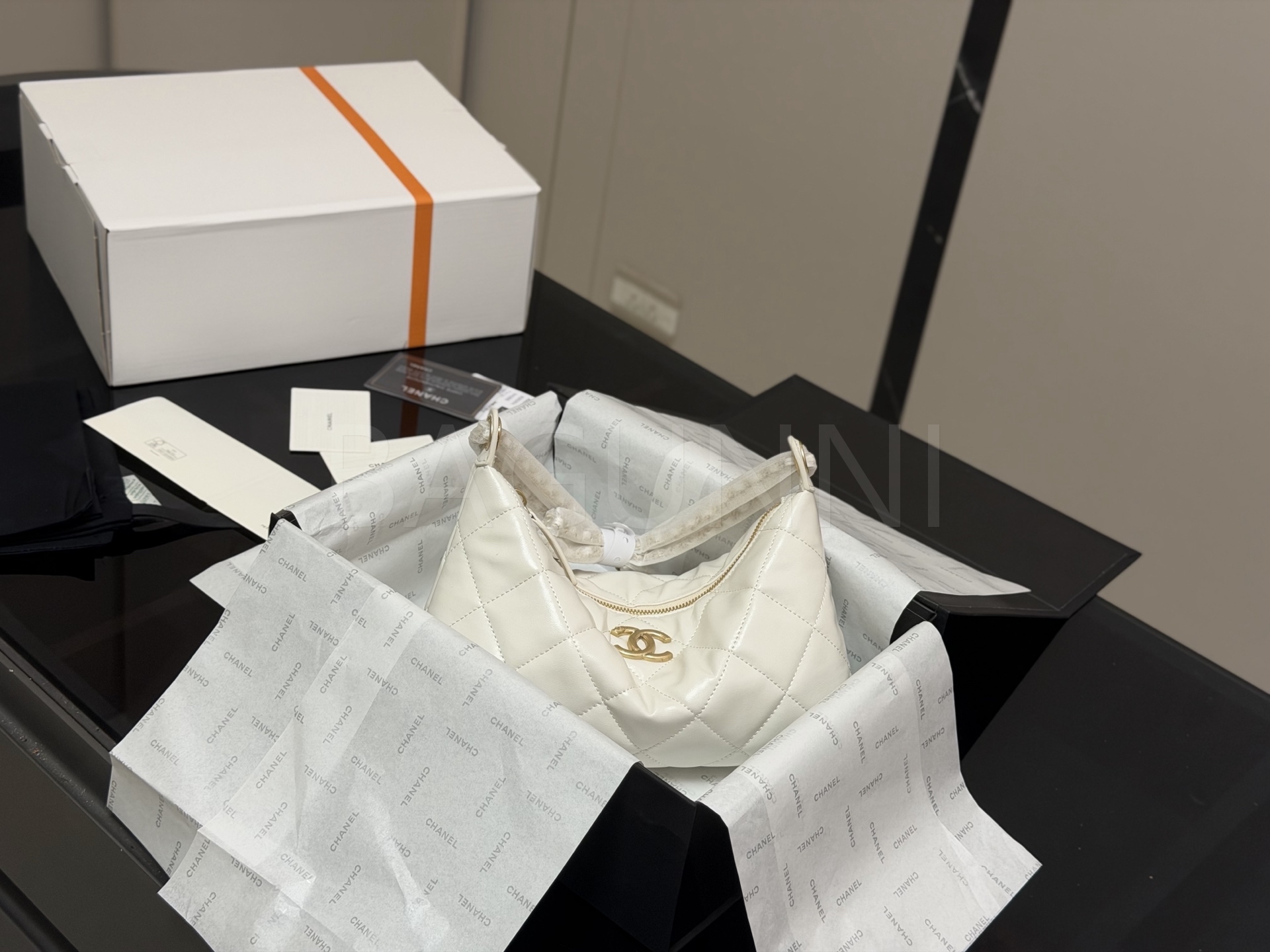램스킨 특유의 매력이 돋보이는 샤넬 25S 코인 참 호보 백입니다.