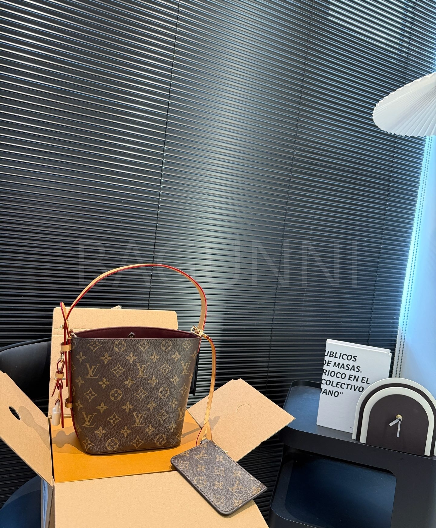 루이비통 특유의 세련된 분위기가 돋보이는 루이비통 올 인 BB 버킷 백입니다.